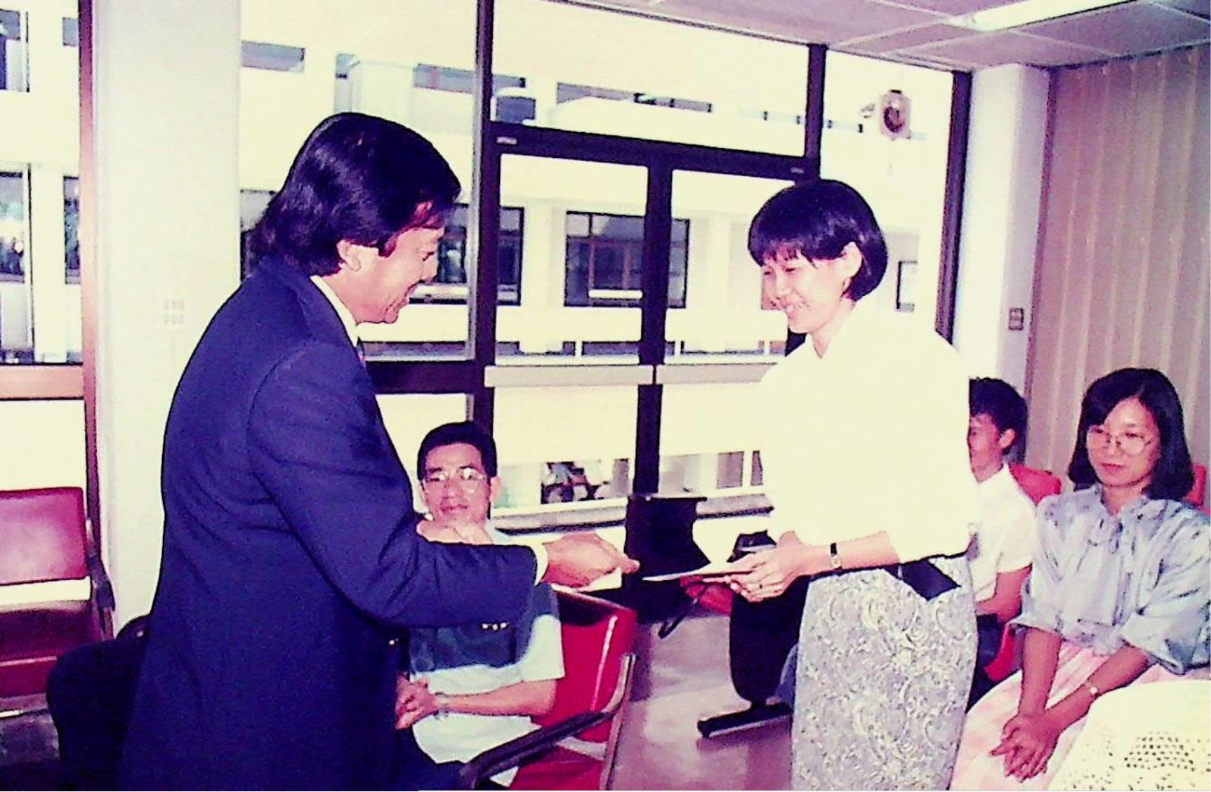 Title: อธิการบดีมอบโล่เกียรติคุณให้แก่ ดร.วรศักดิ์ วรภมร และอาจารย์อัศวิน ชินกำธรวงค์ อดีตอาจารย์ของสถาบัน เนื่องในโอกาสที่ทั้งสองท่านได้มอบทุนการศึกษาแก่นักศึกษาปริญญาโท ภาควิชาภาษาและสังคม จำนวนท่านละ 2 ทุน ทุนละ 5,000 บาท