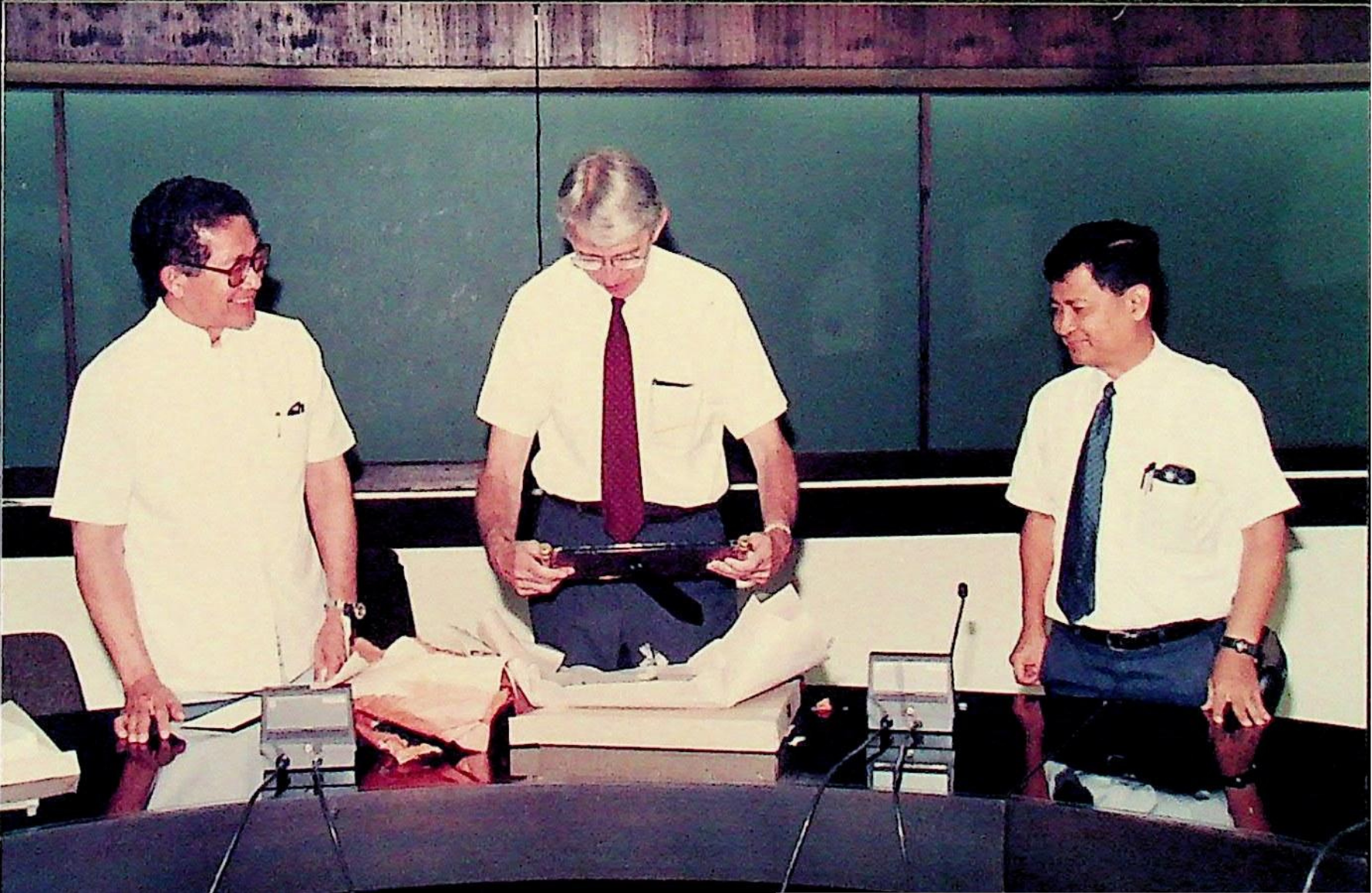 https://modps71.lib.kmutt.ac.th/xmlui//handle/123456789/1431| Title: | รศ.ดร.ไพบูลย์ หังสฤกษ์ อธิการบดี มอบของที่ระลึกแก่ Dr. Cecil Mackey อดีตอธิการบดี Michigan State University ซึ่งมาช่วยศึกษาวางแผนงานของสถาบัน ในเรื่อง มหาวิทยาลัยในกำกับของรัฐบาล ตั้งแต่วันที่ 15 มกราคม ถึงวันที่14 กุมภาพันธ์ |