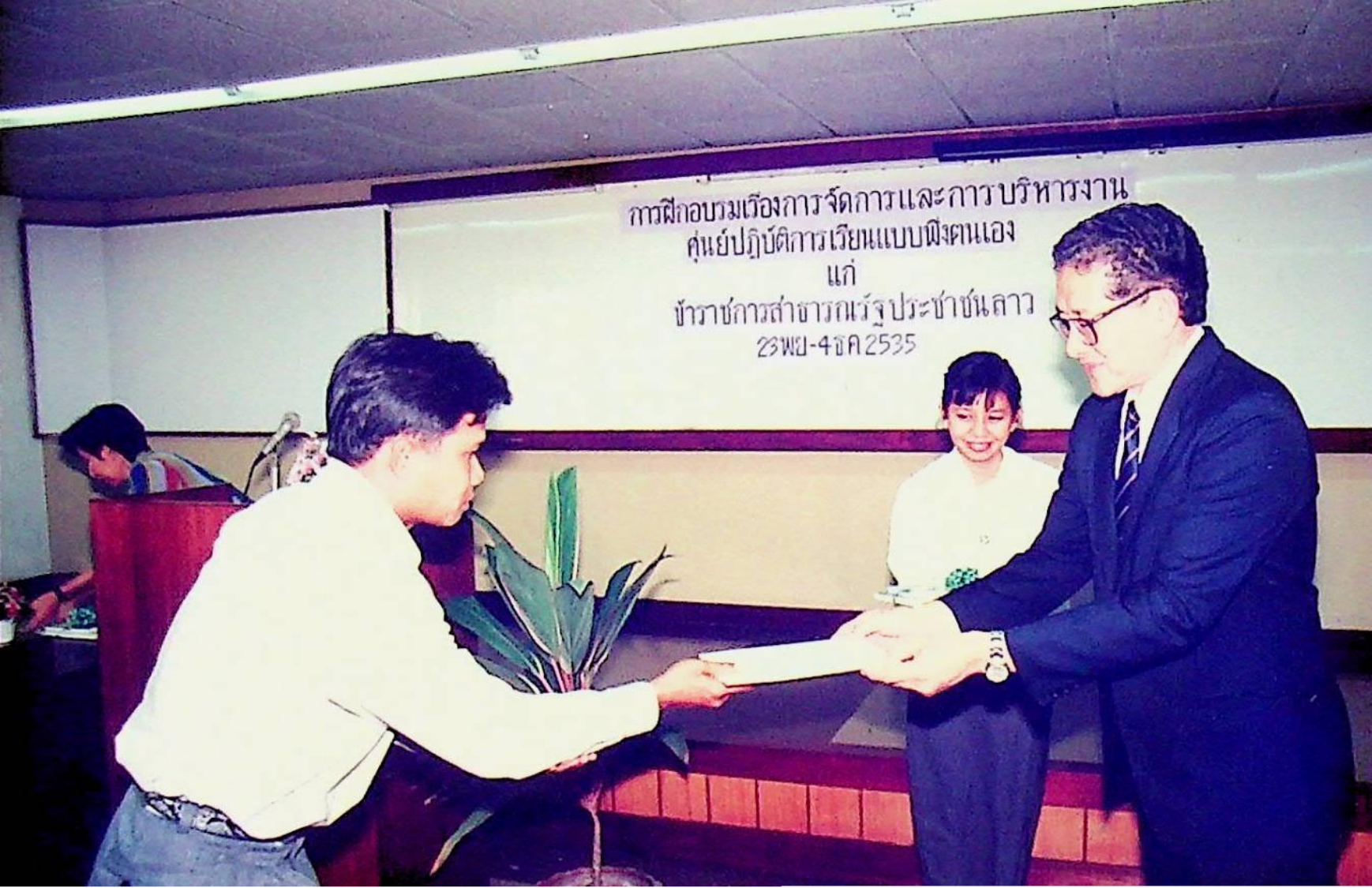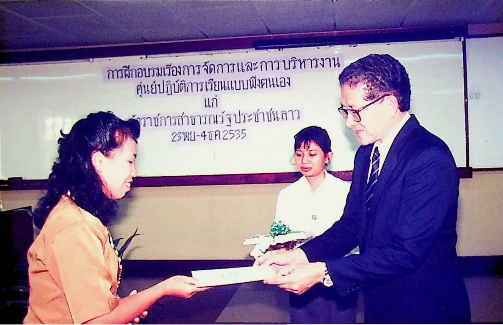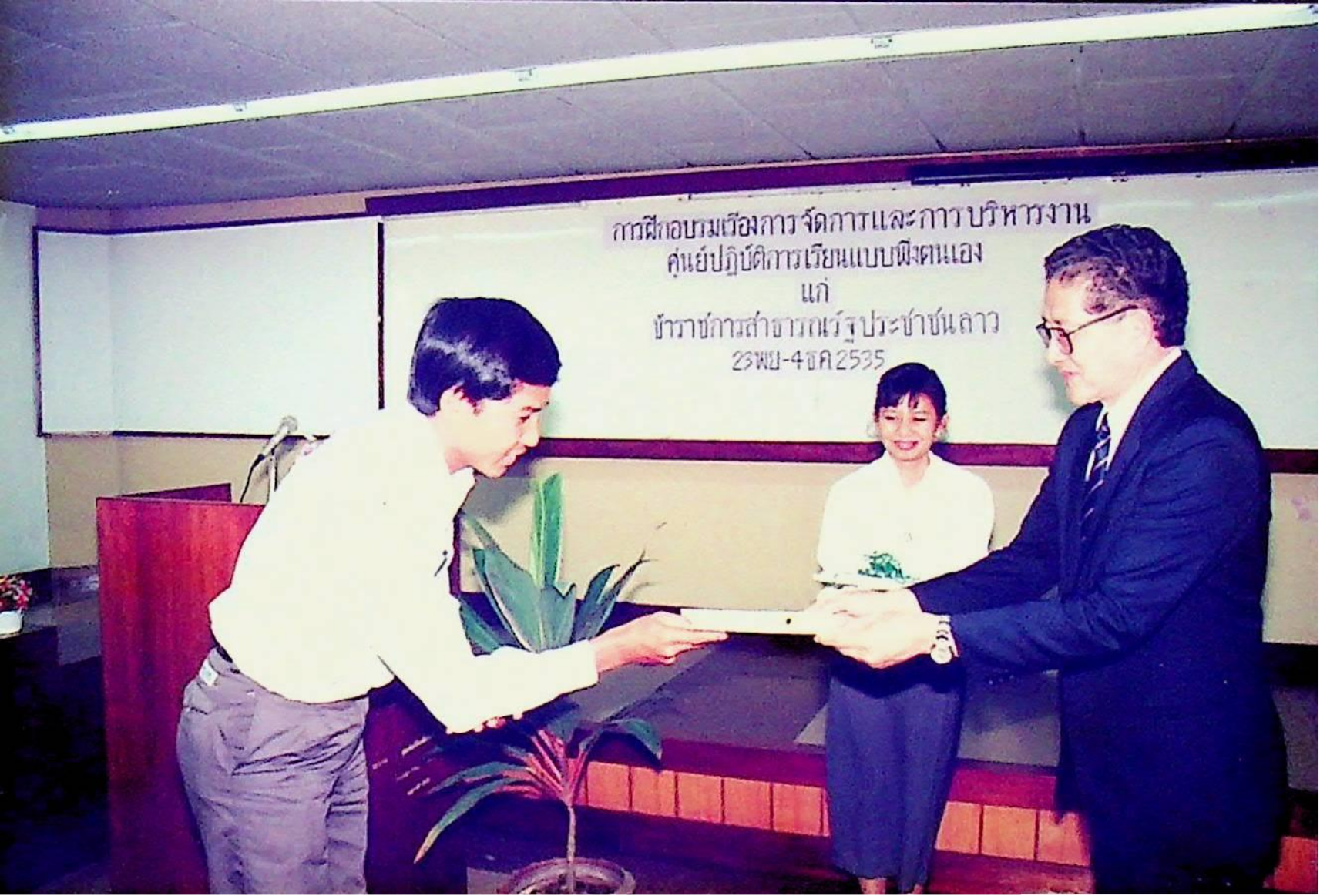 https://modps71.lib.kmutt.ac.th/xmlui//handle/123456789/1508| Title: | รศ.ดร.ไพบูลย์ หังสพฤกษ์ ที่ปรึกษาสถาบัน เป็นประธานพิธีปิดการฝึกอบรม และแจกวุฒิบัตรแก่ผู้ผ่านการฝึกอบรมการบริหารงานศูนย์ปฏิบัติการเรียนแบบพึ่งตนเอง ข้าราชการจากกรมป่าไม้ ประเทศสาธารณรัฐประชาชนลาว |