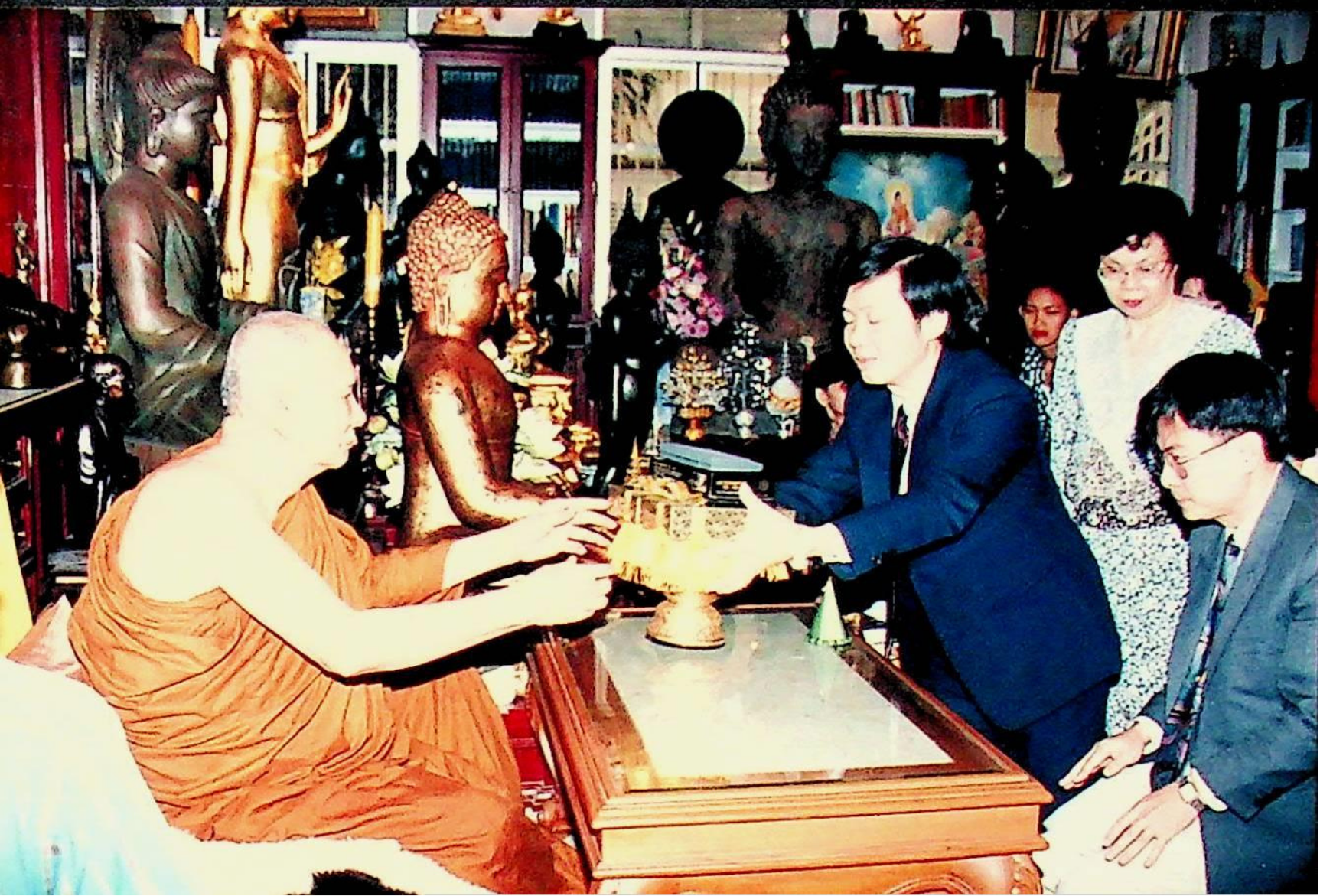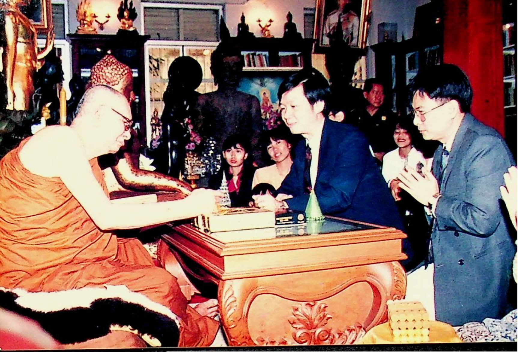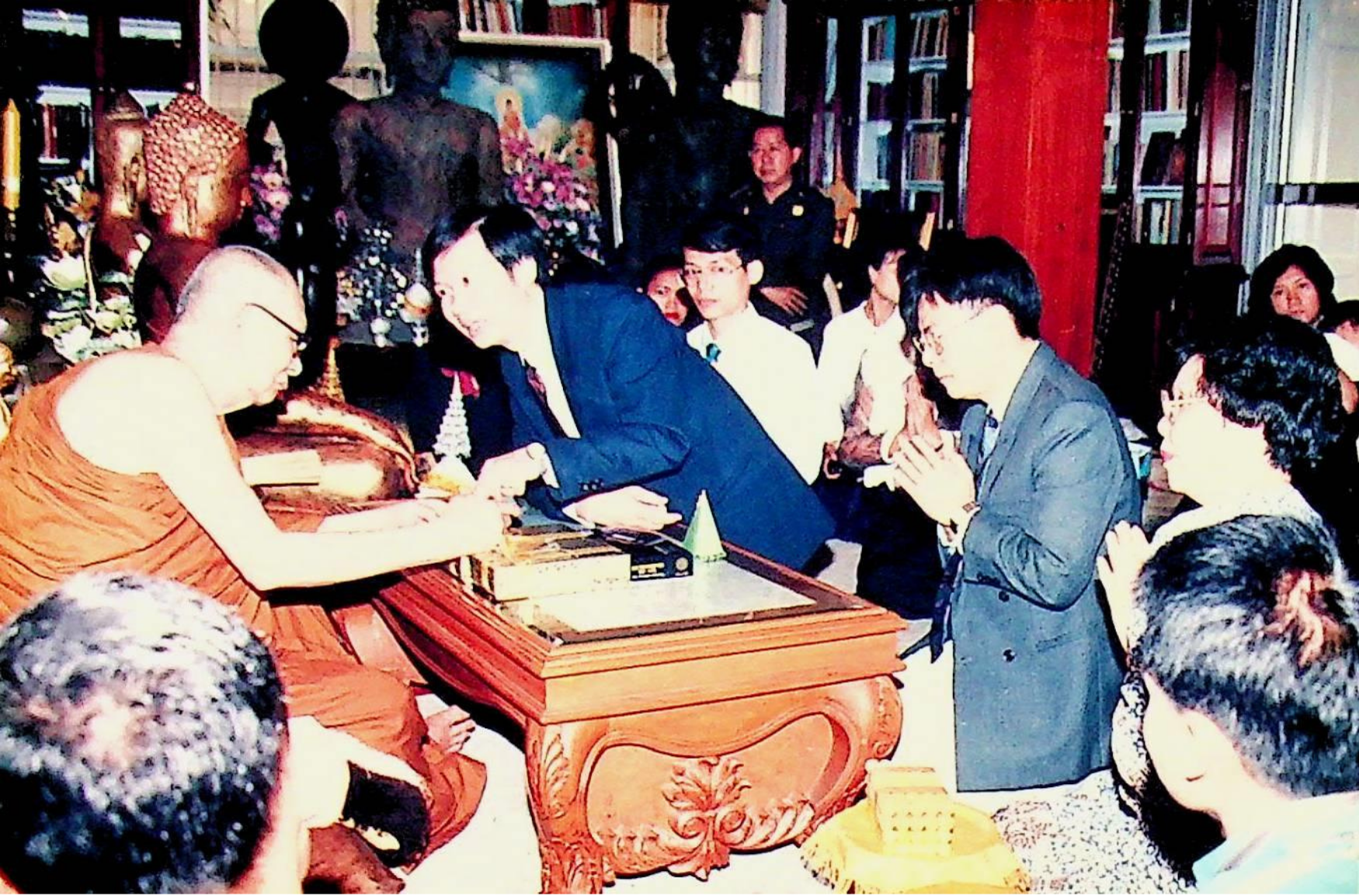 Title: ศ.ดร.สมชาติ โสภณรณฤทธิ์ รองอธิการบดีฝ่ายวิจัยและวิเทศสัมพันธ์ อาจารย์บุญเจริญ ศิริเนาวกุล อาจารย์นวลทิพย์ ตันติเศวตรัตน์ และคณะ เข้าเฝ้าสมเด็จพระสังฆราช เพื่อถวาย Dictionarater ณ คณะเหลืองรังษี วัดบวรนิเวศวรมหาวิหาร