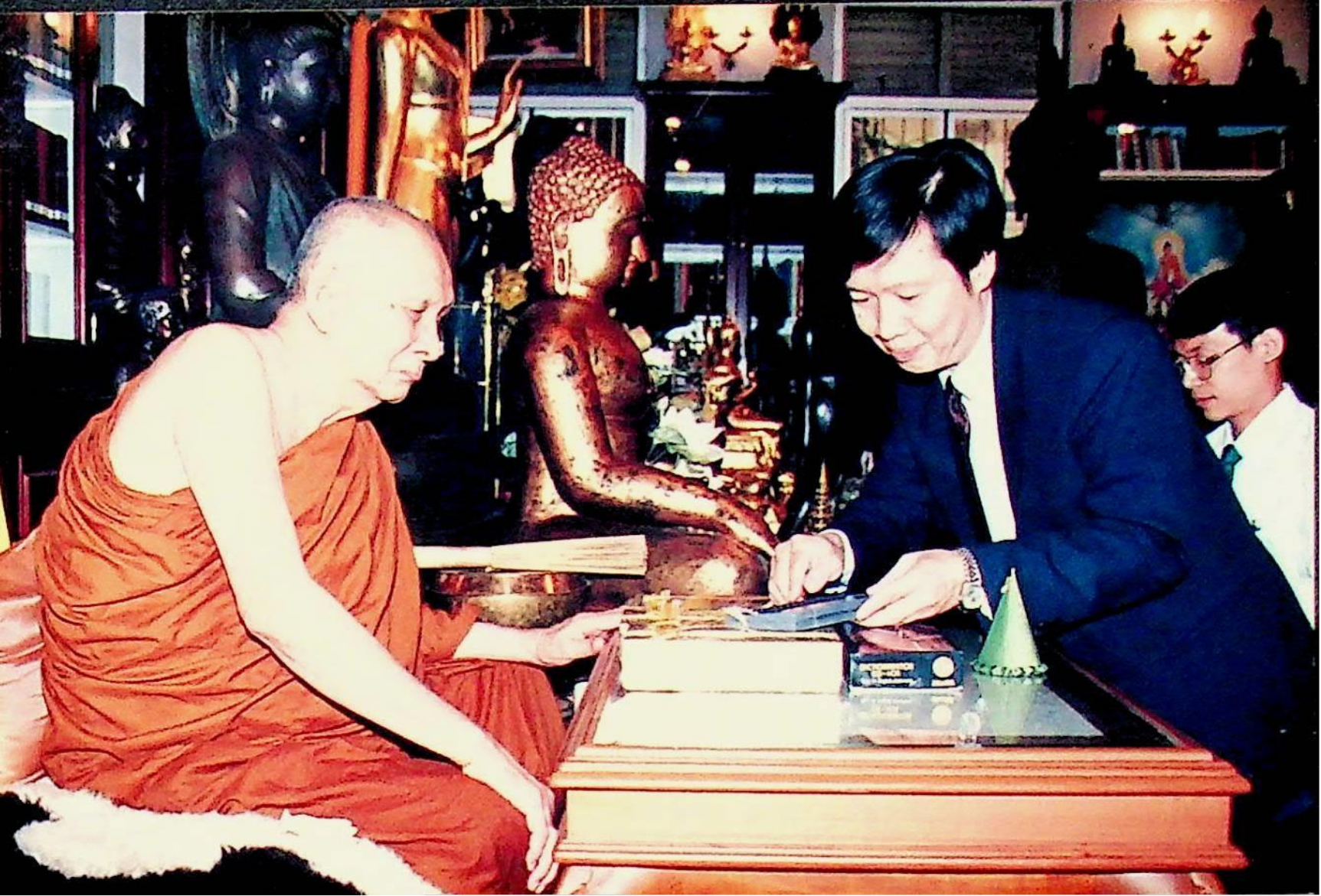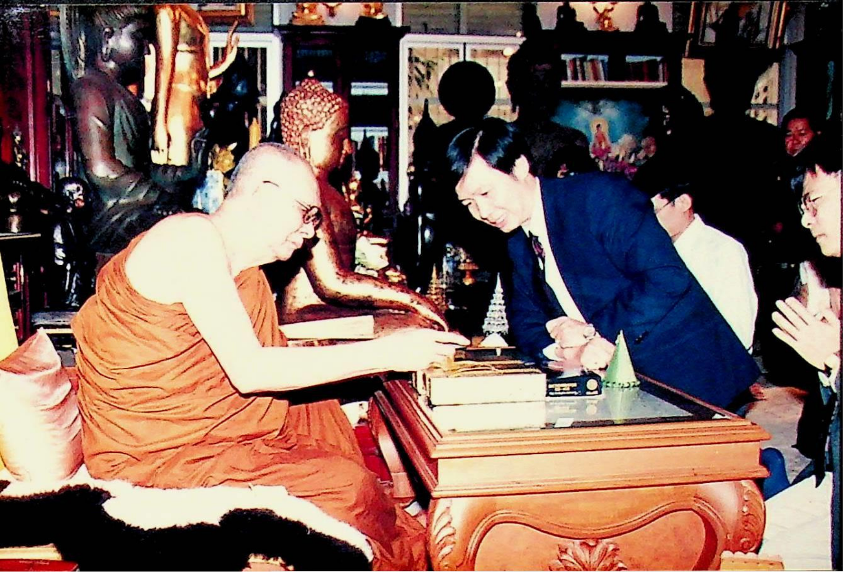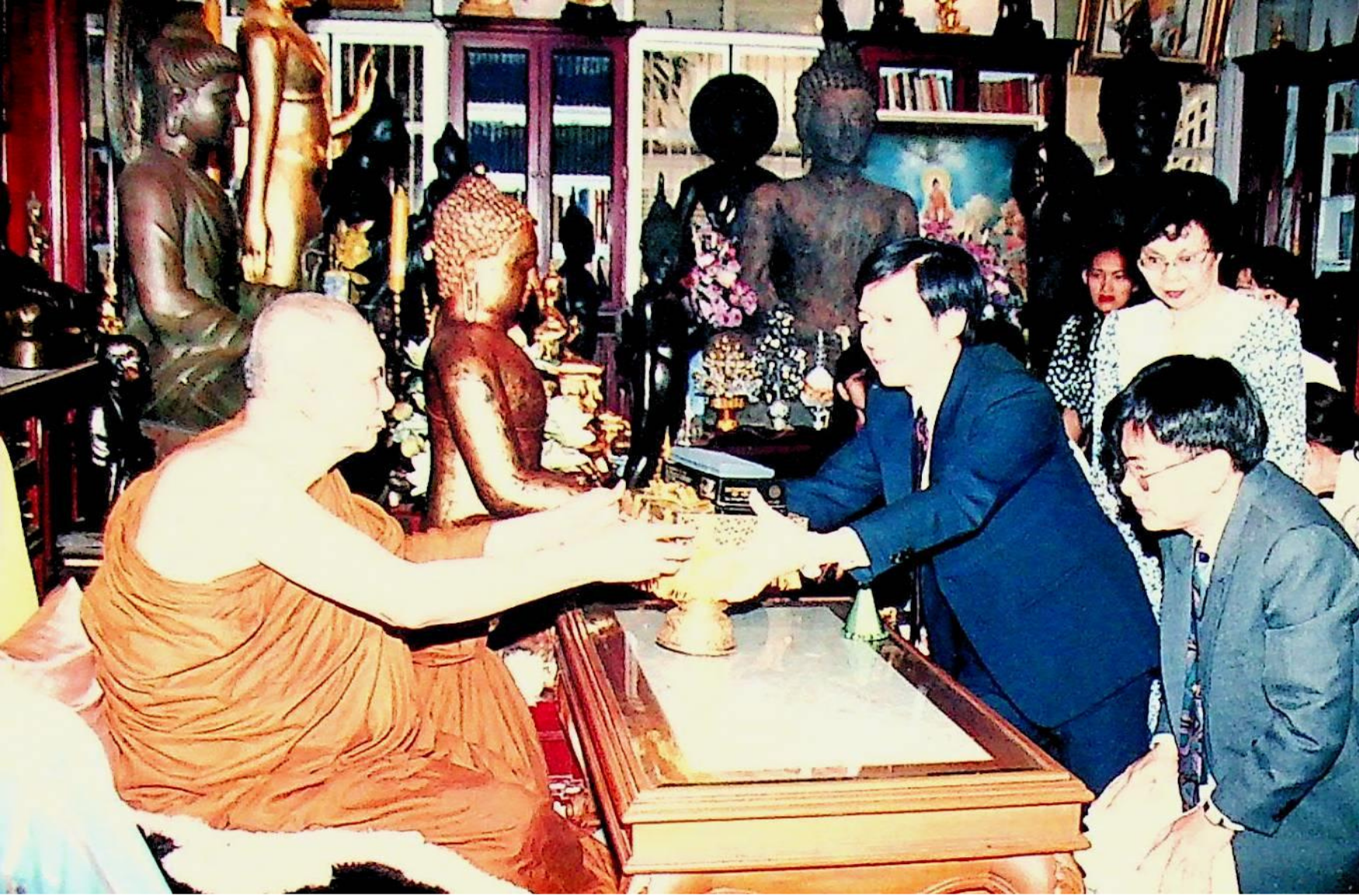 Title: ศ.ดร.สมชาติ โสภณรณฤทธิ์ รองอธิการบดีฝ่ายวิจัยและวิเทศสัมพันธ์ อาจารย์บุญเจริญ ศิริเนาวกุล อาจารย์นวลทิพย์ ตันติเศวตรัตน์ และคณะ เข้าเฝ้าสมเด็จพระสังฆราช เพื่อถวาย Dictionarater ณ คณะเหลืองรังษี วัดบวรนิเวศวรมหาวิหาร