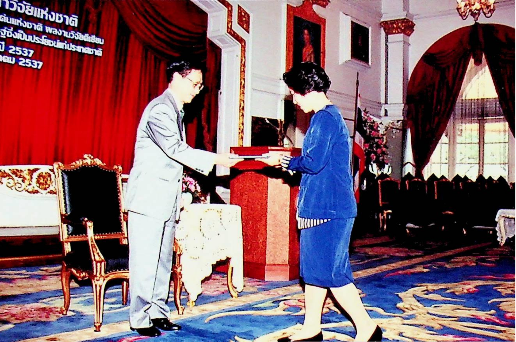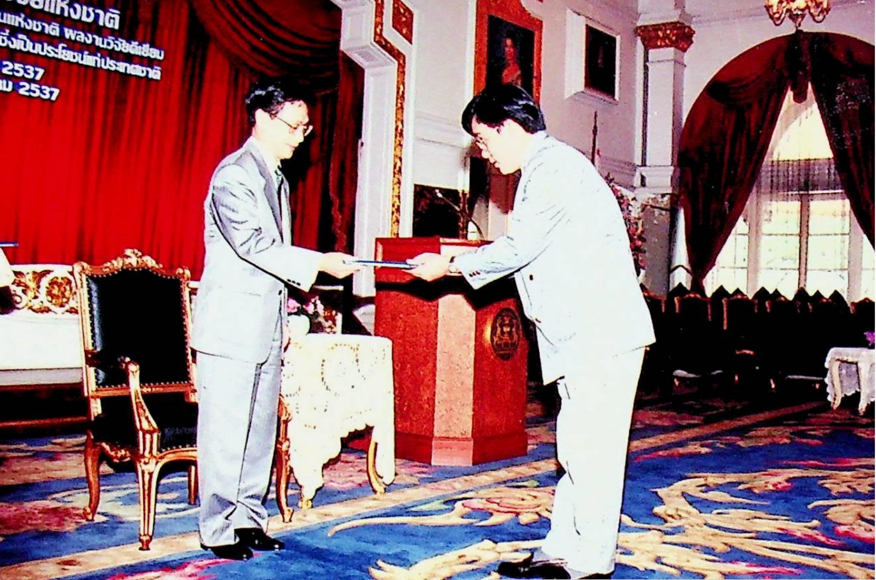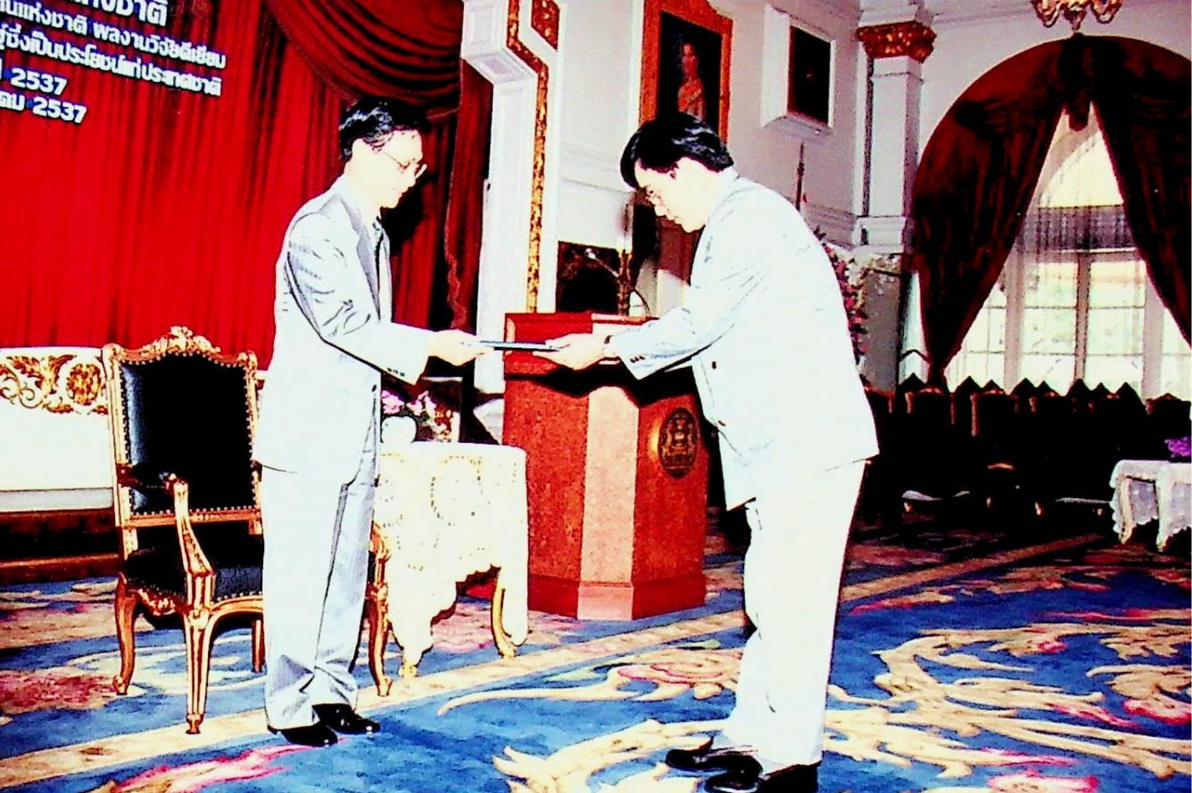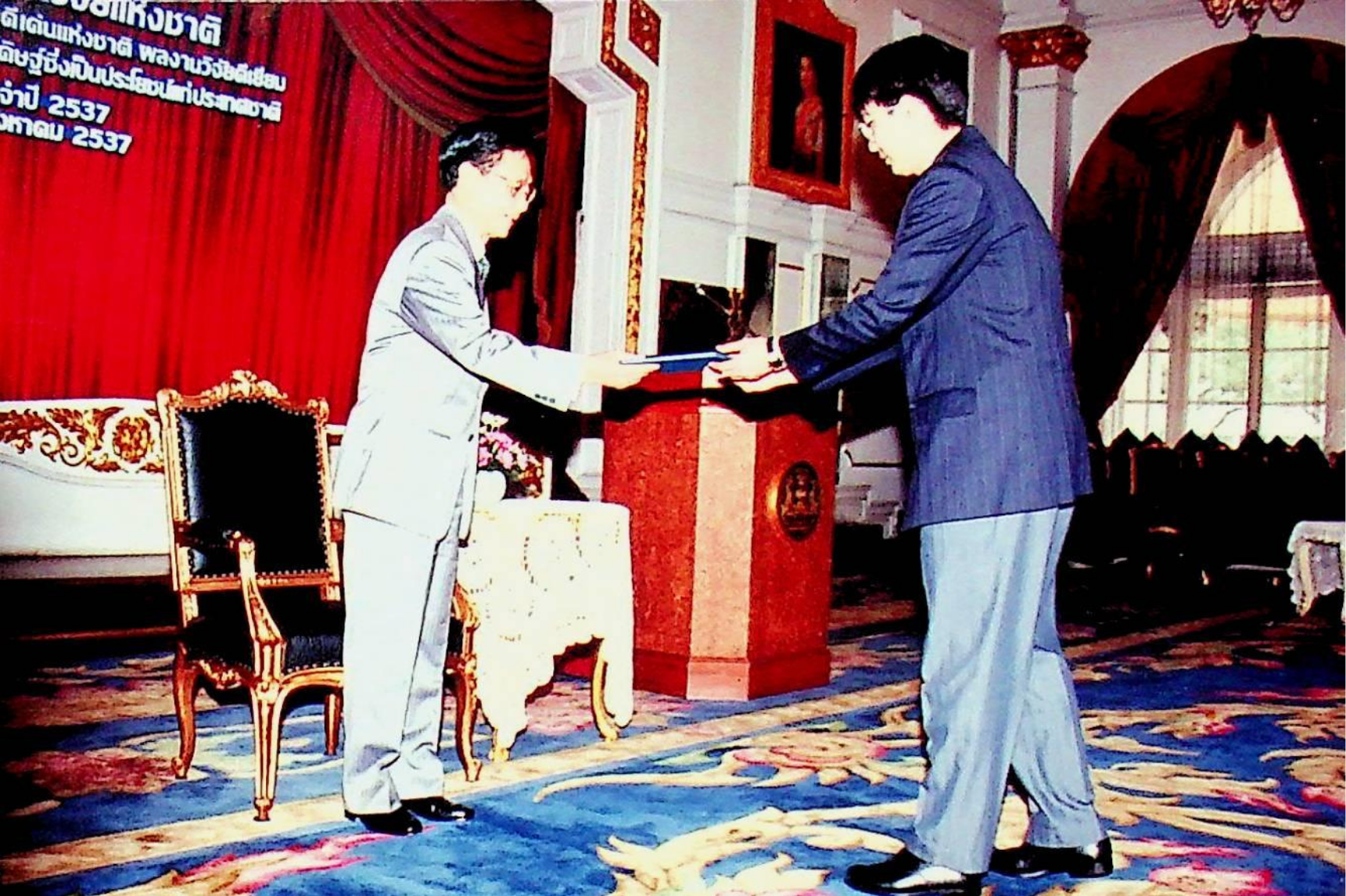 | Keywords: | สถาบันเทคโนโลยีพระจอมเกล้าธนบุรี รศ.ดร.พิเชษฐ ลิมสุวรรณ เข้ารับรางวัลชมเชย ผลงานคิดค้น หรือสิ่งประดิษฐ์ซึ่งเป็นประโยชน์ต่อประเทศชาติ ผลงานคิดค้น สิ่งประดิษฐ์ซึ่งเป็นประโยชน์ต่อประเทศชาติ 2537 การสร้างและพัฒนาเตาไฟฟ้าอุณหภูมิสูง การเผาพลอย พณฯ ชวน หลีกภัย นายกรัฐมนตรี 3754 3755 ตึกสันติไมตรี ทําเนียบรัฐบาล |