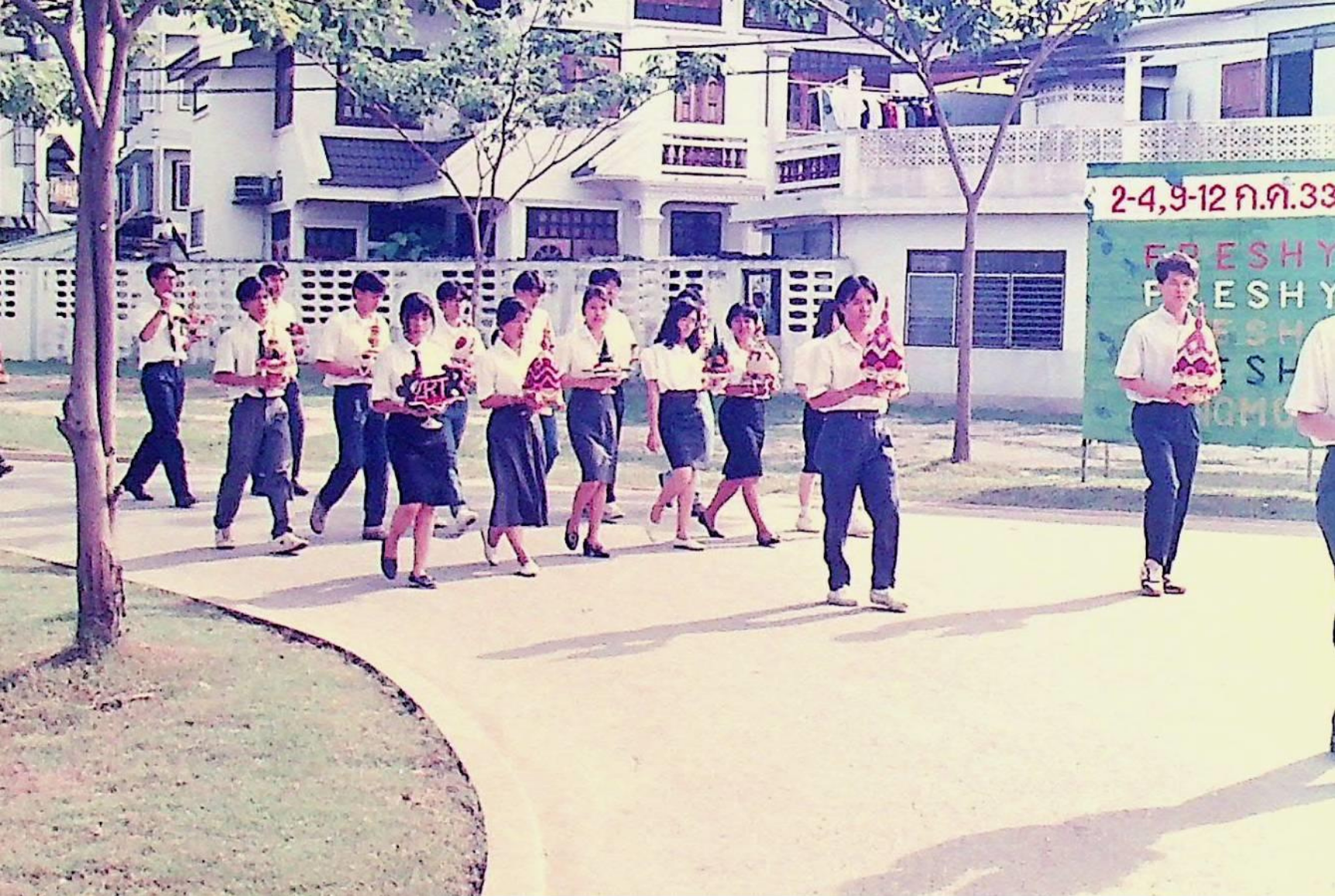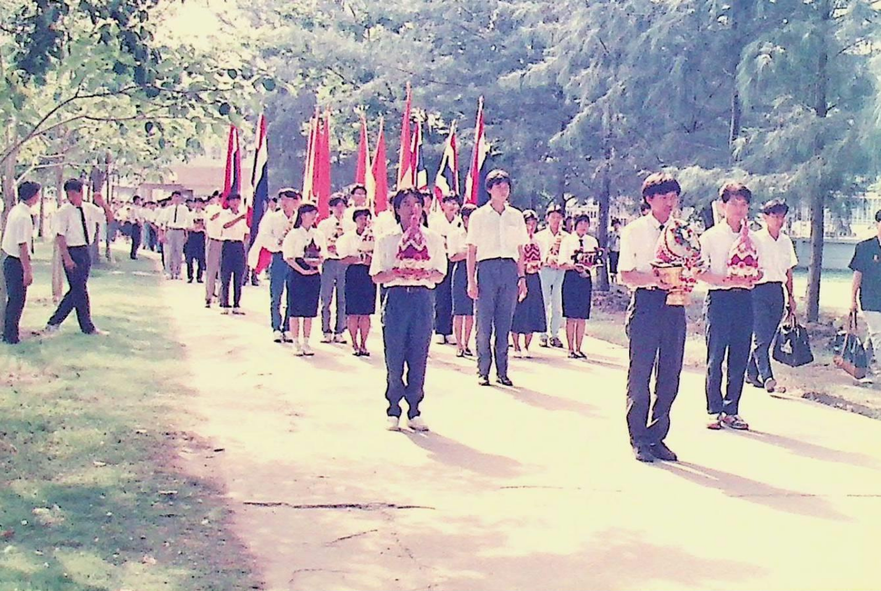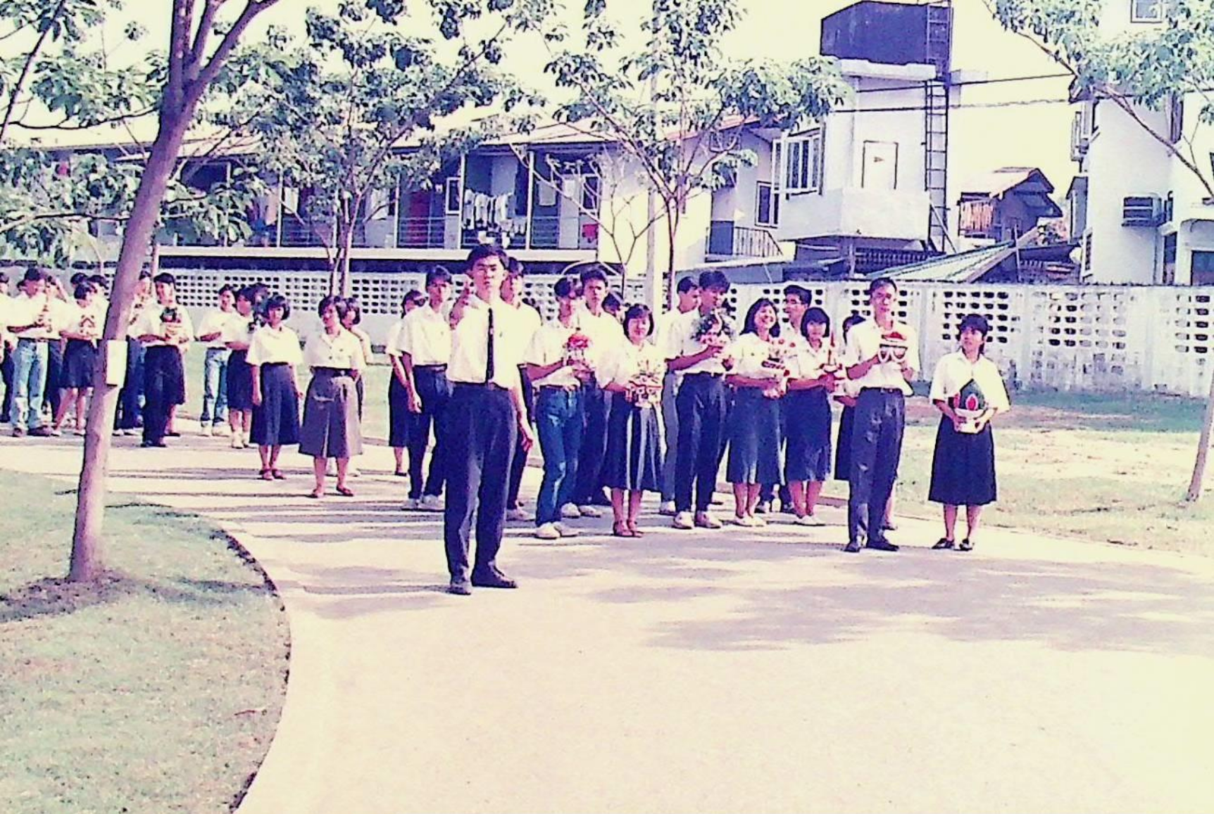 พิธีไหว้ครู ประจำปีการศึกษา 2533 และร่วมพัฒนาวัดสารอด ณ หอประชุม,ลานพระรูป,วัดสารอด ในวันที่ 28 มิถุนายน 2533 จากภาพถ่ายอัลบั้มที่ 3335,3336 และ 3337