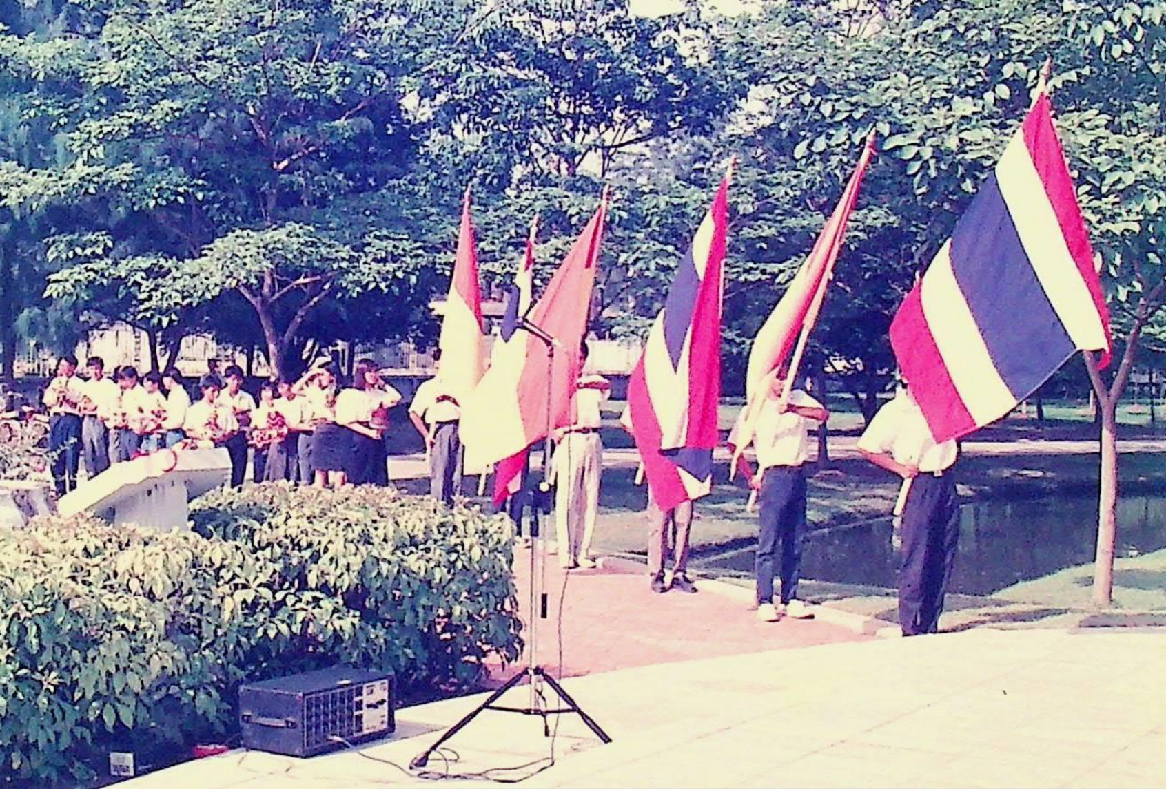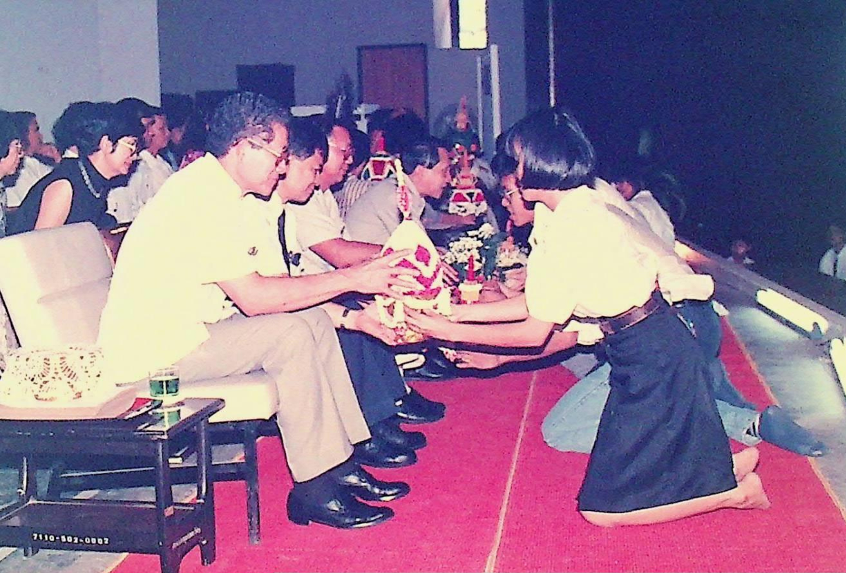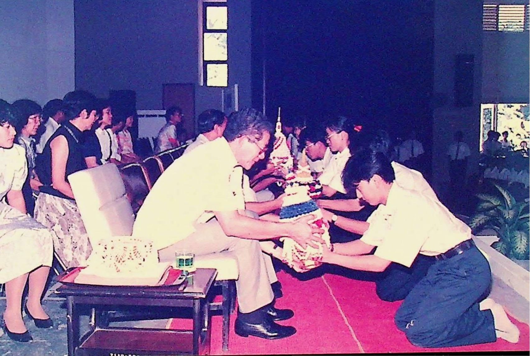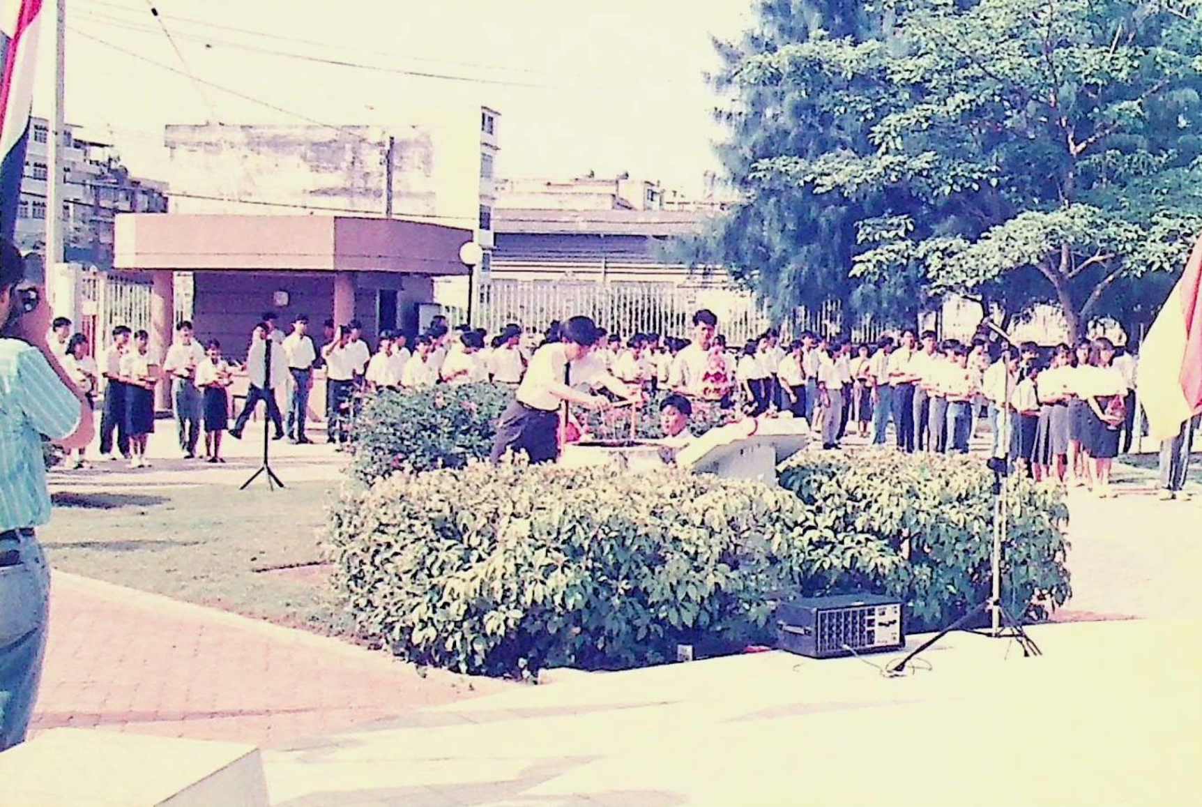พิธีไหว้ครู ประจำปีการศึกษา 2533 และร่วมพัฒนาวัดสารอด ณ หอประชุม,ลานพระรูป,วัดสารอด ในวันที่ 28 มิถุนายน 2533 จากภาพถ่ายอัลบั้มที่ 3335,3336 และ 3337