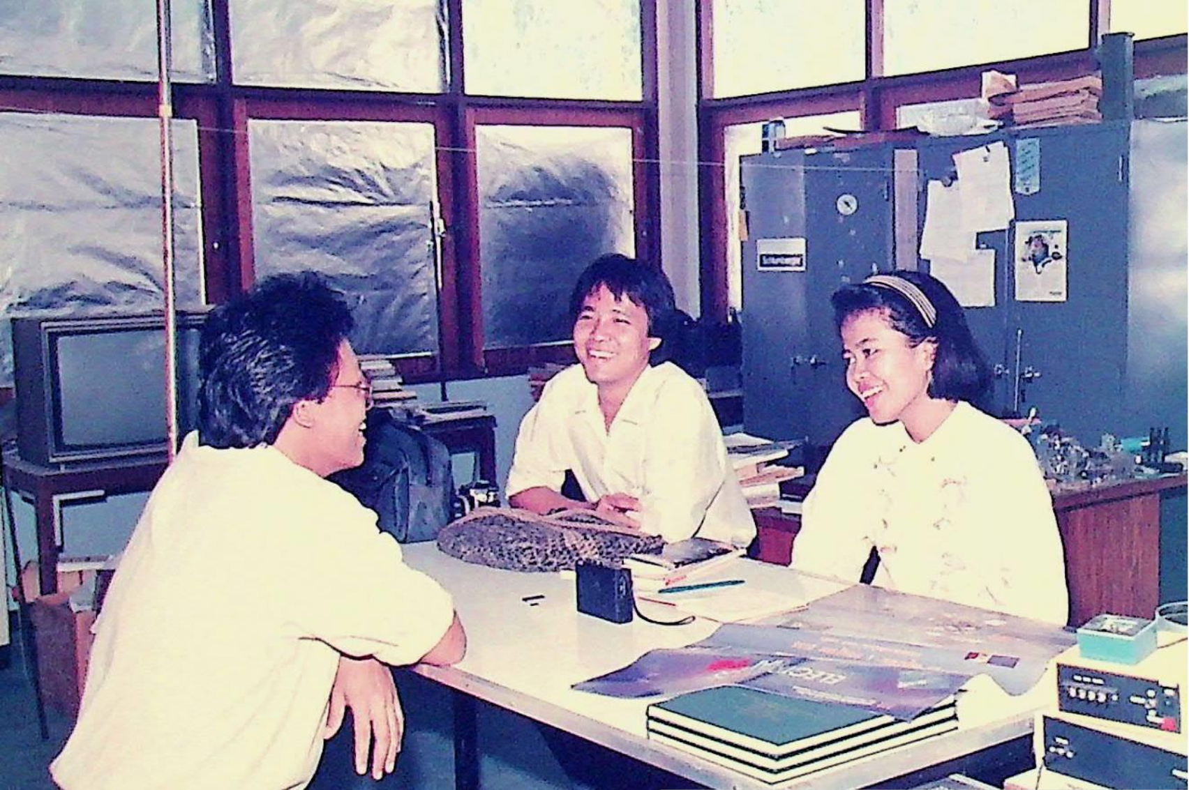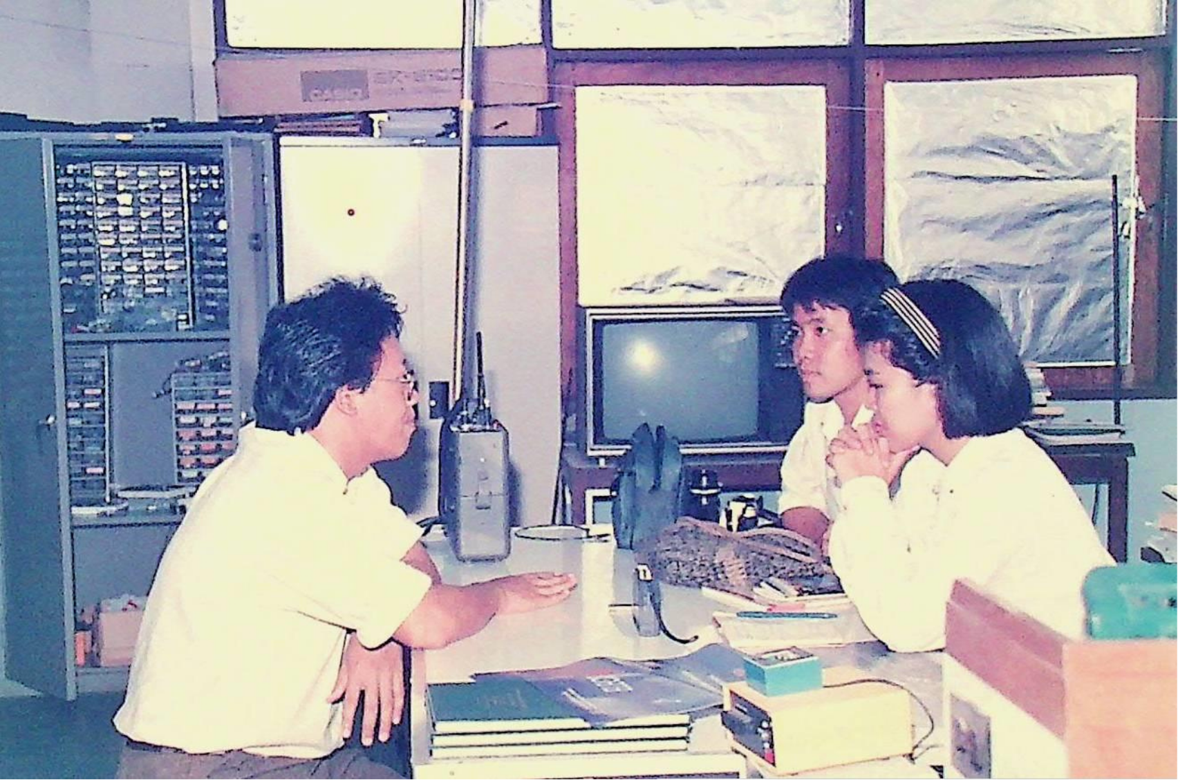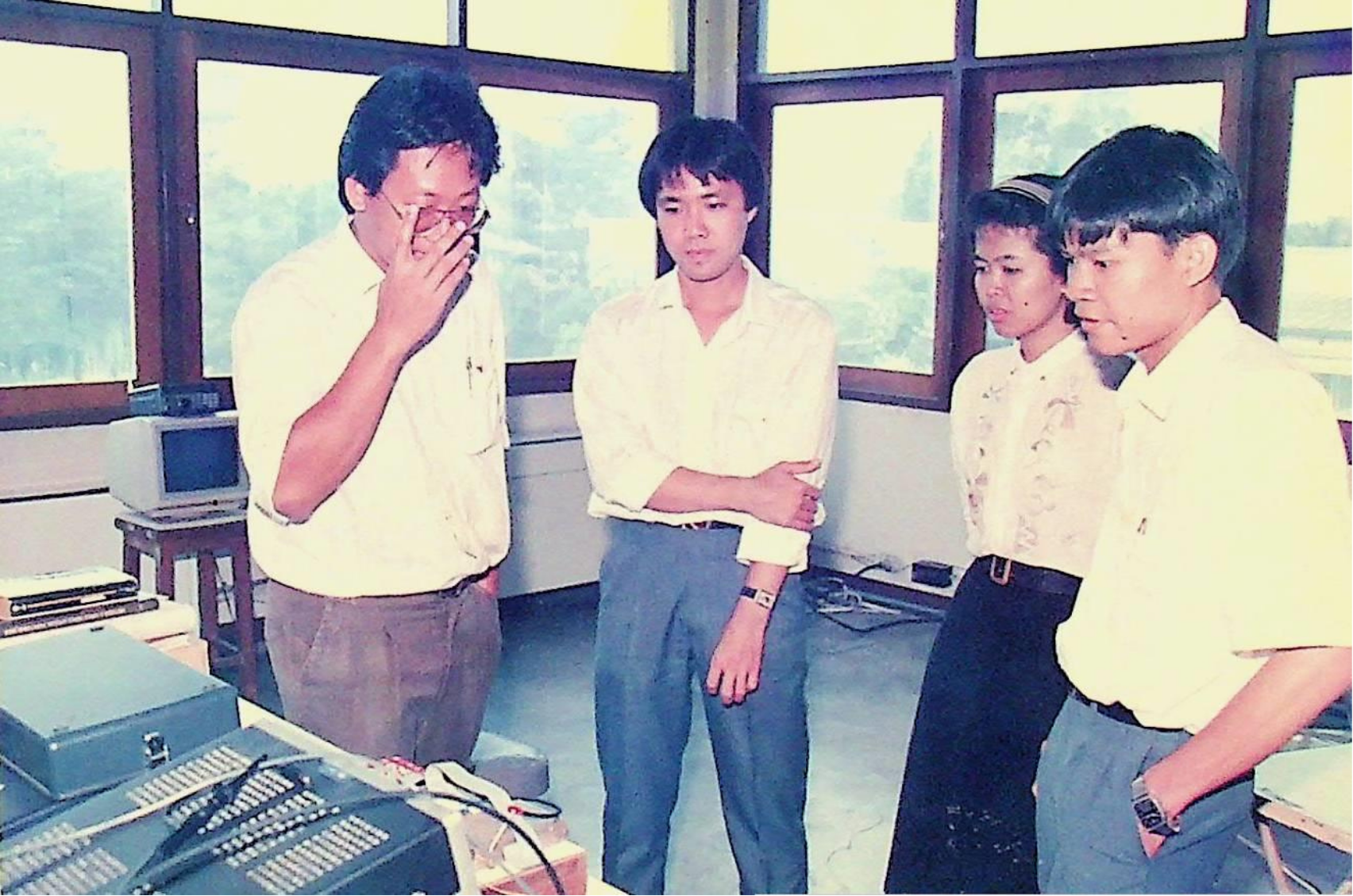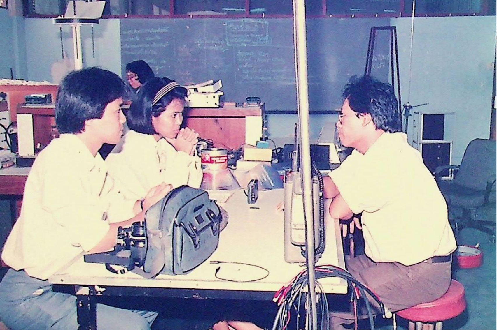 นิตยสาร ผู้นําการตลาด สัมภาษณ์อาจารย์ชนินทร์ วงศ์งามขำ และอาจารย์พินิจ กำหอม เกี่ยวกับเครื่องสังเคราะห์ความถี่ย่าน UHF. ณ ภาควิชาวิศวกรรมไฟฟ้า ในวันที่ 29 มิถุนายน 2533 จากภาพถ่ายอัลบั้มที่ 3336