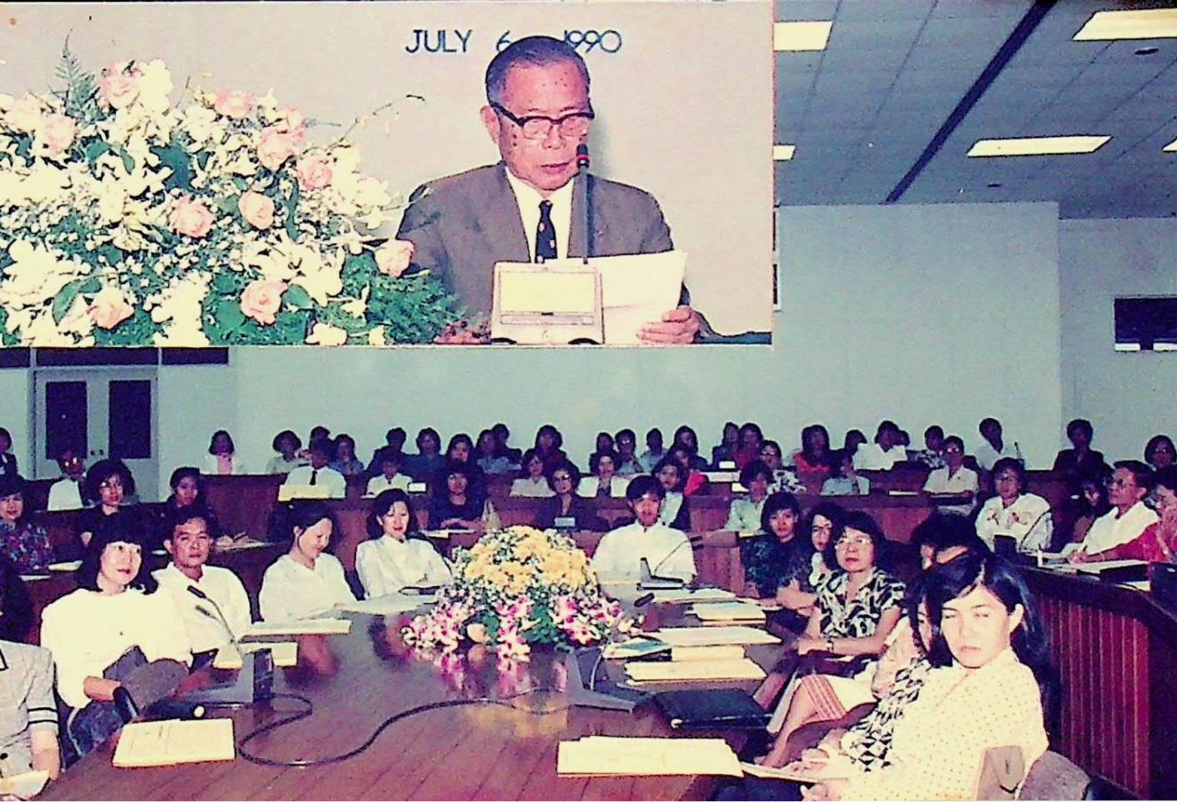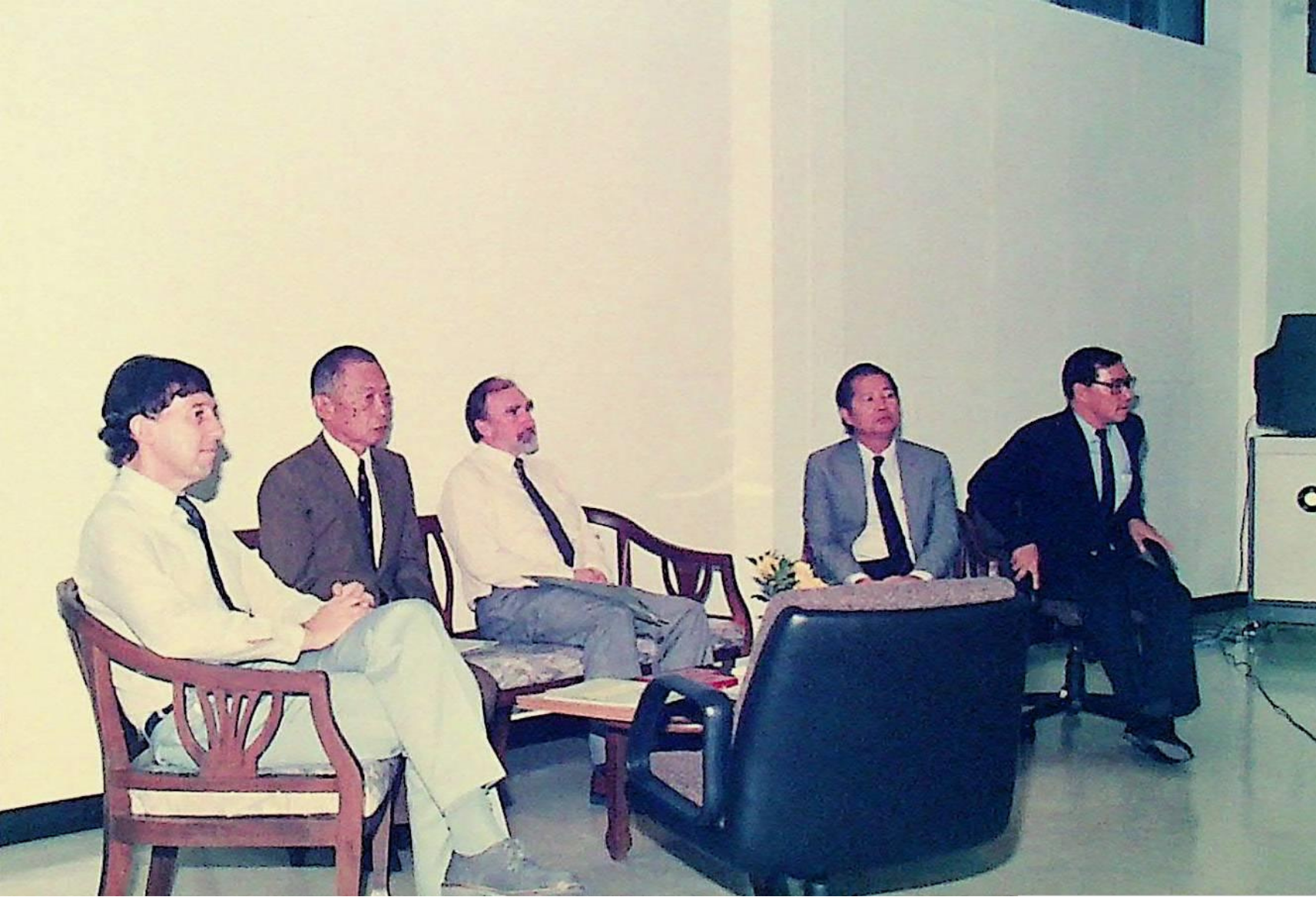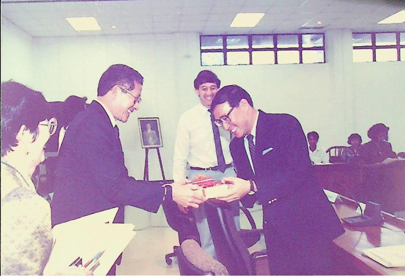 นายกสภาสถาบันเป็นประธานเปิดการสัมมนาเพื่อระดมความคิดในชาติเรื่อง การเรียนแบบพึ่งตนเอง จัดโดยภาควิชาภาษาและสังคม ร่วมกับบริติช เคานซิล ผู้บรรยายประกอบด้วย ดร.โกวิท วรพิพัฒน์ อธิบดีกรมสามัญศึกษา, ดร.กฤษณพงศ์ กีรติกร รองอธิการบดีฝ่ายวิจัยฯ, Mr. Ian Stewart และ Mr. Lesie Dikinson ณ ห้อง C B.2202  ในวันที 6 กรกฎาคม 2533 จากภาพถ่าย 3339 และ 3340