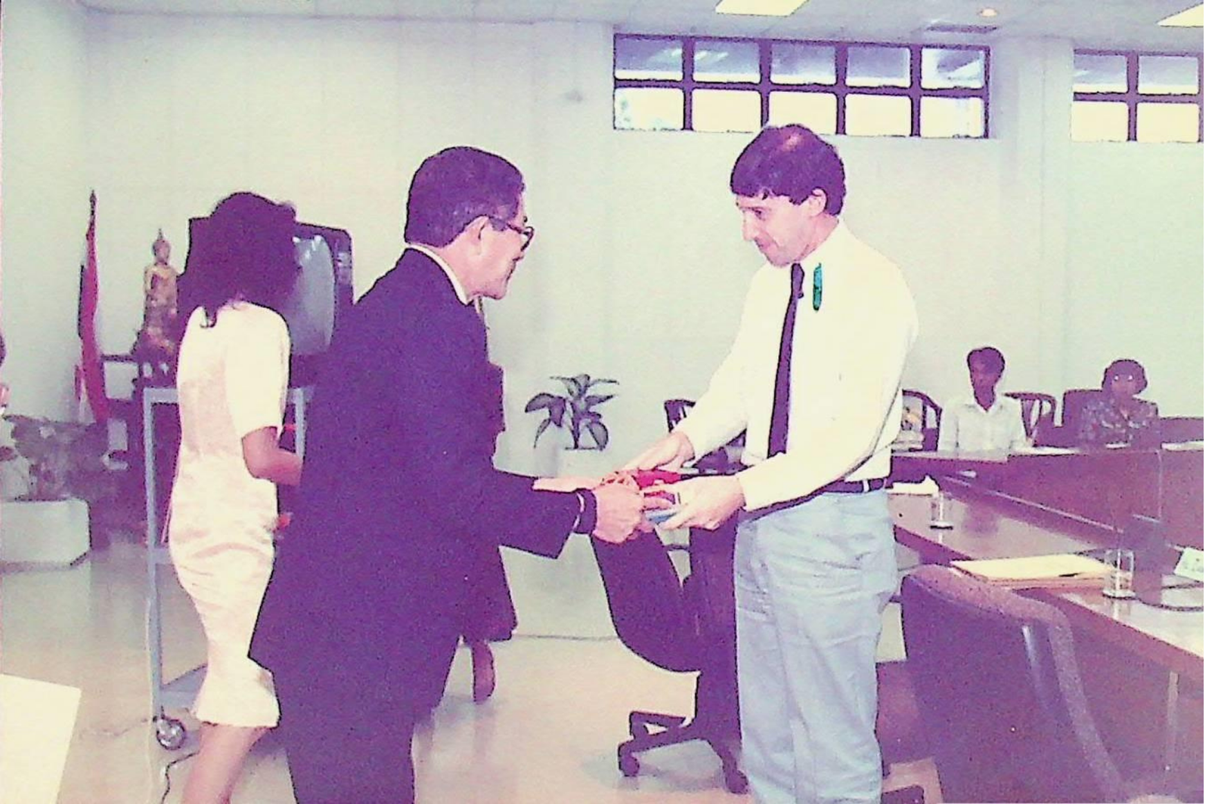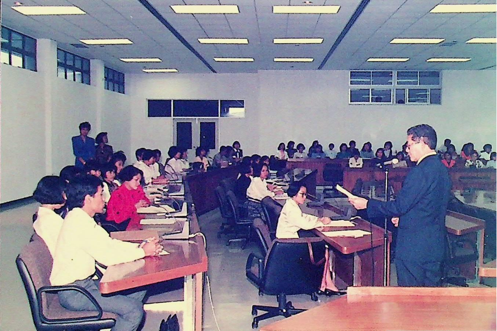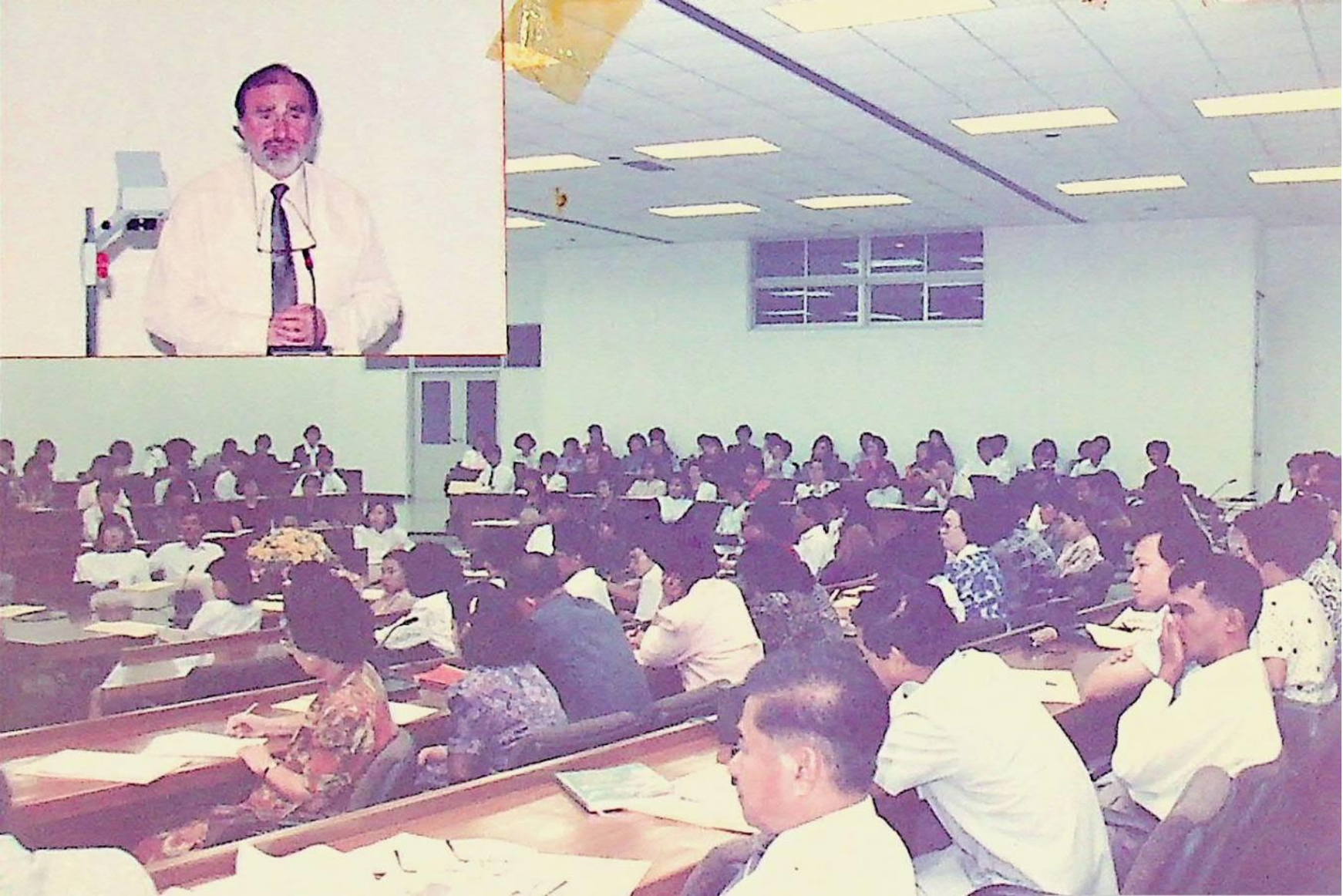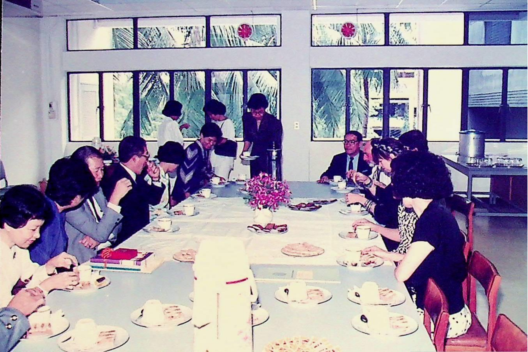 นายกสภาสถาบันเป็นประธานเปิดการสัมมนาเพื่อระดมความคิดในชาติเรื่อง การเรียนแบบพึ่งตนเอง จัดโดยภาควิชาภาษาและสังคม ร่วมกับบริติช เคานซิล ผู้บรรยายประกอบด้วย ดร.โกวิท วรพิพัฒน์ อธิบดีกรมสามัญศึกษา, ดร.กฤษณพงศ์ กีรติกร รองอธิการบดีฝ่ายวิจัยฯ, Mr. Ian Stewart และ Mr. Lesie Dikinson ณ ห้อง C B.2202  ในวันที 6 กรกฎาคม 2533 จากภาพถ่าย 3339 และ 3340
