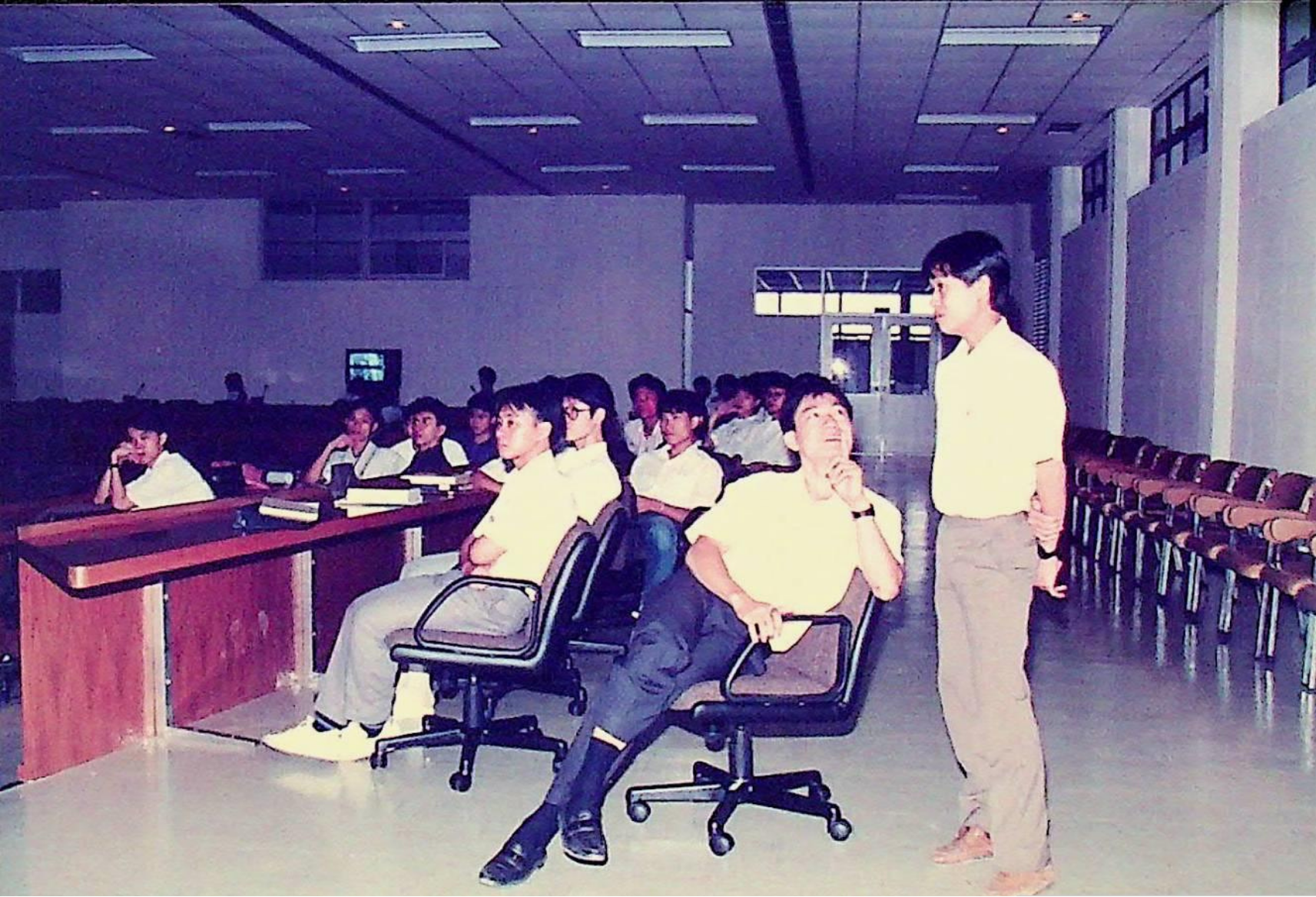 อาจารย์ชิต เหล่าวัฒนา บรรยายพิเศษเรื่อง หุ่นยนต์อุตสาหกรรม ปัจจุบันและอนาคต ณ C B.2202 ในวันที่ 16 กรกฎาคม 2533 จากภาพถ่ายอัลบั้มที่ 3340