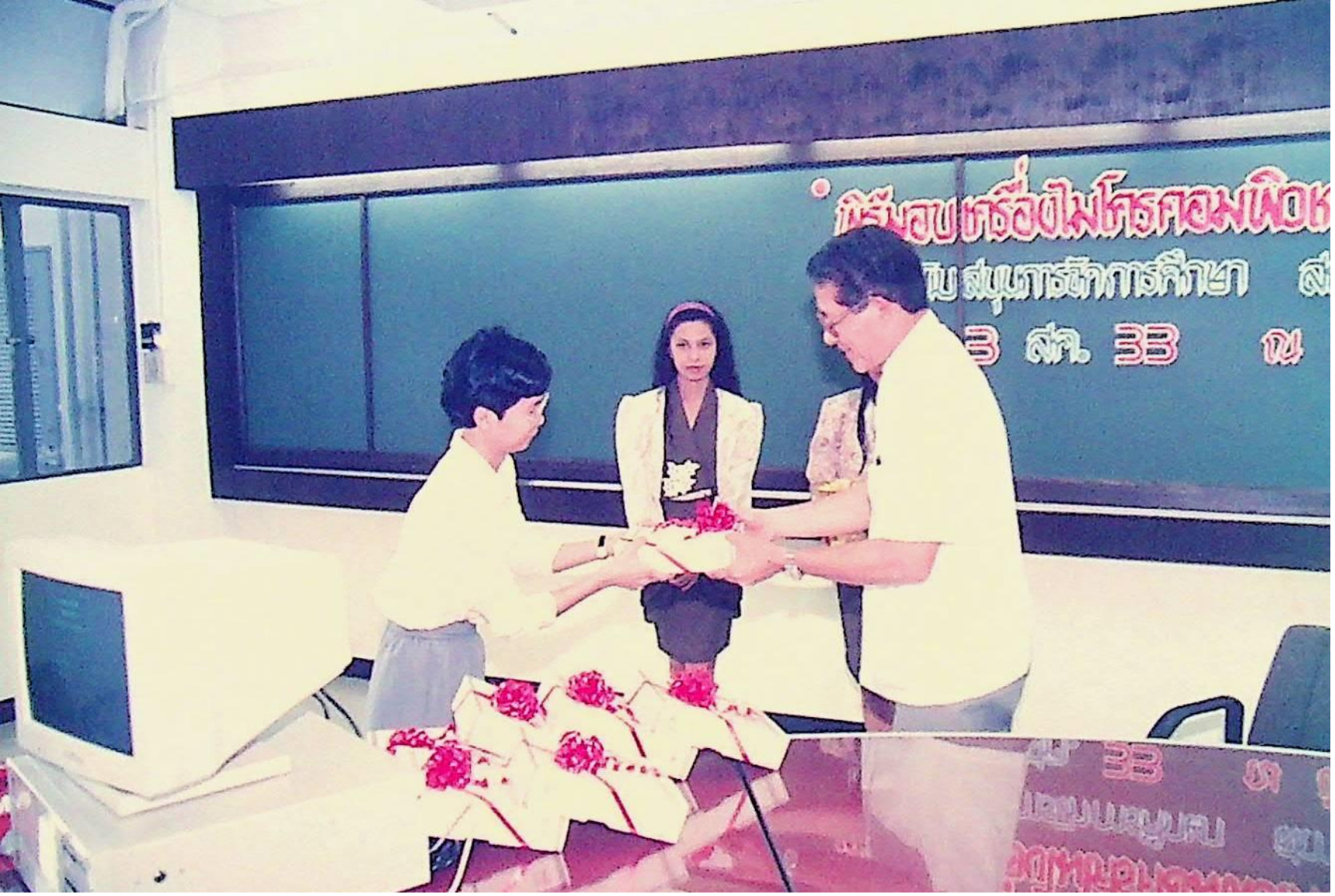 สำนักคอมพิวเตอร์มอบเครื่องไมโครคอมพิวเตอร์ให้กับหน่วยงานต่าง ๆ โดยมี รศ. ดร. ไพบูลย์ หังสพฤกษ์ อธิการบดี เป็นประธานในพิธีมอบ