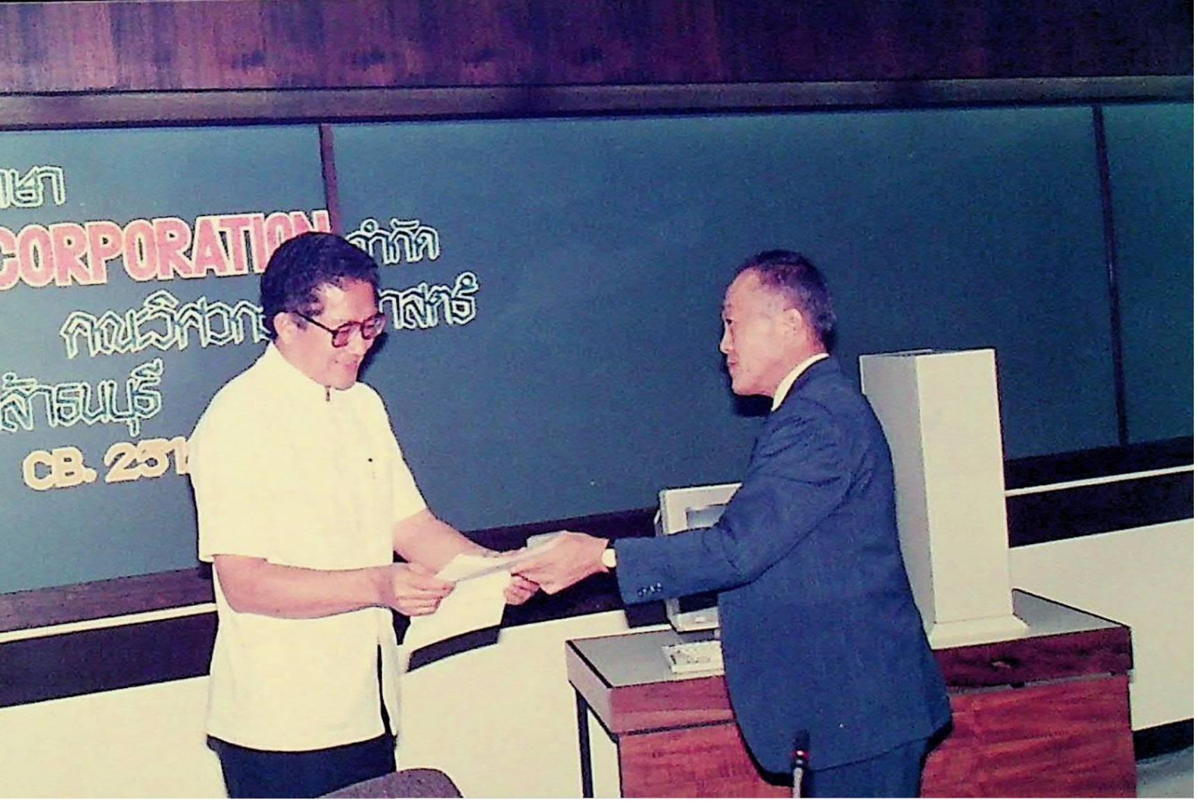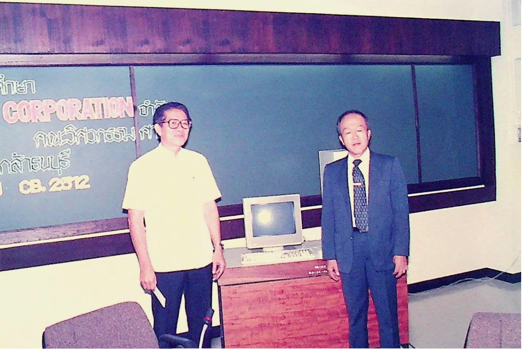 อธิการบดีเป็นประธานรับมอบเครื่องไมโครคอมพิวเตอร์ 32 บิต จากบริษัท โตโย เอนจิเนียริง คอร์ปอเรชัน จำกัด มอบให้กับภาควิชาวิศวกรรมเครื่องกล ณ CB 2207 ในวันที่ 4 ตุลาคม 2533 จากภาพถ่ายอัลบั้มที่ 3355