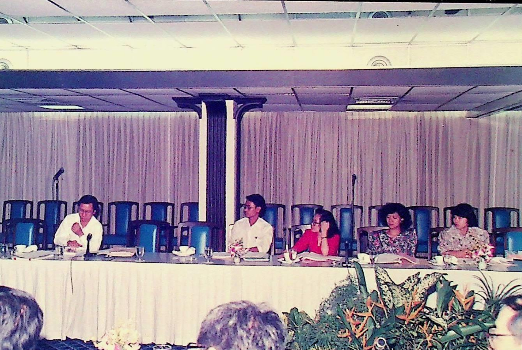 สถาบันเทคโนโลยีพระจอมเกล้าธนบุรี จัดสัมมนาเรื่อง การกำหนดกรอบแนวคิดเพื่อการจัดทำแผนแม่บทและแผนปฏิบัติการของสถาบันพัฒนาฝึกอบรมโรงงานต้นแบบ โดยมีอธิการบดีเป็นประธานเปิด ณ โรงแรม โรสการ์เด้น สวนสามพราน จ.นครปฐม ในวันที่ 11 ตุลาคม 2533 จากภาพถ่าย 3357, 3358