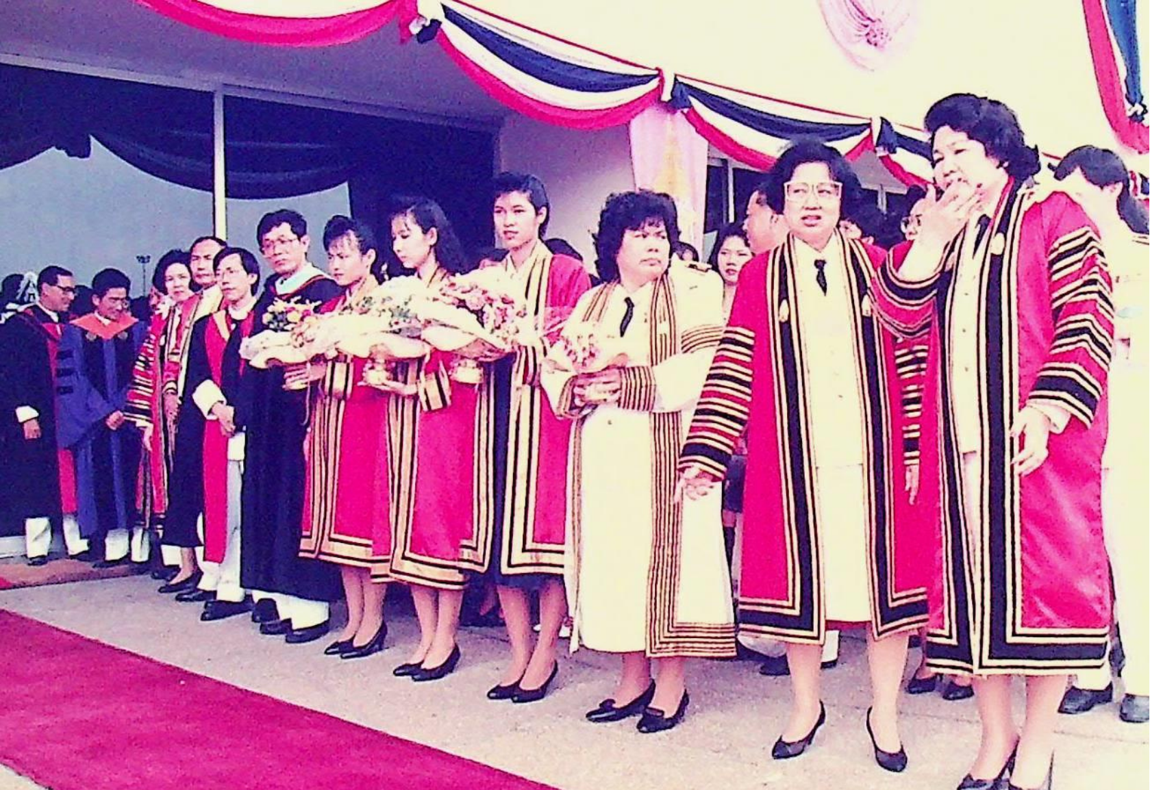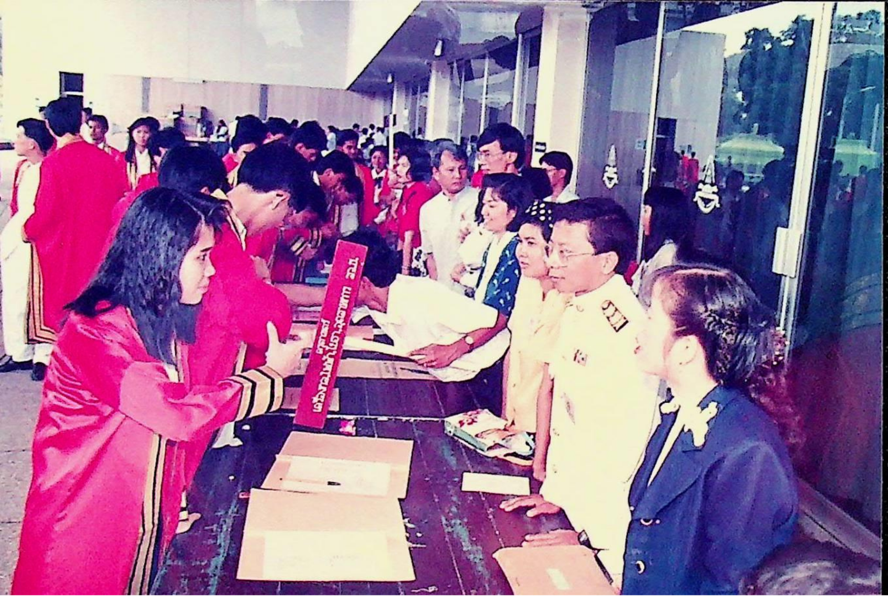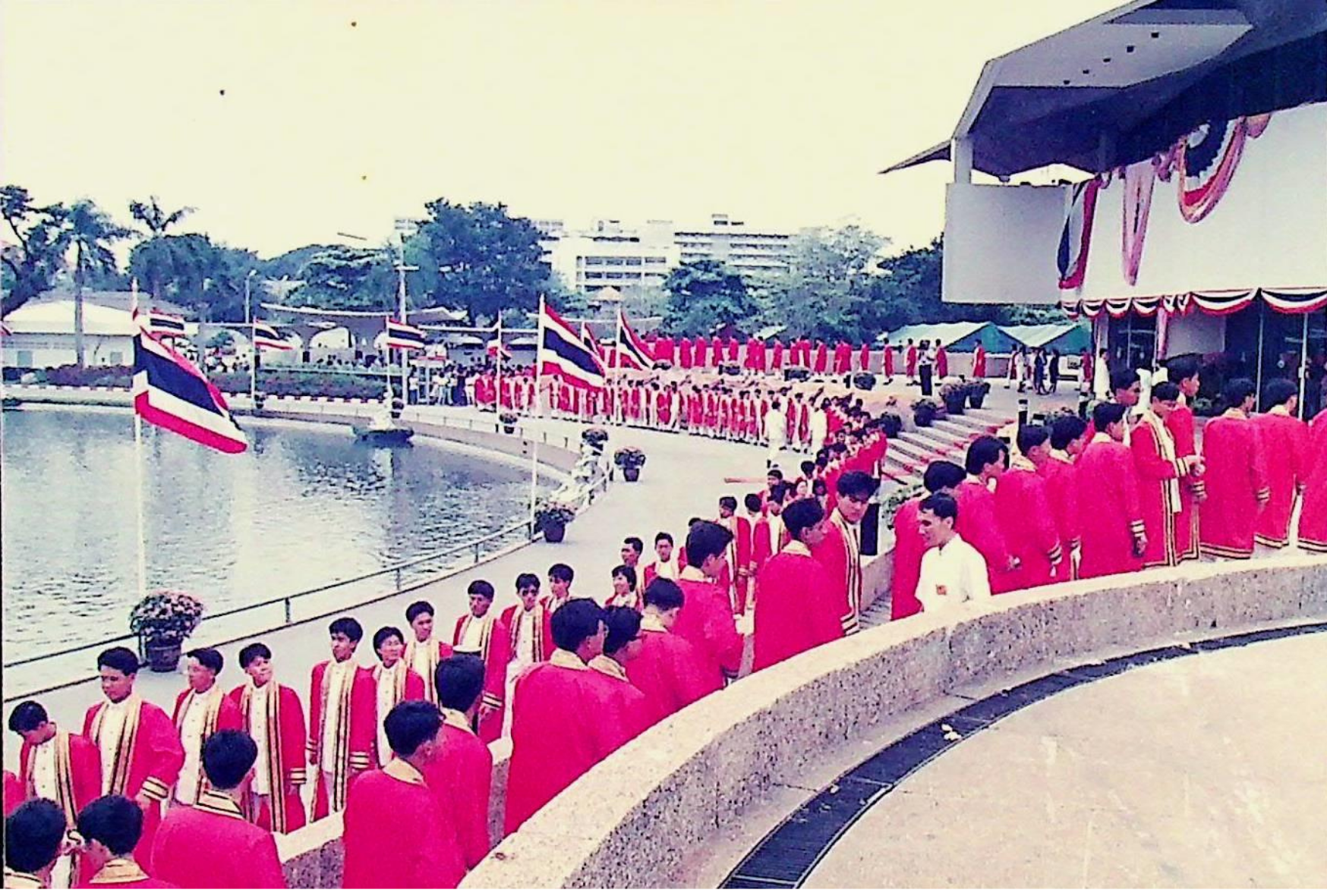 พิธีพระราชทานปริญญาบัตร ประจําปีการศึกษา 2532 ณ บริเวณหน้าสถาบัน, สวนอัมพร ในวันที่ 12,15 ตุลาคม 2533 จากภาพถ่ายอัลบั้มที่ 3358, 3359 และ 3360