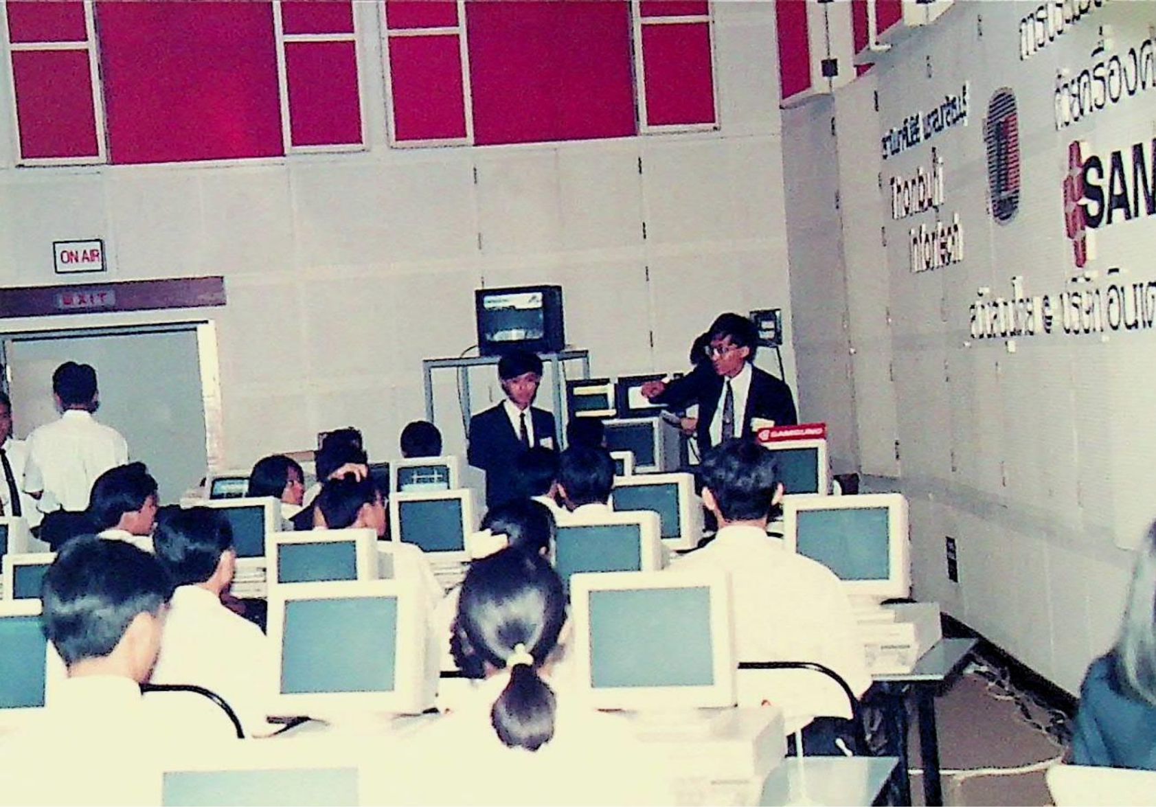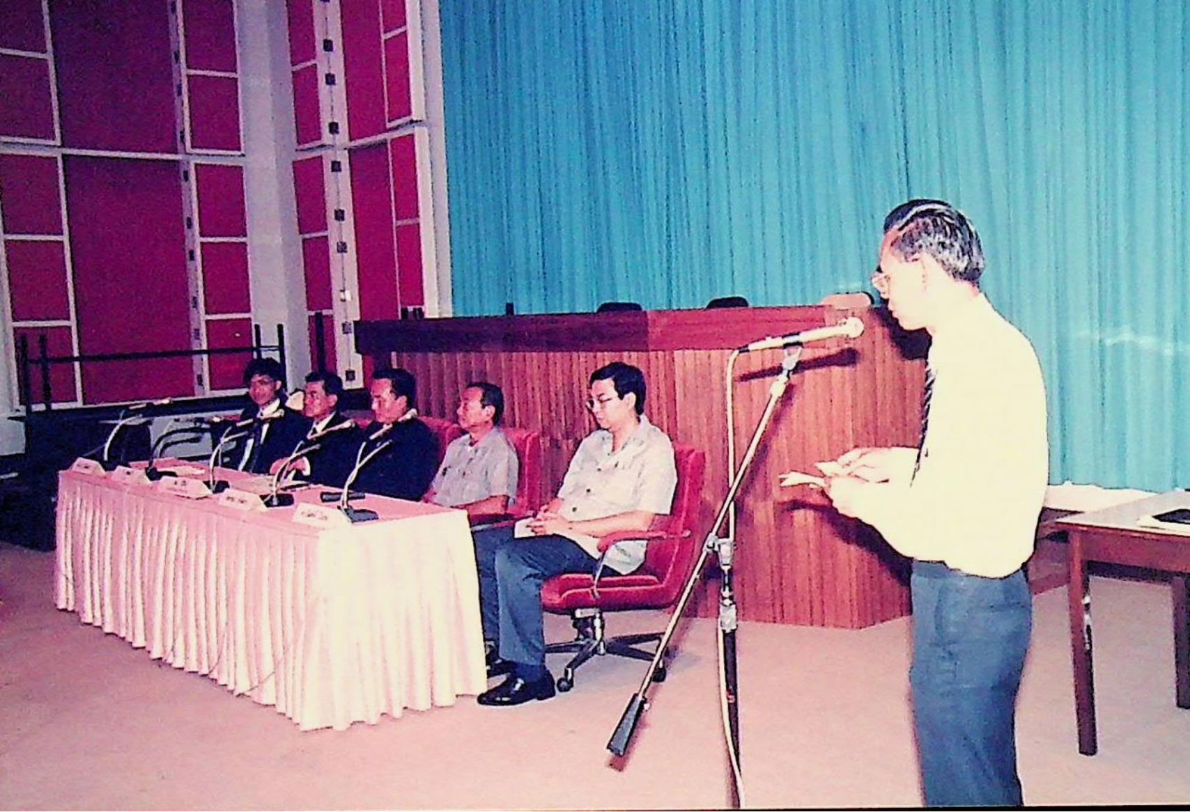 ผู้อำนวยการสถานีวิทยุโทรทัศน์แห่งประเทศไทย ช่อง 11 แถลงข่าวการรายงานผลการ เลือกตั้ง สส.ทั่วประเทศ ณ สถานีวิทยุกระจายเสียงแห่งประไทย ในวันอังคารที่ 17 มีนาคม 2535 จากภาพถ่ายอัลบั้มที่ 3513