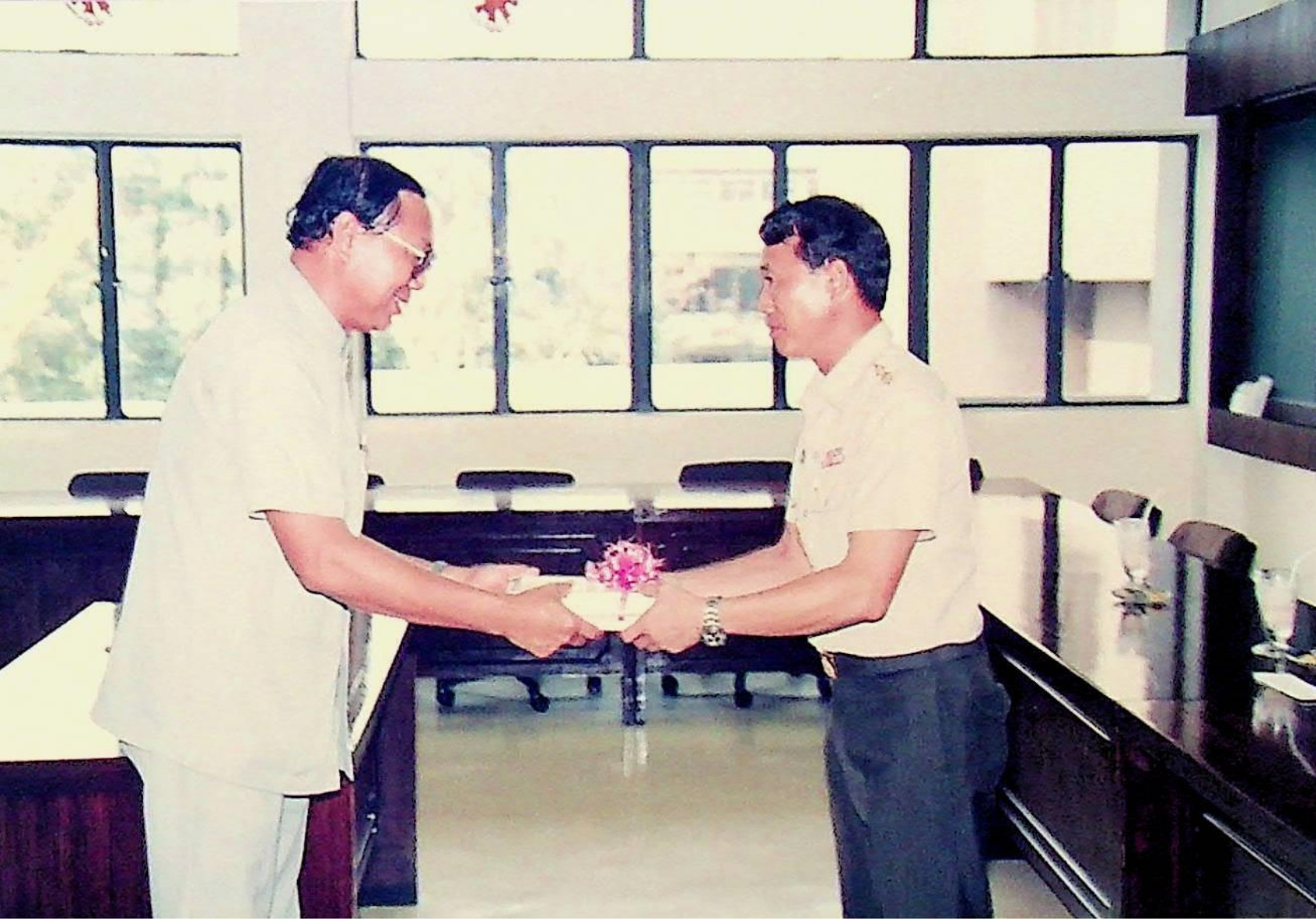 รศ.ดร.เดช พุทธเจริญทอง คณบดีคณะวิศวกรรมศาสตร์ ให้การต้อนรับ พ.อ.นิรันดร์ เรือนแก้ว ผู้อำนวยการกองเทคโนโลยี ศูนย์อำนวยการสร้างอาวุธ กองทัพบก จังหวัดลพบุรี ในโอกาสเข้าศึกษาดูงานและเยี่ยมชมคณะวิศวกรรมศาสตร์
