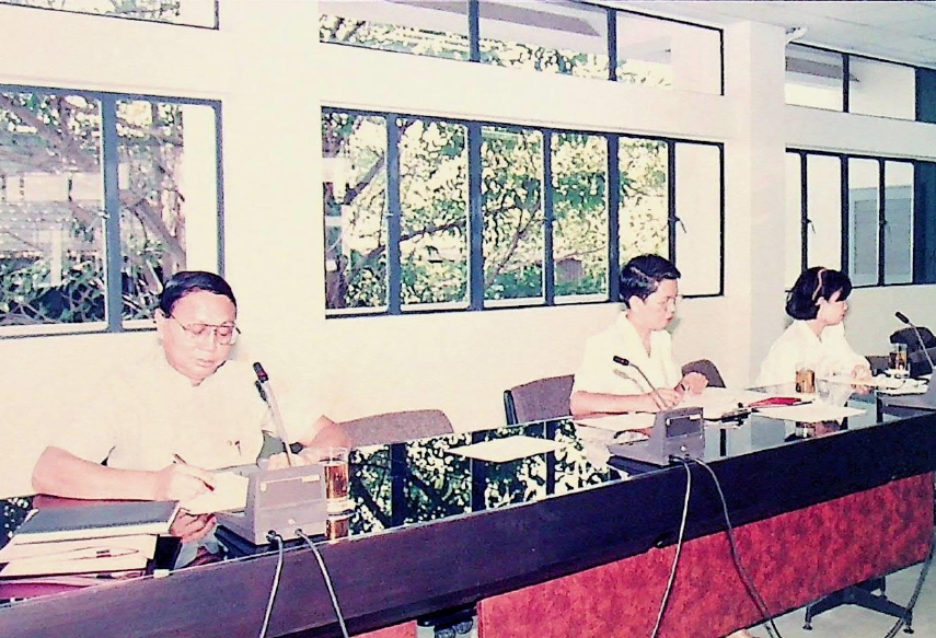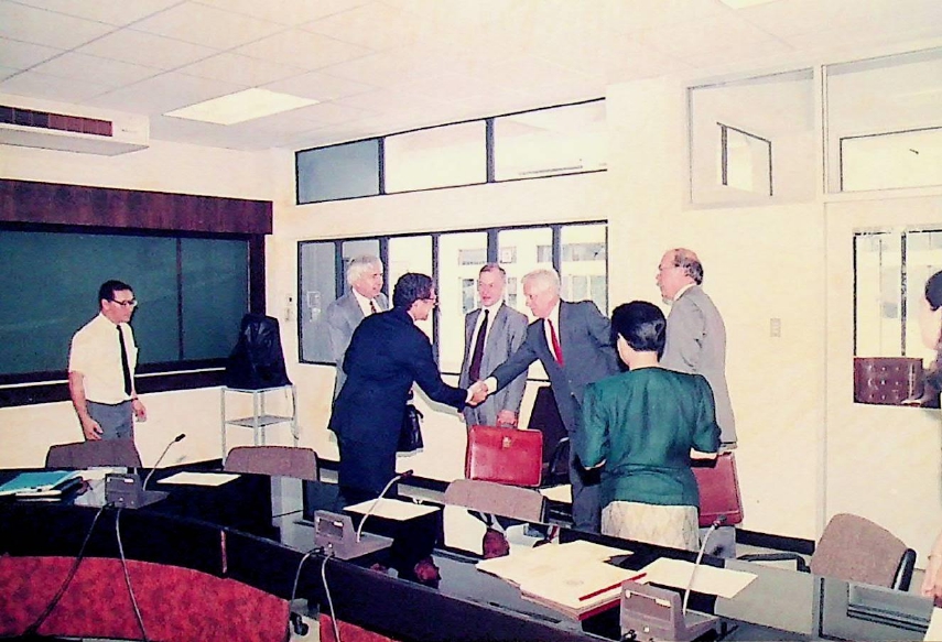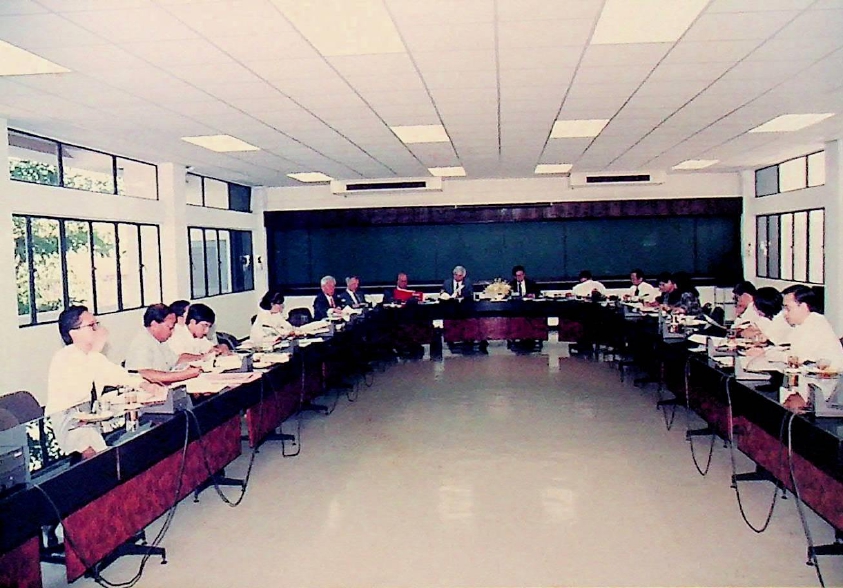 รศ.ดร.ไพบูลย์ หังสพฤกษ์ อธิการบดีและคณะให้การต้อนรับ Prof.R.D.Guthrie,Vice.Chancellor and President พร้อมคณบดีคณะวิศวกรรมศาสตร์ และคณบดีคณะวิทยาศาสตร์ของ UTS.ซึ่งเดินทางมาเจรจาข้อตกลงความร่วมมือระหว่างกัน ณ ห้อง CB.2312 ในวันจันทร์ที 30 มีนาคม 2535 จากภาพถ่ายอัลบั้มที่ 3515
