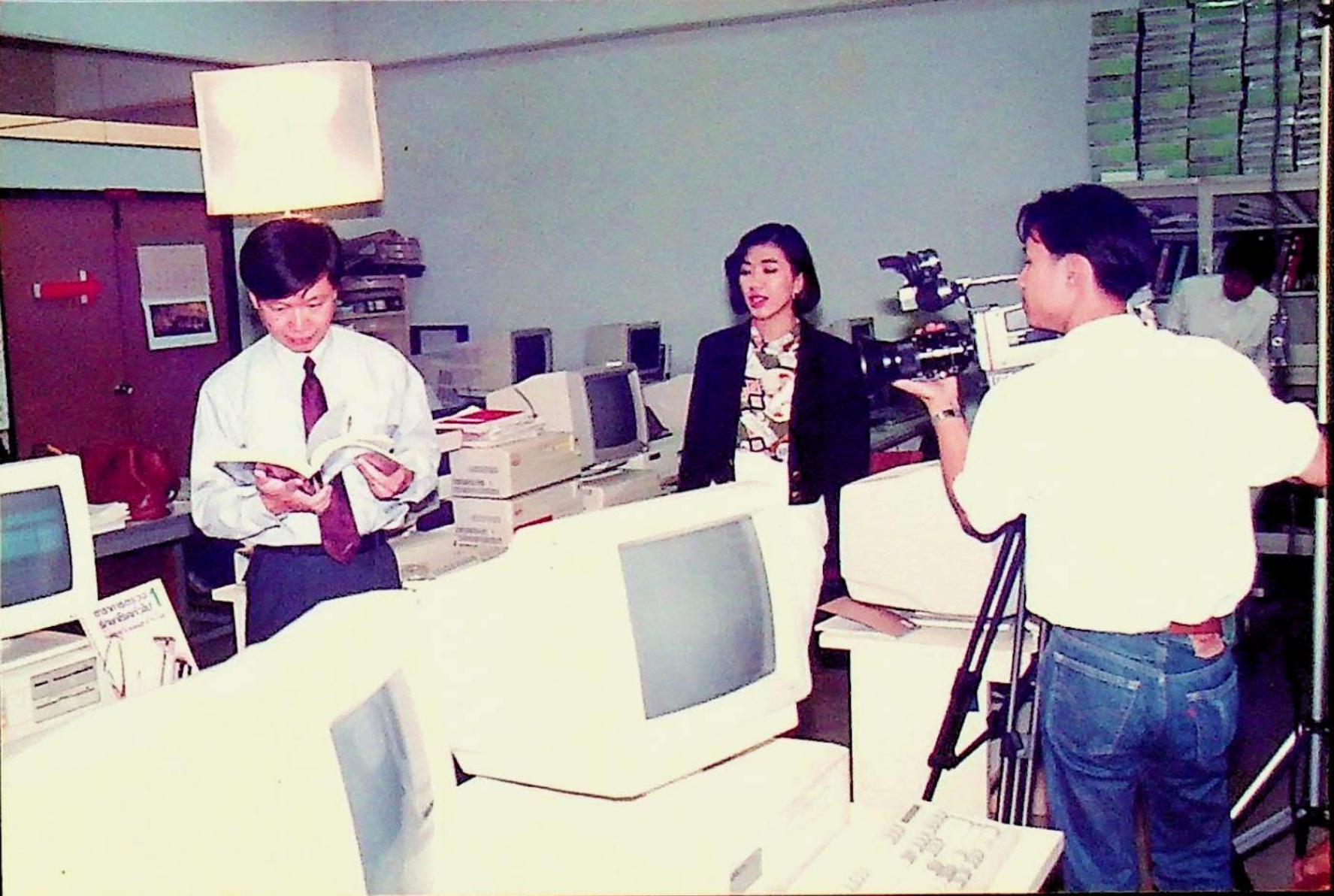 รายการ ก้าวทันโรค โดยคุณสนมพร ฉิมเฉลิม มาสัมภาษณ์อาจารย์บุญเจริญ ศิริเนาวกุล เรื่อง คอมพิวเตอร์ระบบผู้เชี่ยวชาญ ณ ห้อง MT Lab เพื่อนำไปแพร่ภาพทาง สถานีโทรทัศน์ไทยทีวีสี ช่อง 3 ในวันอังคารที่ 9 มิถุนายน 2535 จากภาพถ่ายอัลบั้มที่ 3521 - 3522