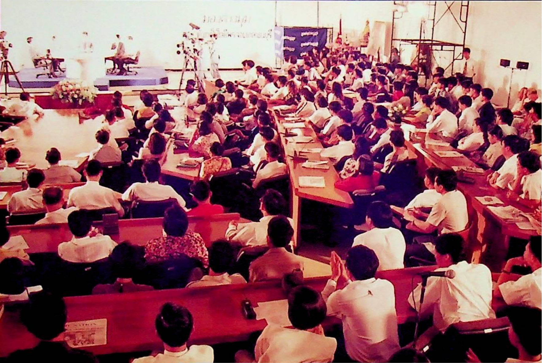 สถานีวิทยุโทรทัศน์แห่งประเทศไทย ช่อง 3 ร่วมมือกับมูลนิธิสื่อสร้างสรรค์ และสถาบันเทคโนโลยีพระจอมเกล้าธนบุรี จัดรายการ มองต่างมุม ขึ้นที่ห้องประชุมจํารัส ฉายะพงศ์ วิทยากรประกอบด้วย คุณปองพล อดิเรกสาร, คุณจรัส พัวช่วย, คุณไพศาล จรัสศุภจรรยา และ น.พ.เหวง โตจิราการ โดยมี ดร.เจิมศักดิ์ ปินทอง เป็นผู้ดําเนินรายการ รายการนี้แพร่ภาพทางสถานีวิทยุโทรทัศน์ ช่อง 3 กรมประชาสัมพันธ์ ในวันศุกร์ที่ 12 มิถุนายน 2535 จากภาพถ่ายอัลบั้มที่ 3522, 3523 และ 3524