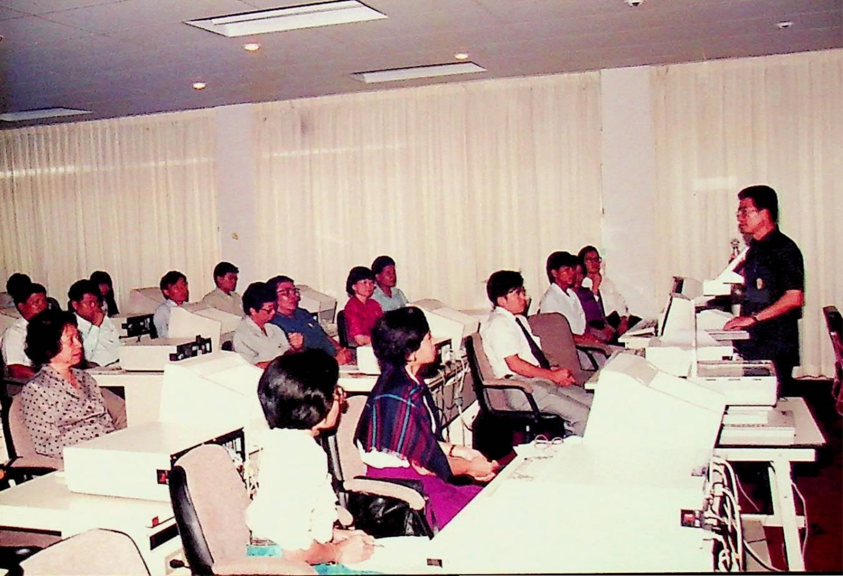 รศ.ดร.ไกรวุฒิ เกียรติโกมล รองอธิการบดีฝ่ายวางแผนและพัฒนา เป็นประธานเปิดการสัมมนาเรื่อง มาตรฐานจำนวนเงินเอาประกันอัคคีภัยและทรัพย์สิน ซึ่งภาควิชาวิศวกรรมโยธา คณะวิศวกรรมศาสตร์ จัดสัมมนาให้กับข้าราชการของกรมการประกันภัย กระทรวงพาณิชย์ จำนวน 40 คน ณ ห้องตักศิลา สำนักคอมพิวเตอร์ ในวันศุกร์ที่ 10 กรกฎาคม 2535 จากภาพถ่ายอัลบั้มที่ 3530