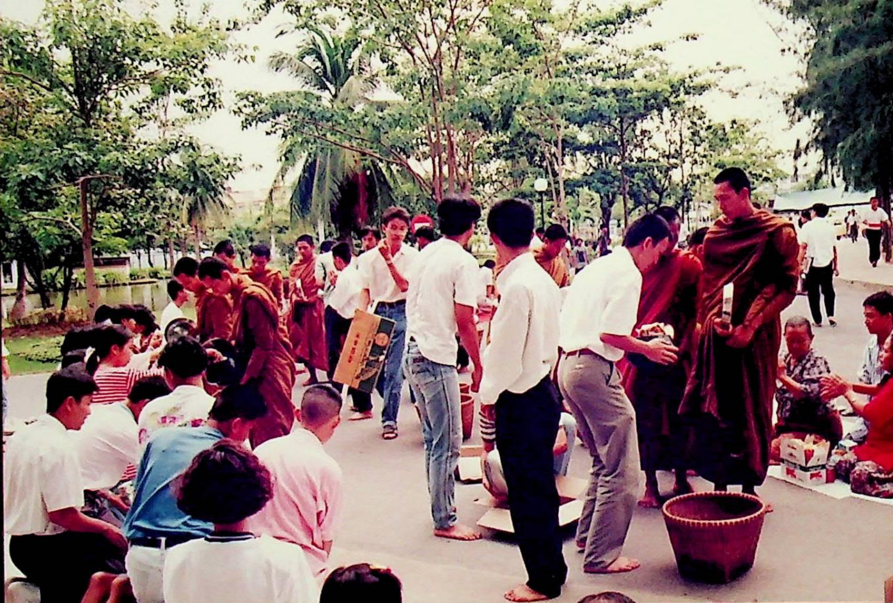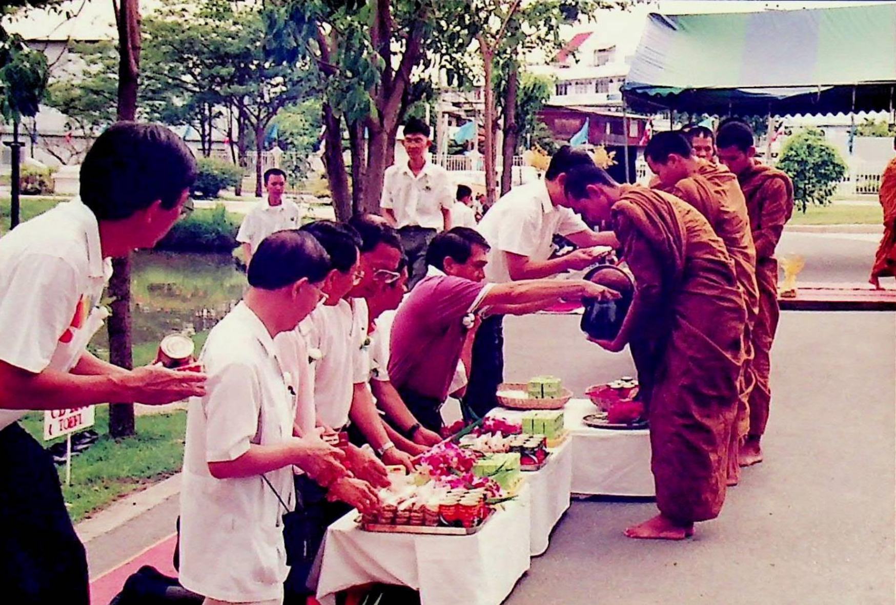 ในวันเฉลิมพระชนม์พรรษา สมเด็จพระนางเจ้าสิริกิติ์ พระบรมราชินีนาถ รศ.ดร.หริส สูตะบุตร อธิการบดีสถาบันเทคโนโลยีพระจอมเกล้าธนบุรี เป็นประธานในพิธีทำบุญตักบาตร ซึ่งชมรมพุทธศาสตร์ สโมสรนักศึกษา เป็นผู้จัดขึ้น ณ บริเวณหน้าสถาบัน โดยมีคณาจารย์ นักศึกษา ข้าราชการ และประชาชนในเขตราษฎร์บูรณะเข้าร่วมพิธีอย่างพร้อมเพรียง เพื่อแสดงความจงรักภักดีและสำนึกในพระมหากรุณาธิคุณ ในวันพุธที่ 12 สิงหาคม 2535 จากภาพถ่ายอัลบั้มที่ 3534