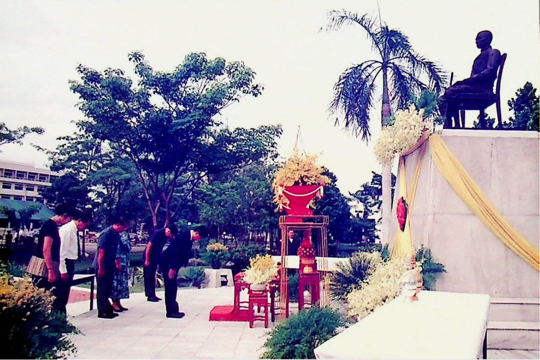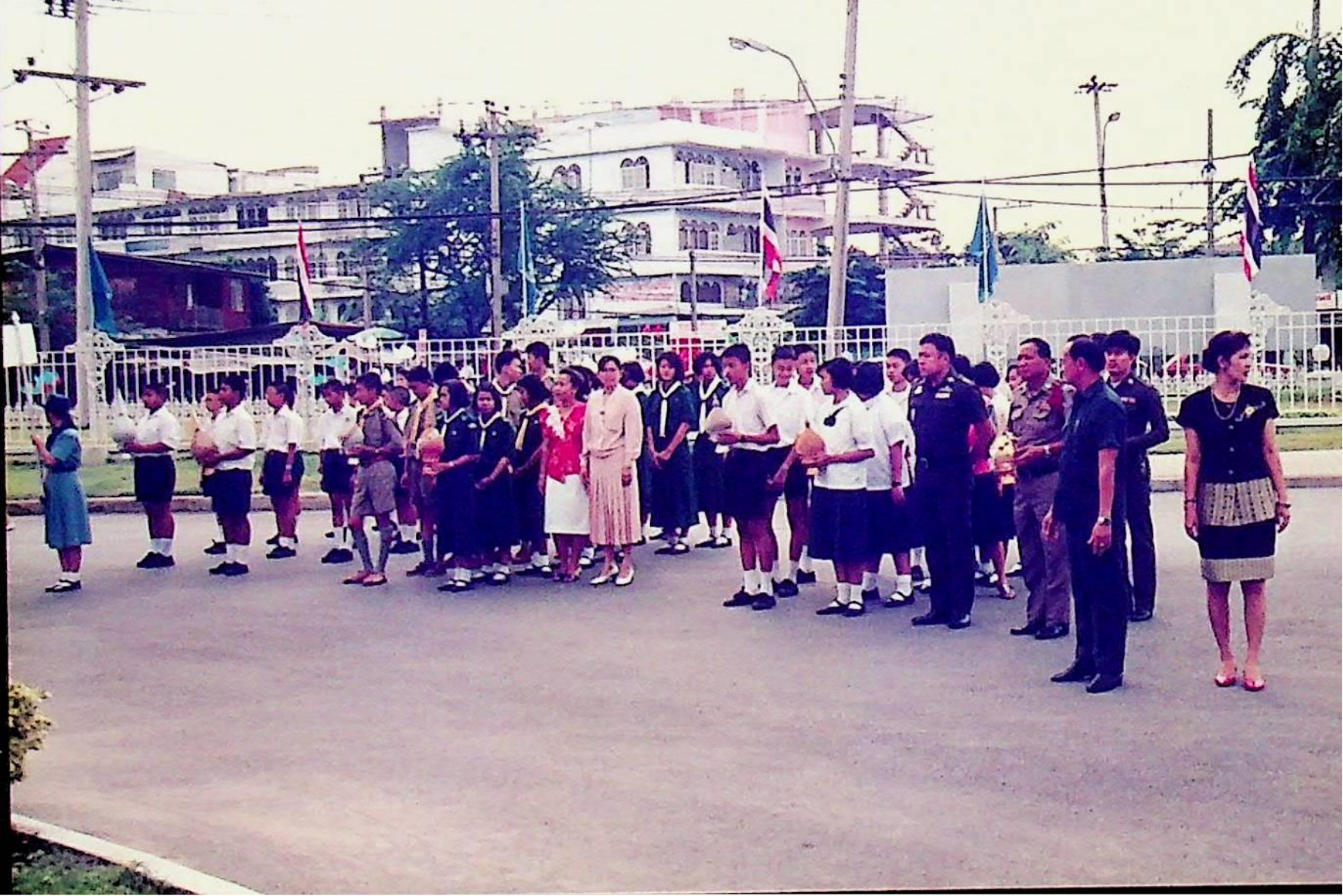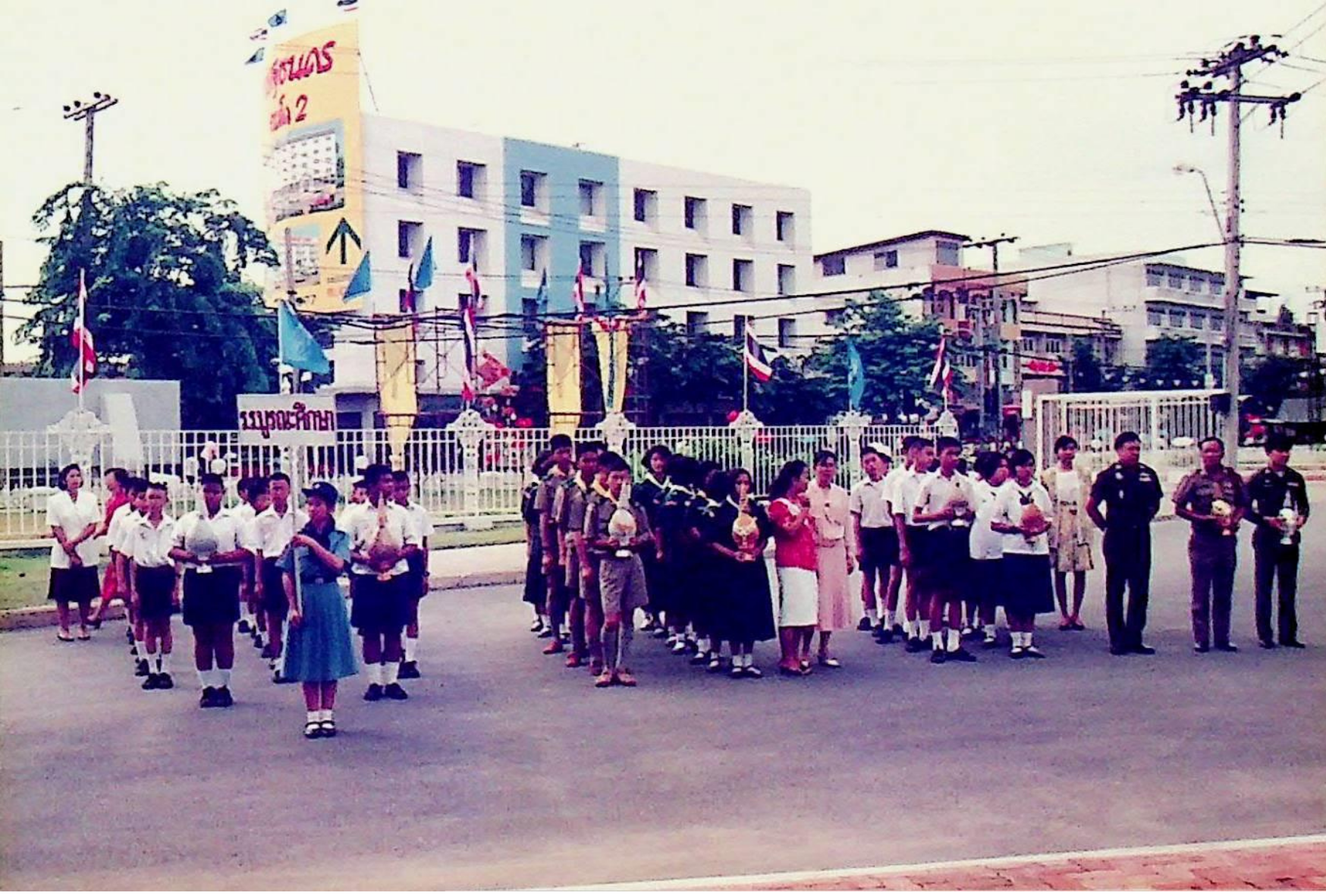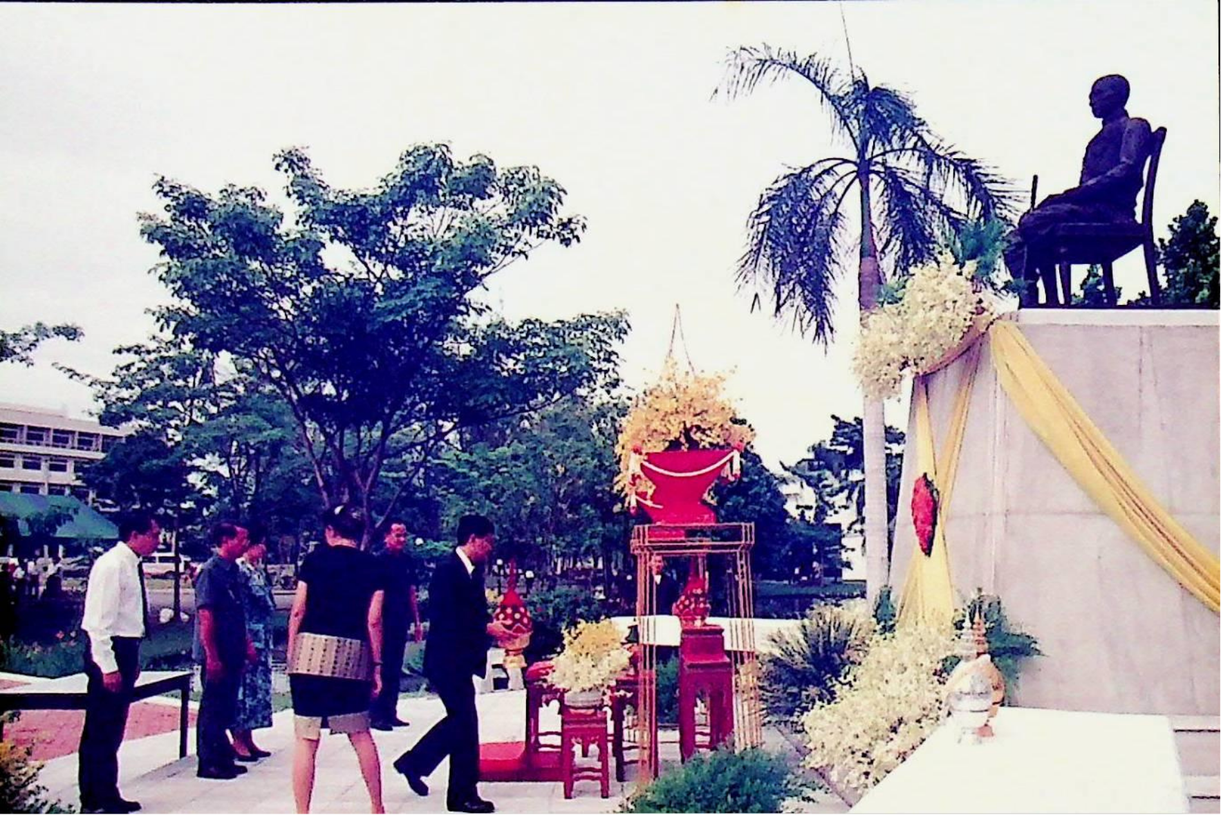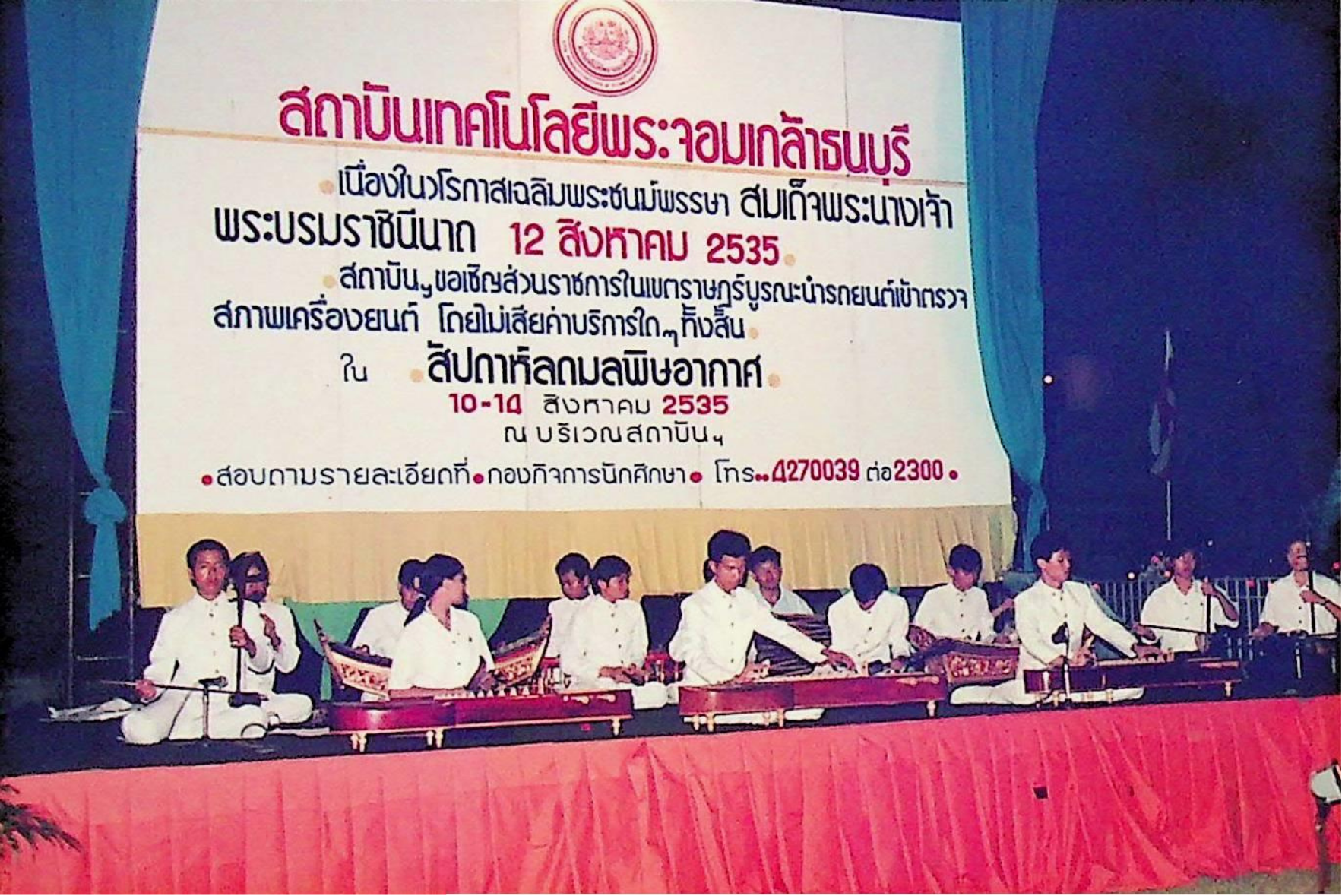 ชมรมดนตรีไทย สถาบันเทคโนโลยีพระจอมเกล้าธนบุรี นำวงดนตรีไทยออกบรรเลง เนื่องในวโรกาสเฉลิมพระชนม์พรรษาครบ 5 รอบ สมเด็จพระนางเจ้าสิริกิติ์ พระบรมราชินีนาถ ณ บริเวณหน้าประตูสถาบัน เพื่อร่วมแสดงความจงรักภักดีและถวายพระพรชัยมงคล ณ หน้าประตูสถาบัน ในวันพุธที่ 12 สิงหาคม 2535 จากภาพถ่ายอัลบั้มที่ 3535