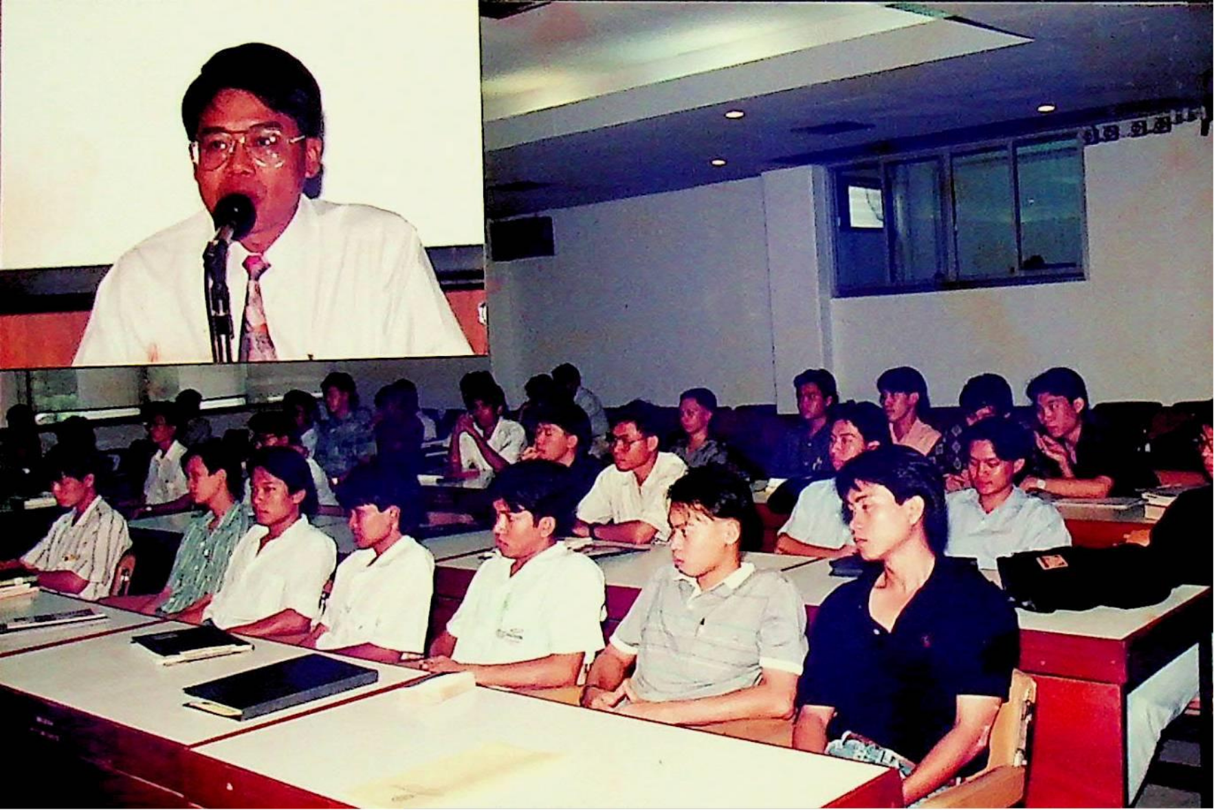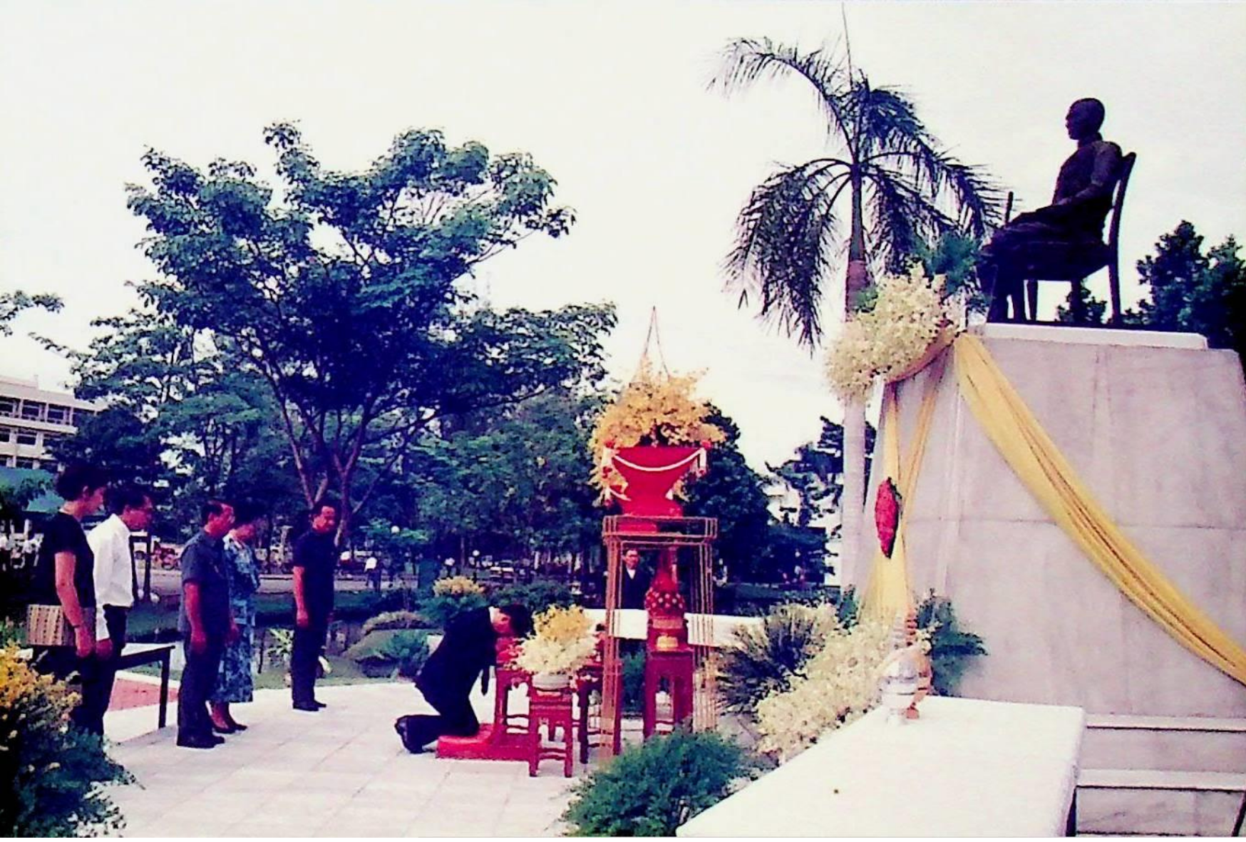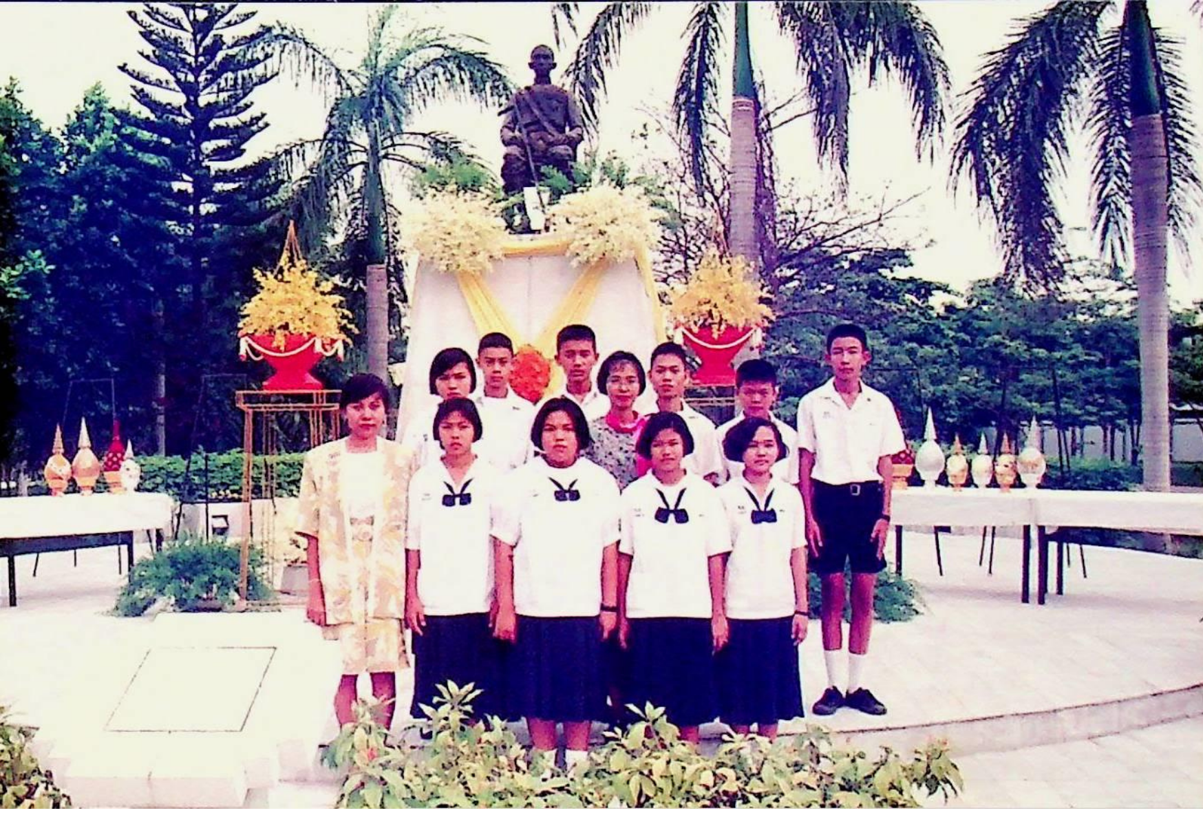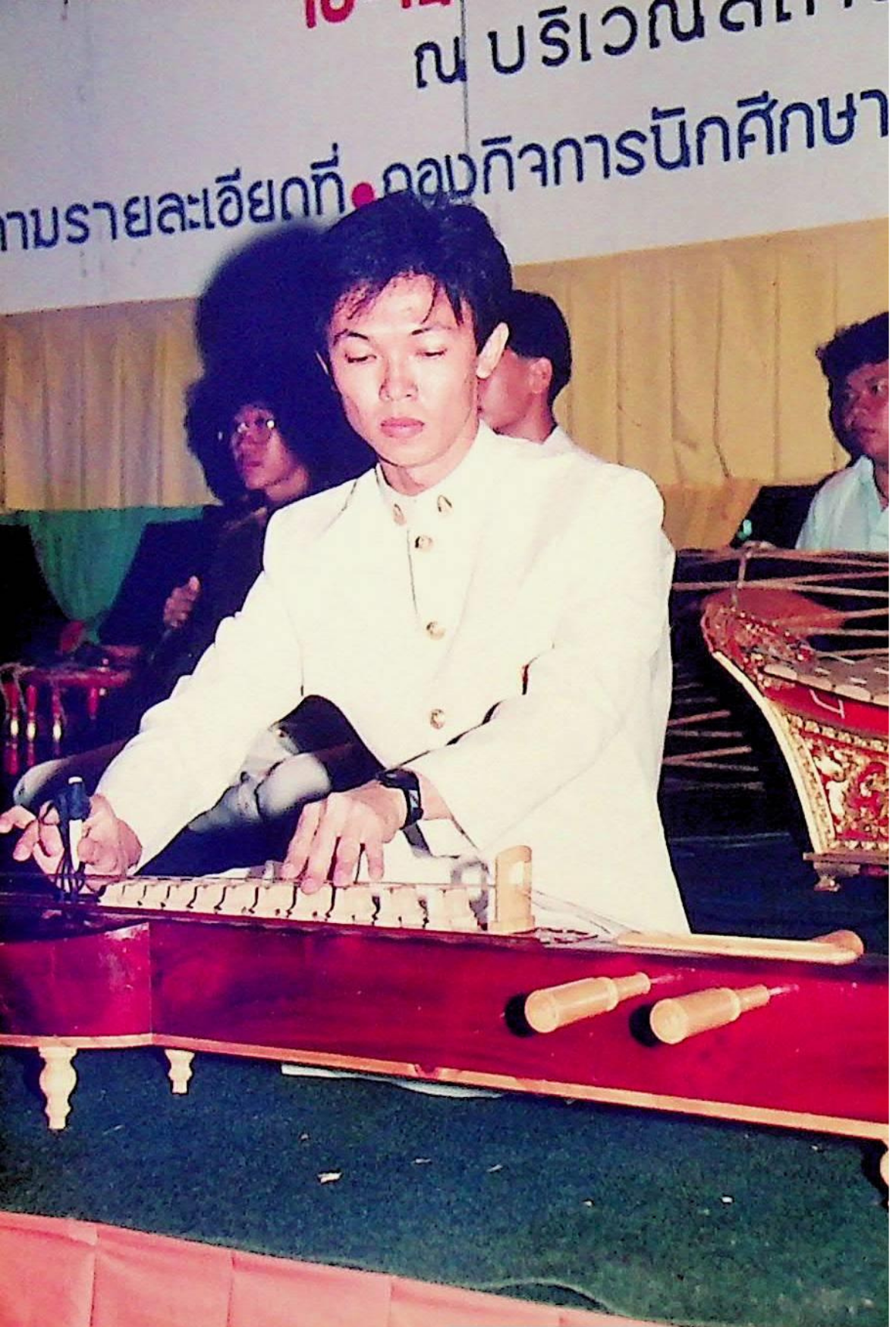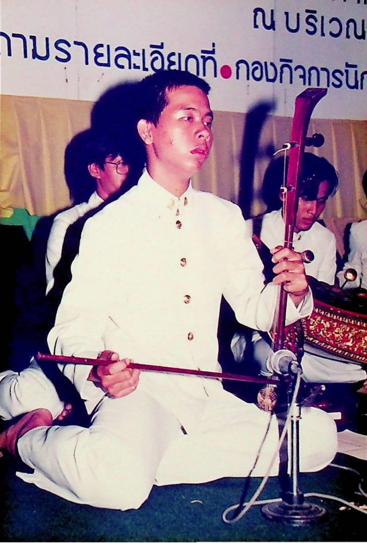 ชมรมดนตรีไทย สถาบันเทคโนโลยีพระจอมเกล้าธนบุรี นำวงดนตรีไทยออกบรรเลง เนื่องในวโรกาสเฉลิมพระชนม์พรรษาครบ 5 รอบ สมเด็จพระนางเจ้าสิริกิติ์ พระบรมราชินีนาถ ณ บริเวณหน้าประตูสถาบัน เพื่อร่วมแสดงความจงรักภักดีและถวายพระพรชัยมงคล ณ หน้าประตูสถาบัน ในวันพุธที่ 12 สิงหาคม 2535 จากภาพถ่ายอัลบั้มที่ 3535