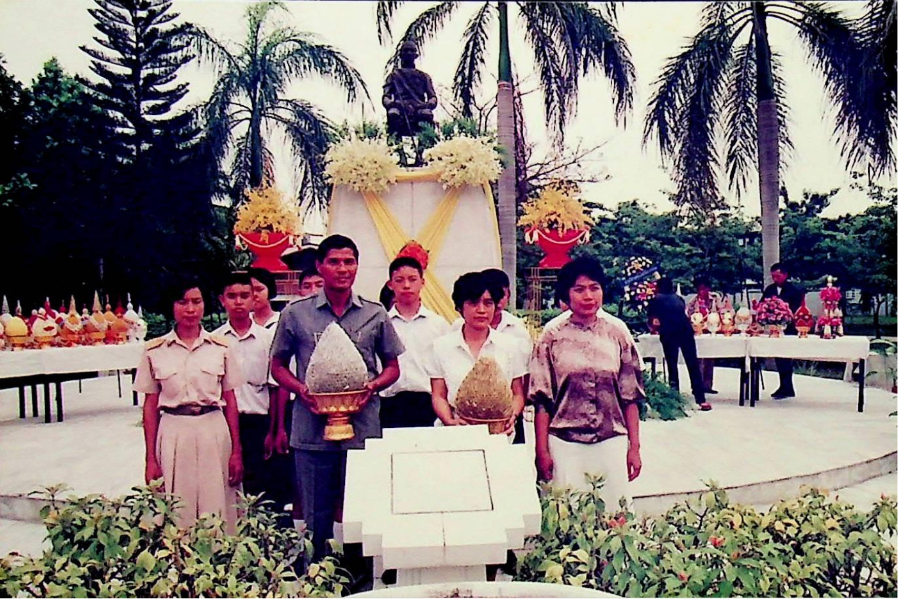 พิธีวางพานพุ่มเพื่อถวายราชสักการะแด่พระบาทสมเด็จพระจอมเกล้าเจ้าอยู่หัว เนื่องในวันวิทยาศาสตร์ไทย วันที่ 18 สิงหาคม พ.ศ. 2535 ณ พระบรมราชานุสาวรีย์พระบาทสมเด็จพระจอมเกล้าเจ้าอยู่หัว ร.4 จากภาพถ่ายอัลบั้มที่ 3535- 3536