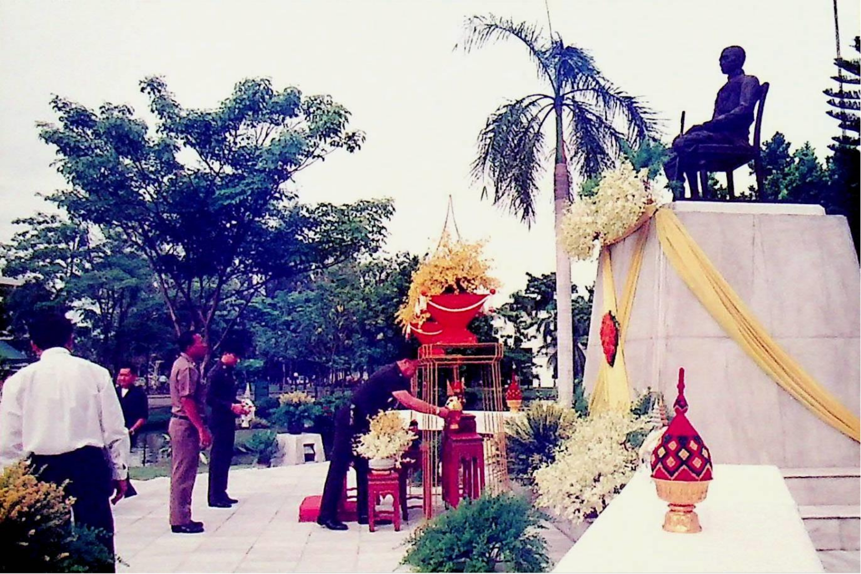 พิธีวางพานพุ่มเพื่อถวายราชสักการะแด่พระบาทสมเด็จพระจอมเกล้าเจ้าอยู่หัว เนื่องในวันวิทยาศาสตร์ไทย วันที่ 18 สิงหาคม พ.ศ. 2535 ณ พระบรมราชานุสาวรีย์พระบาทสมเด็จพระจอมเกล้าเจ้าอยู่หัว ร.4