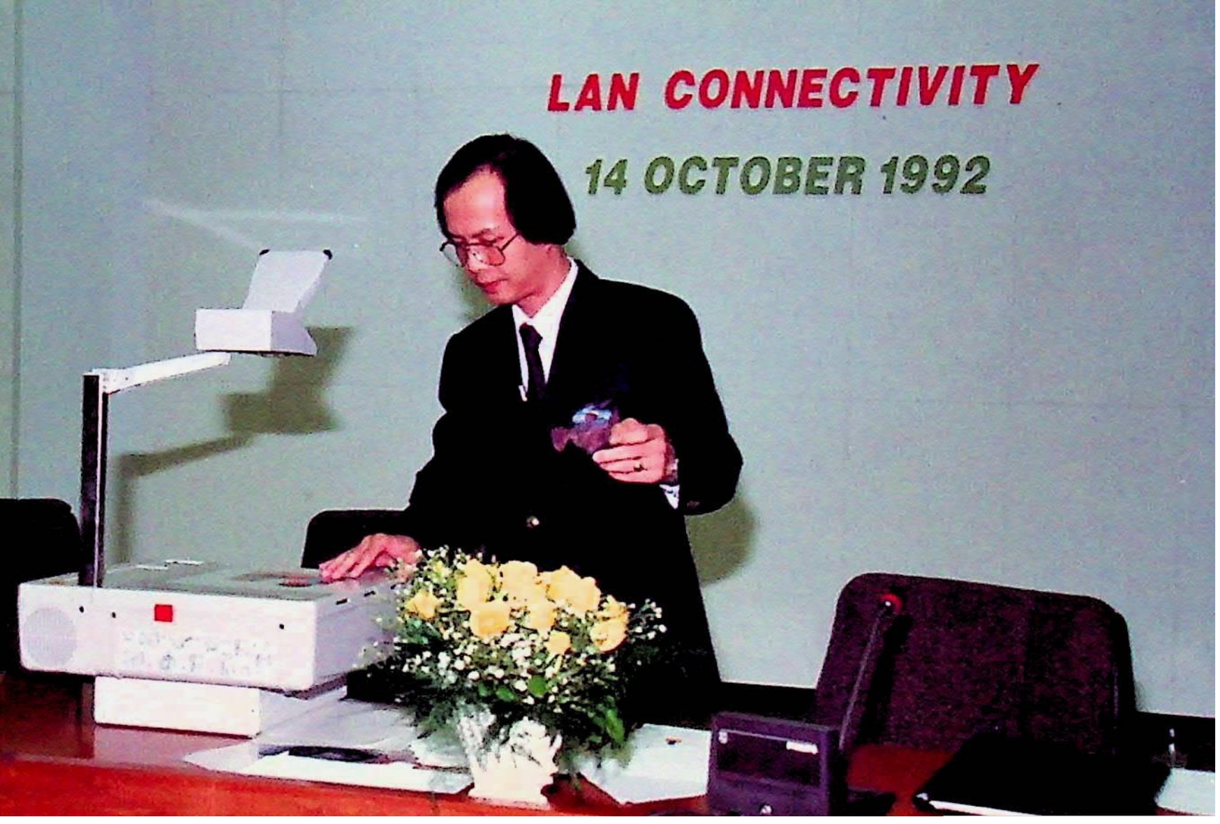 สำนักคอมพิวเตอร์ สถาบันเทคโนโลยีพระจอมเกล้าธนบุรี จัดสัมมนาเรื่อง LAN Connectivity ณ ห้องประชุมจำรัส ฉายะพงศ์ ในวันพุธที่ 14 ตุลาคม 2535 จากภาพถ่ายอัลบั้มที่ 3548 - 3549