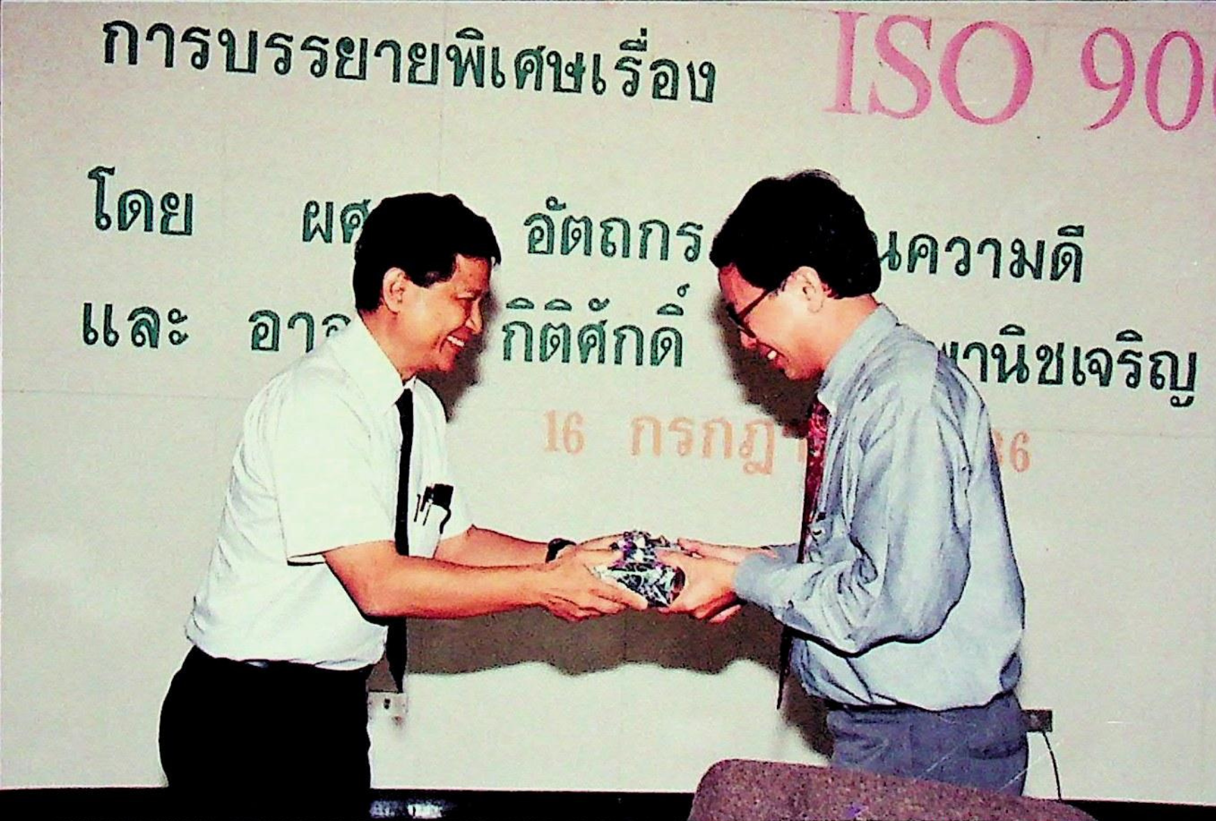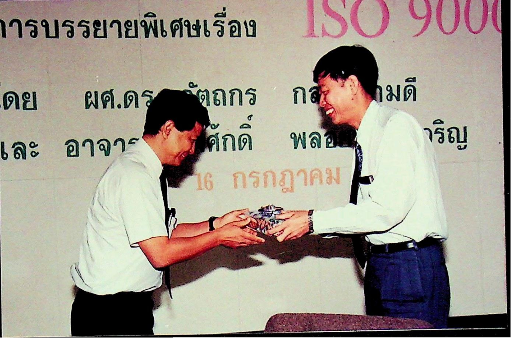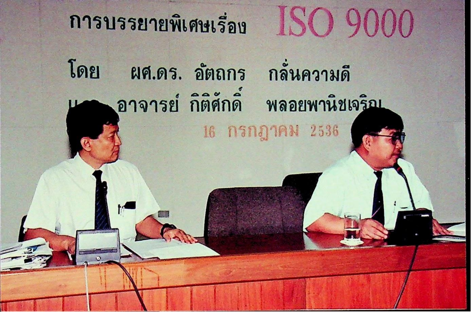 สถาบันเทคโนโลยีพระจอมเกล้าธนบุรี จัดบรรยายพิเศษ เรื่อง ISO 9000 การบริหารงานของระบบมหาวิทยาลัยในกำกับรัฐบาลในอนาคตให้เกิดประสิทธิภาพ และประสิทธิผล โดยมี ผศ.ดร.อัตถกร กลั่นความดี และอาจารย์กิติศักดิ์ พลอยพานิชเจริญ เป็นวิทยากรบรรยาย ณ ห้องประชุมจํารัส ฉายะพงศ์ ในวันศุกร์ที่ 16 กรกฎาคม 2536 จากภาพถ่ายอัลบั้มที่ 3638