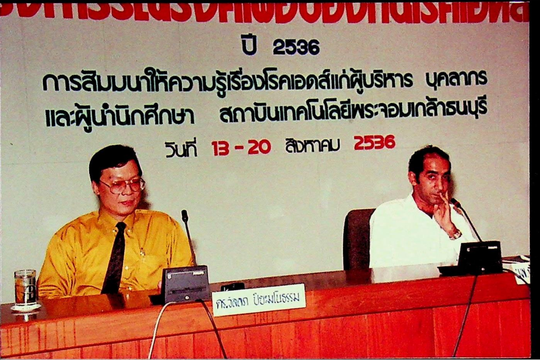 รศ.ดร.หริส สูตะบุตร อธิการบดี เป็นประธานเปิดการสัมมนาโครงการรณรงค์ เพื่อป้องกันโรคเอดส์ ซึ่งสถาบันเทคโนโลยีพระจอมเกล้าธนบุรี จัดขึ้นระหว่างวันที่ 13-20 สิงหาคม 2536