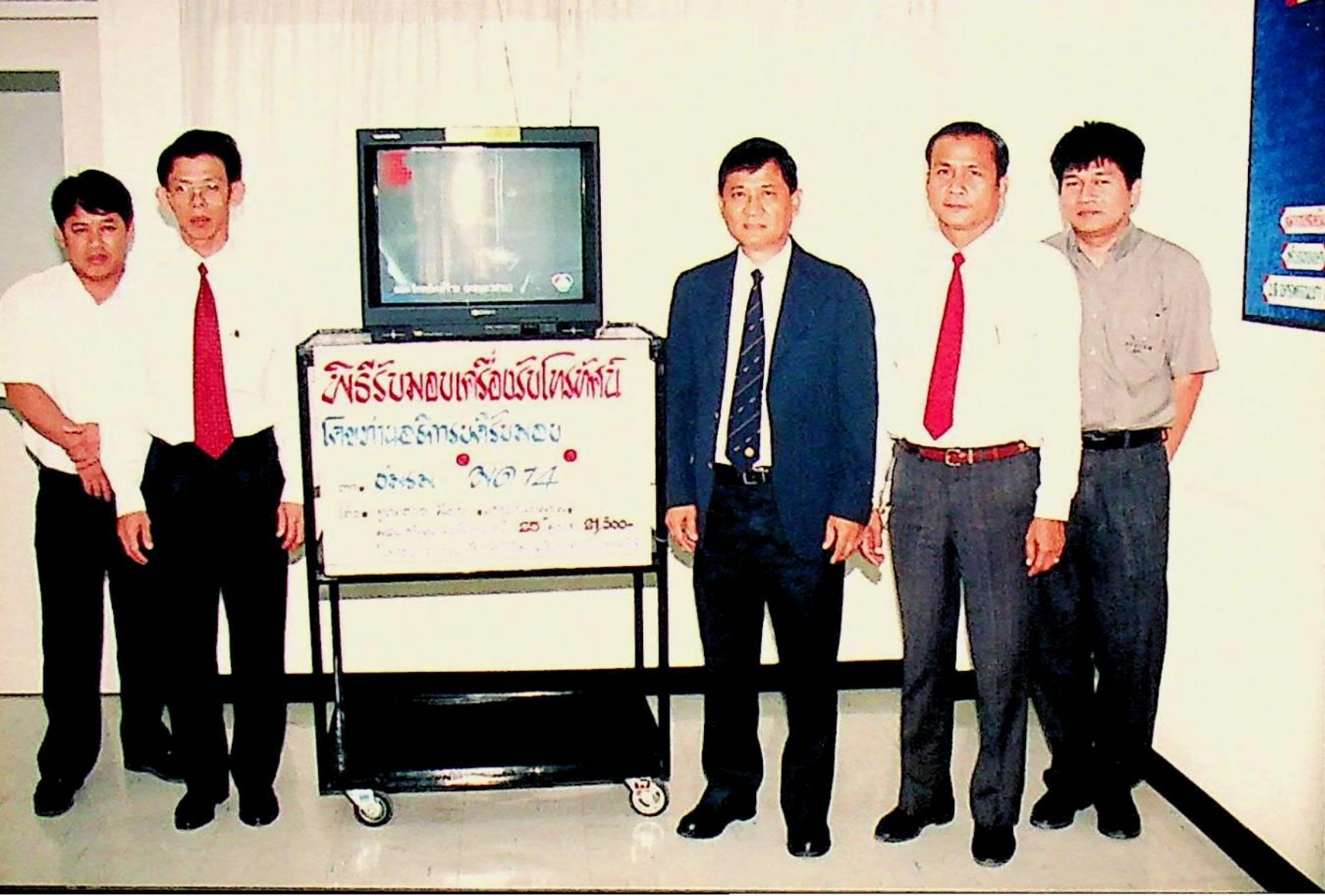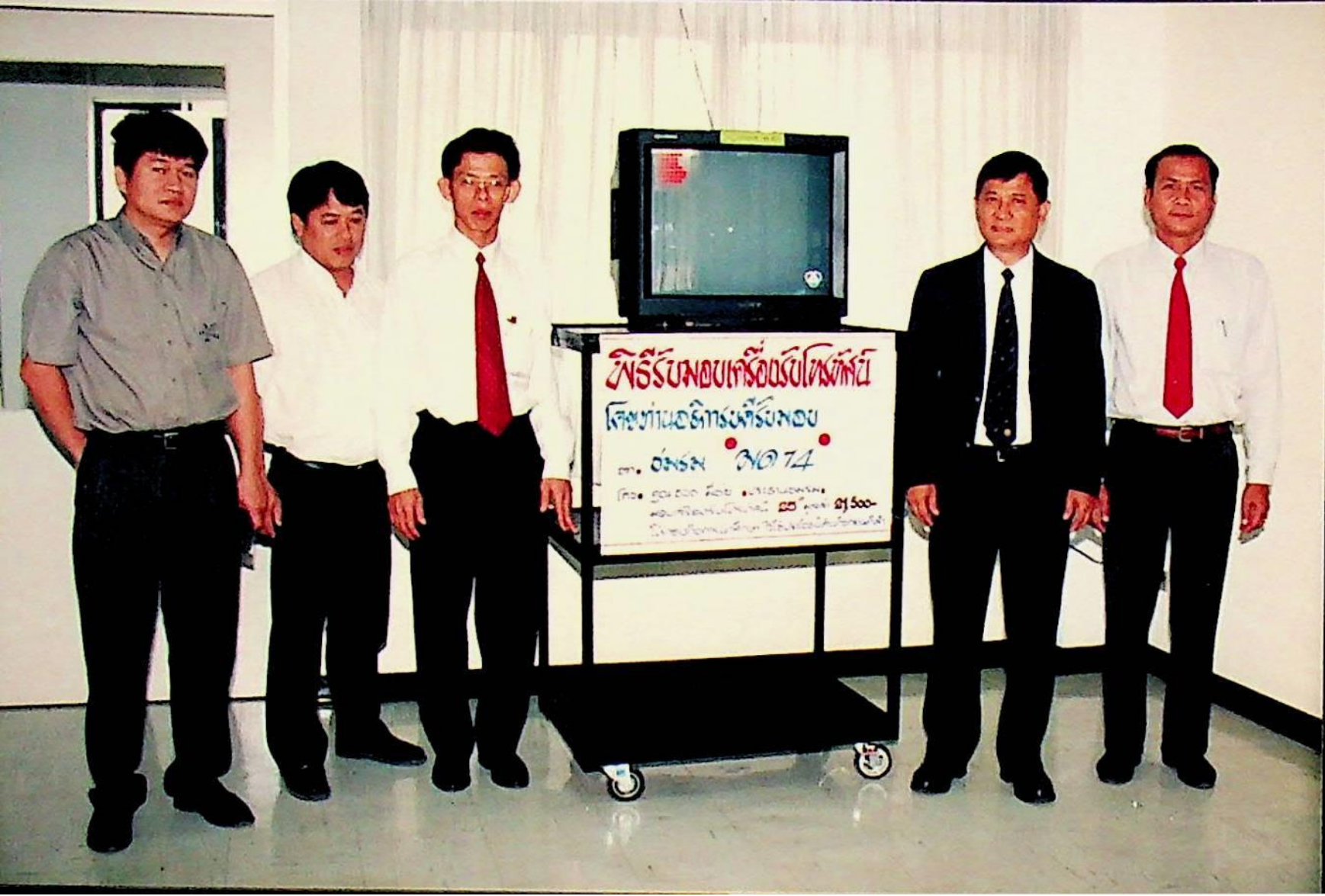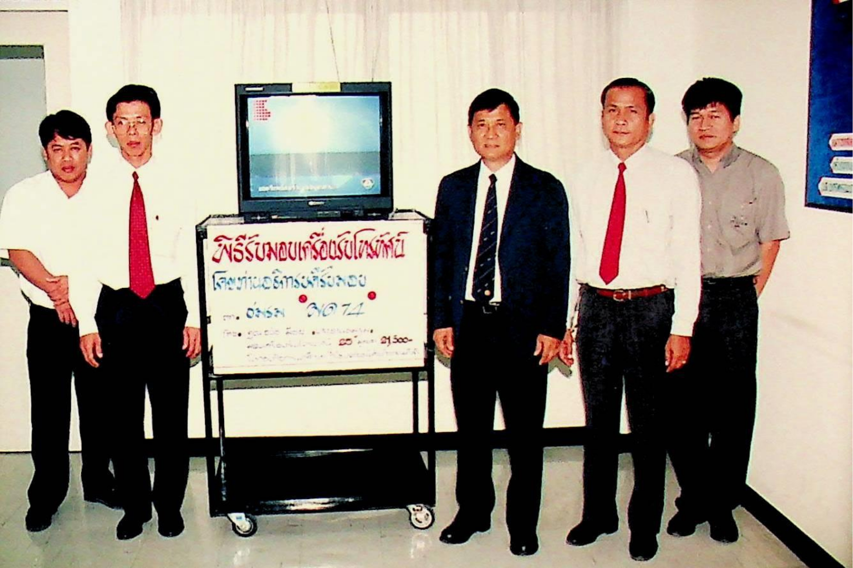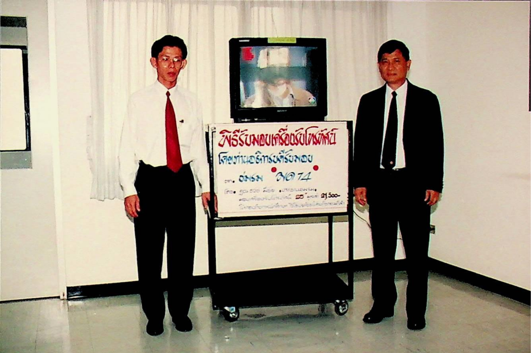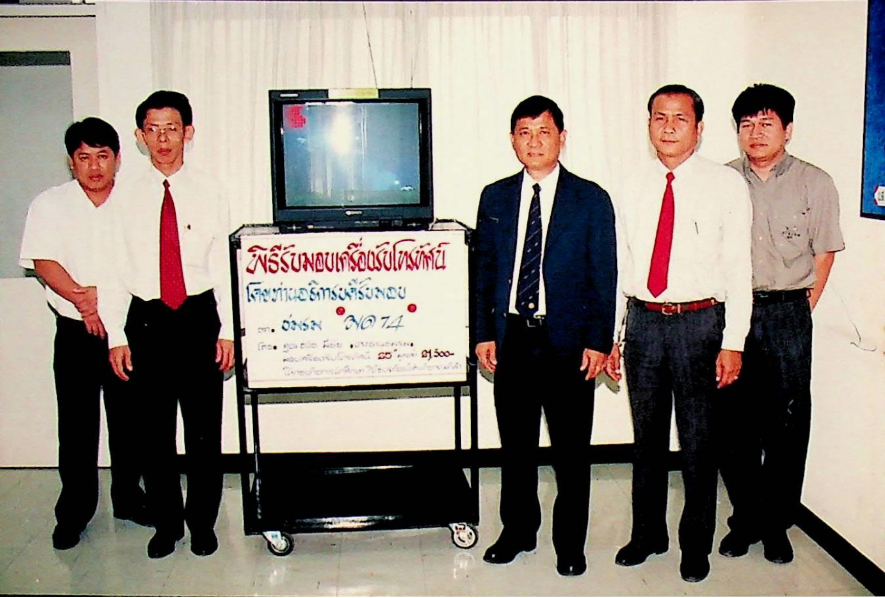 รศ.ดร.หริส สูตะบุตร อธิการบดี เป็นประธานรับมอบโทรทัศน์สี โซนี่ 25 จำนวน 1 เครื่อง จากนายธวัช มีชัย ประธานชมรมมด ซึ่งมอบให้กับกองกิจการนักศึกษา เพื่อใช้ในกิจกรรมนักศึกษา ณ ห้องรองอธิการบดีฝ่ายกิจการนักศึกษา จากภาพถ่ายอัลบั้มที่ 372