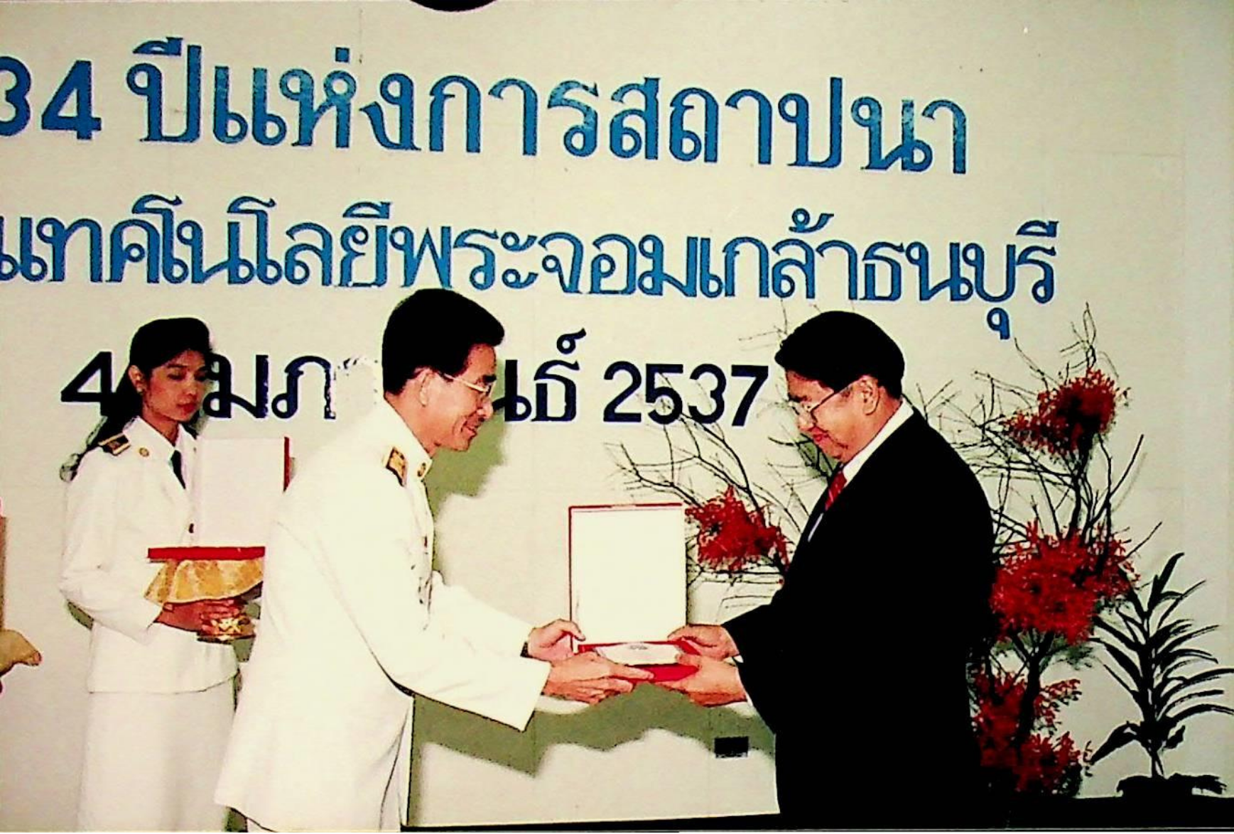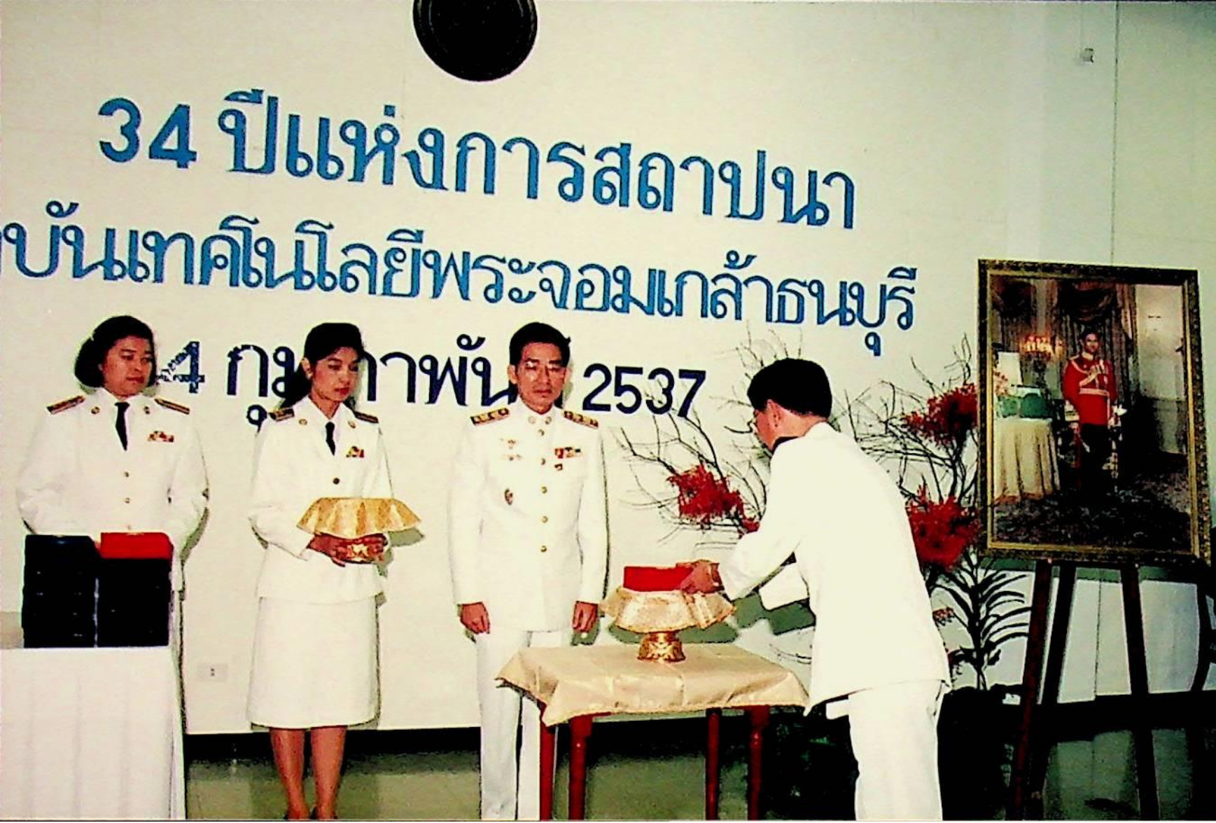 วันคล้ายวันสถาปนา สถาบันเทคโนโลยีพระจอมเกล้าธนบุรี จัดให้มีพิธีทางศาสนา, พิธีมอบเครื่องราชอิสริยาภรณ์, มอบโล่แก่ผู้มีอุปการะคุณ ณ บริเวณหน้าสถาบัน และห้องจำรัส ฉายะพงศ์ ในวันศุกร์ที 4 กุมภาพันธ์ 2537 จากภาพถ่ายอัลบั้มที่ 378, 379, 3710 และ 3711