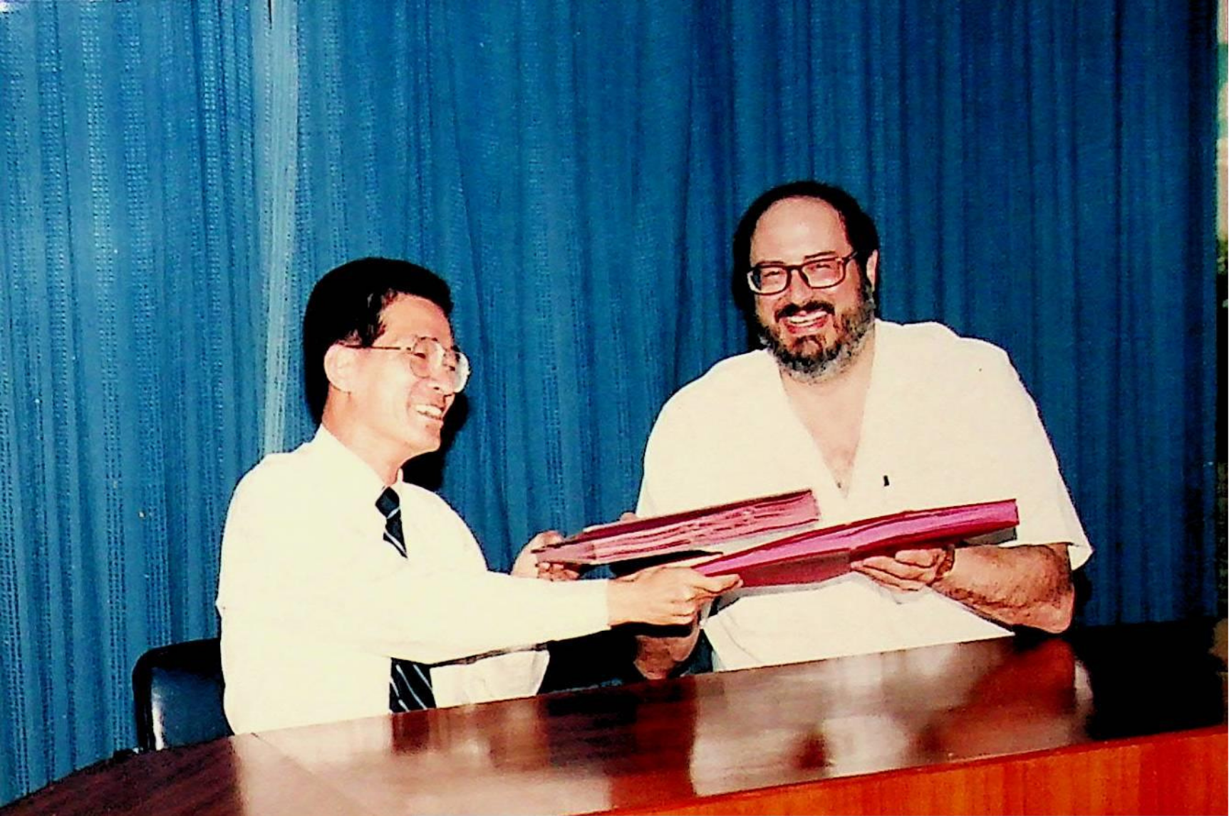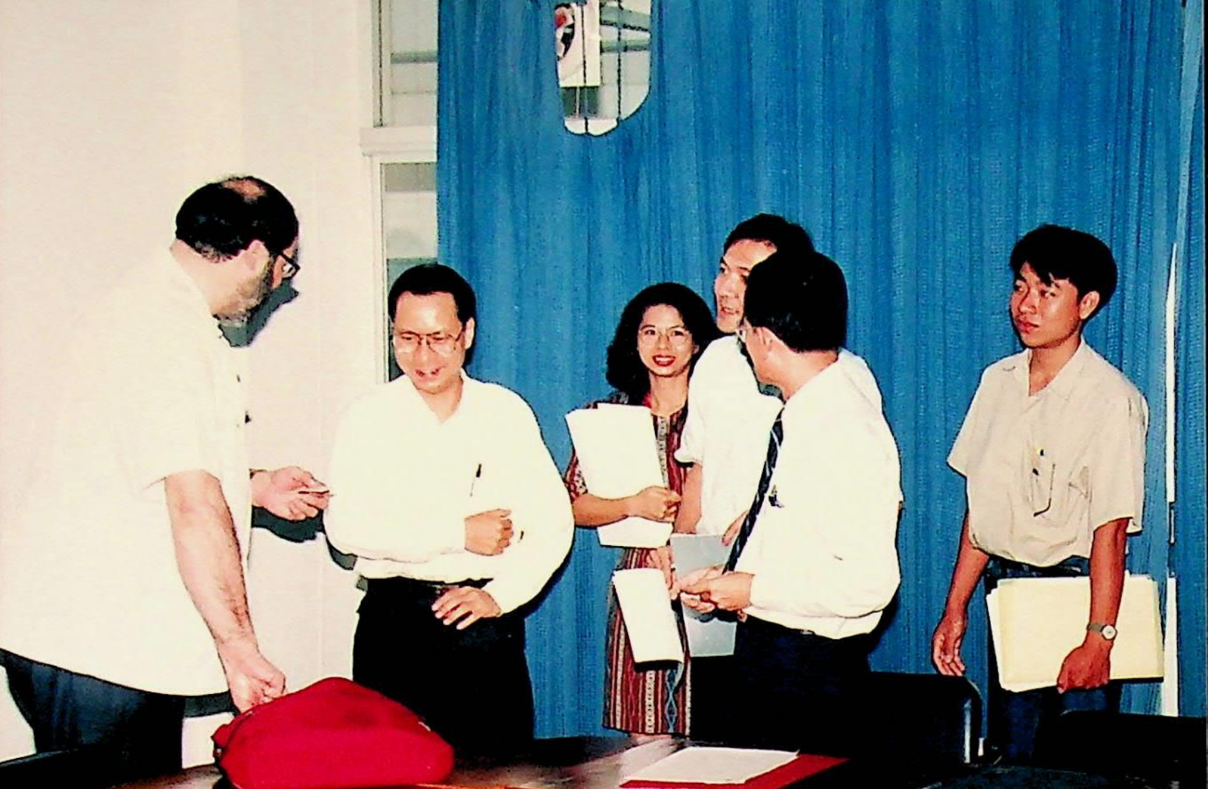 รศ.ดร.ไกรวุฒิ เกียรติโกมล รองอธิการบดีฝ่ายวิชาการ ร่วมลงนามในสัญญาความร่วมมือด้านพัฒนาวิชาการและบุคลากรกับ University of Regina และลงนามเห็นชอบในการร่างโครงการความร่วมมือในการพัฒนาทรัพยากรมนุษย์ ภายใต้การสนับสนุนของ CIDA ณ ห้องประชุมภาควิชาวิศวกรรมเคมี ในวันอังคารที่ 22 กุมภาพันธ์ 2537 จากภาพถ่ายอัลบั้มที่ 3716