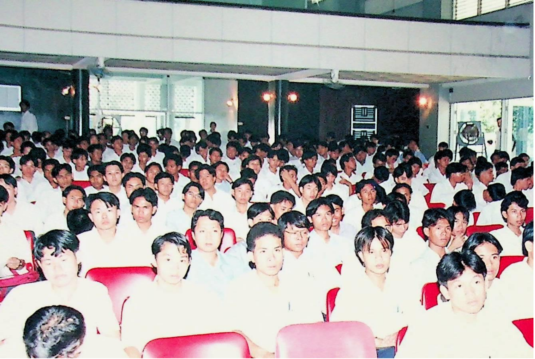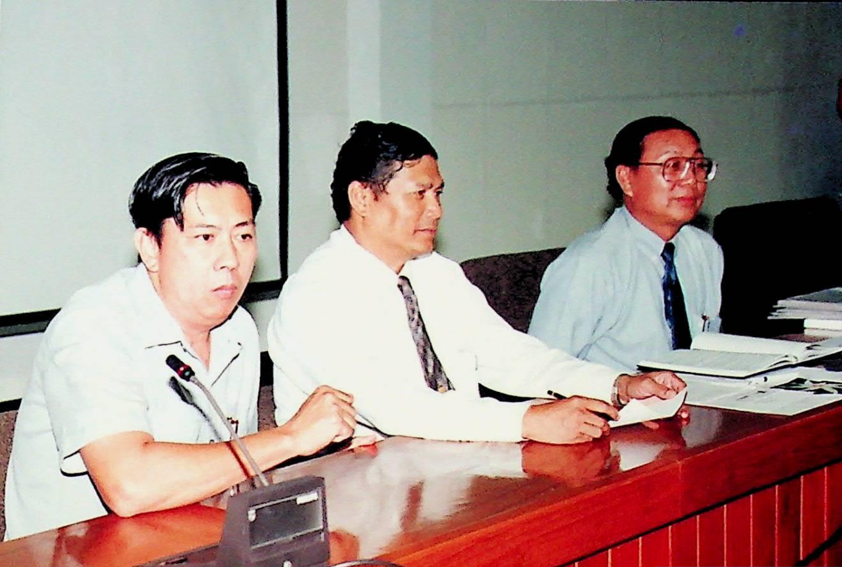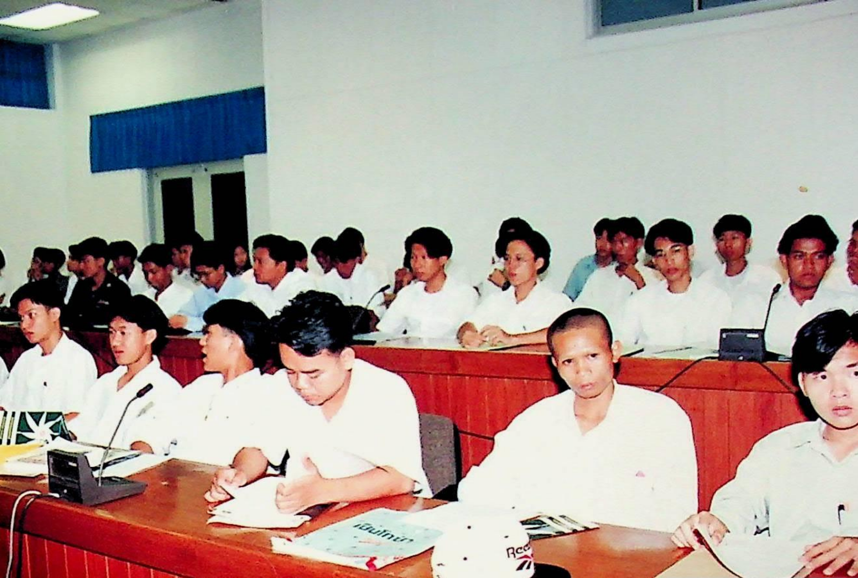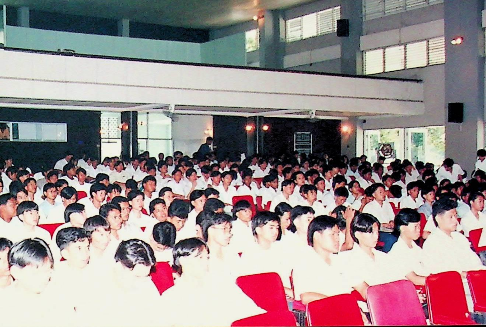 รศ.ดร.ไกรวุฒิ เกียรติโกมล รองอธิการบดีฝ่ายวิชาการ และอาจารย์วิสุทธิ ดามาพงษ์ รองอธิการบดีฝ่ายกิจการนักศึกษา ปฐมนิเทศนักศึกษาระดับ ปวส. เข้าศึกษาต่อระดับปริญญาตรีของคณะวิศวกรรมศาสตร์ และคณะครุศาสตร์อุตสาหกรรม ณ หอประชุมใหญ่,ห้องประชุมจํารัส,ห้องประชุมคณะวิทยาศาสตร์ ในวันจันทร์ที่ 18 เมษายน 2537 จากภาพถ่ายอัลบั้มที่ 3728
