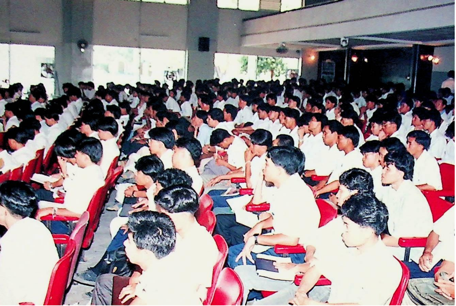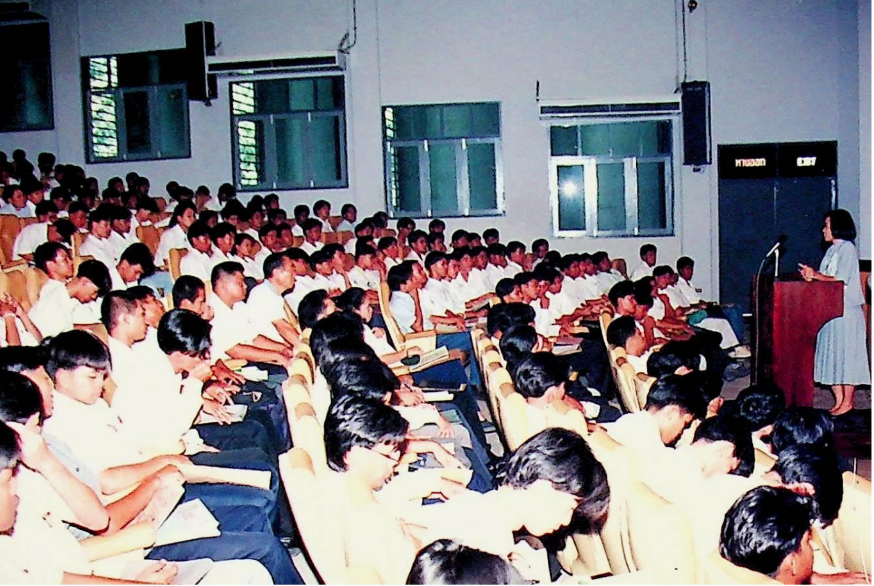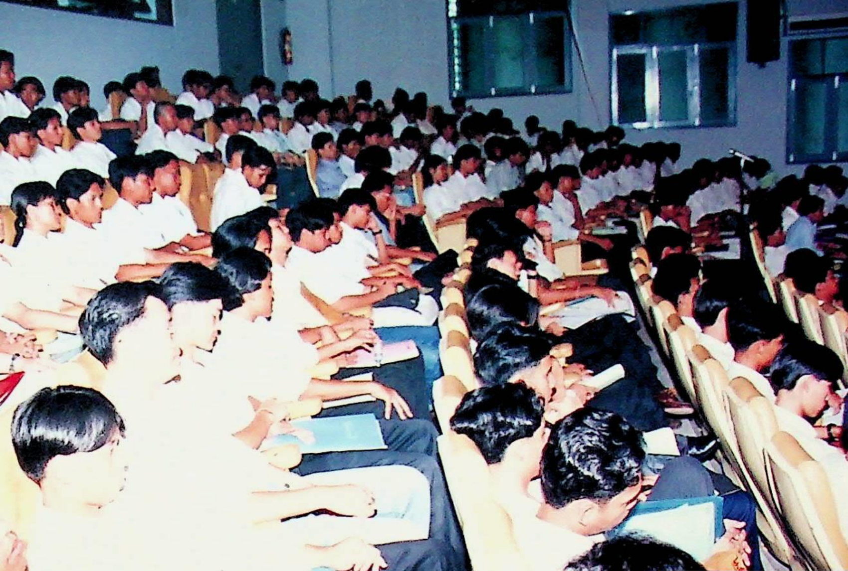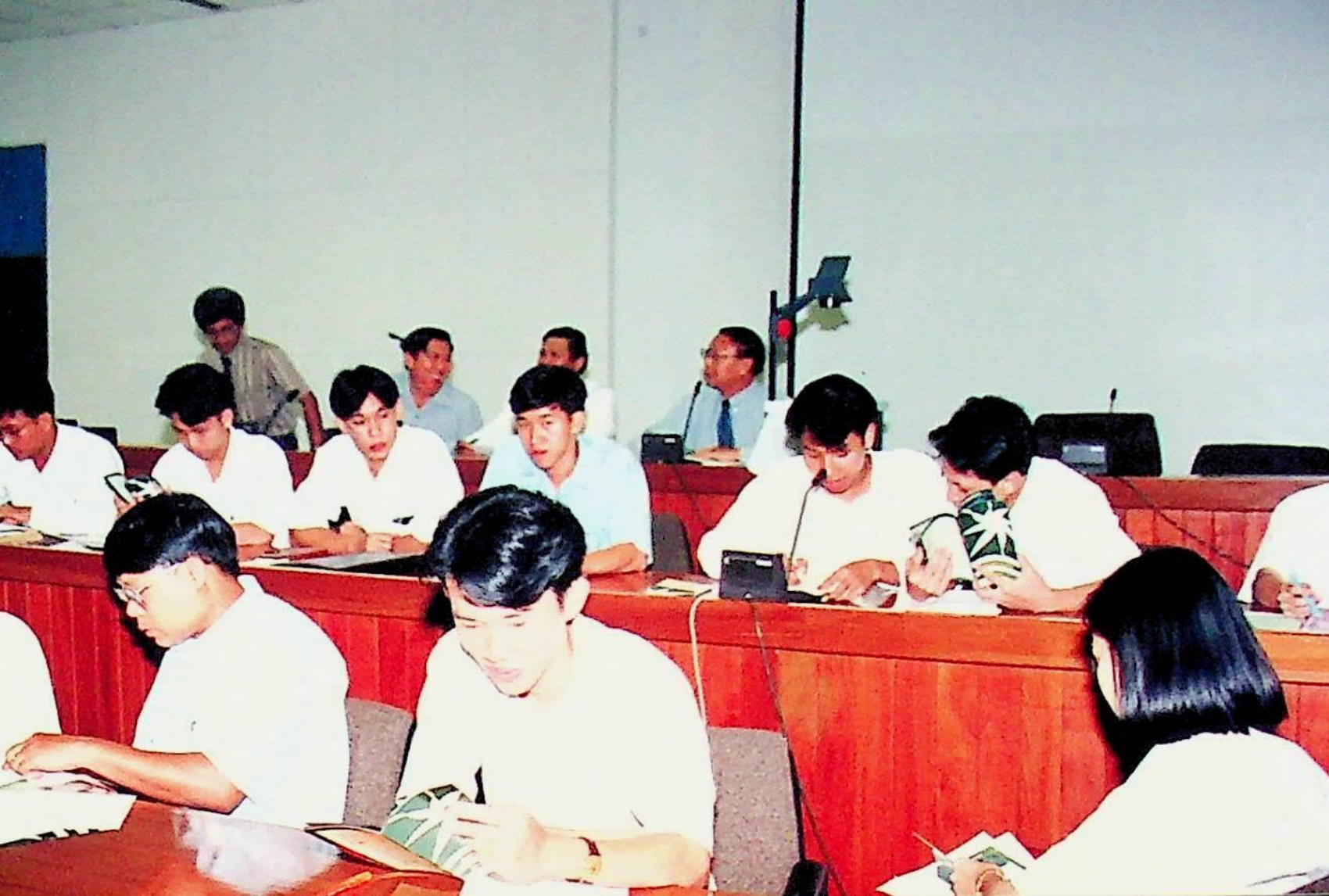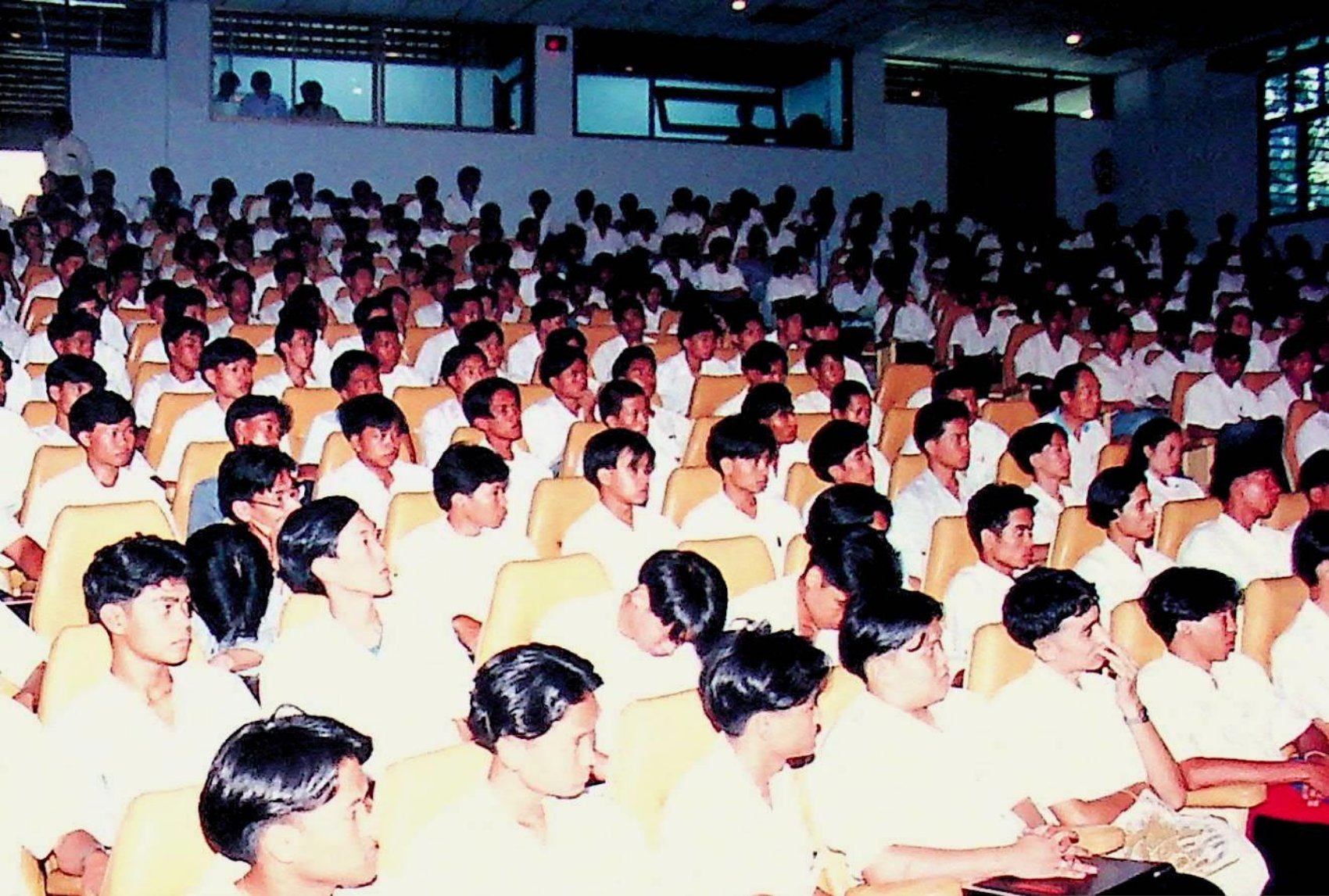 รศ.ดร.ไกรวุฒิ เกียรติโกมล รองอธิการบดีฝ่ายวิชาการ และอาจารย์วิสุทธิ ดามาพงษ์ รองอธิการบดีฝ่ายกิจการนักศึกษา ปฐมนิเทศนักศึกษาระดับ ปวส. เข้าศึกษาต่อระดับปริญญาตรีของคณะวิศวกรรมศาสตร์ และคณะครุศาสตร์อุตสาหกรรม ณ หอประชุมใหญ่,ห้องประชุมจํารัส,ห้องประชุมคณะวิทยาศาสตร์ ในวันจันทร์ที่ 18 เมษายน 2537 จากภาพถ่ายอัลบั้มที่ 3728