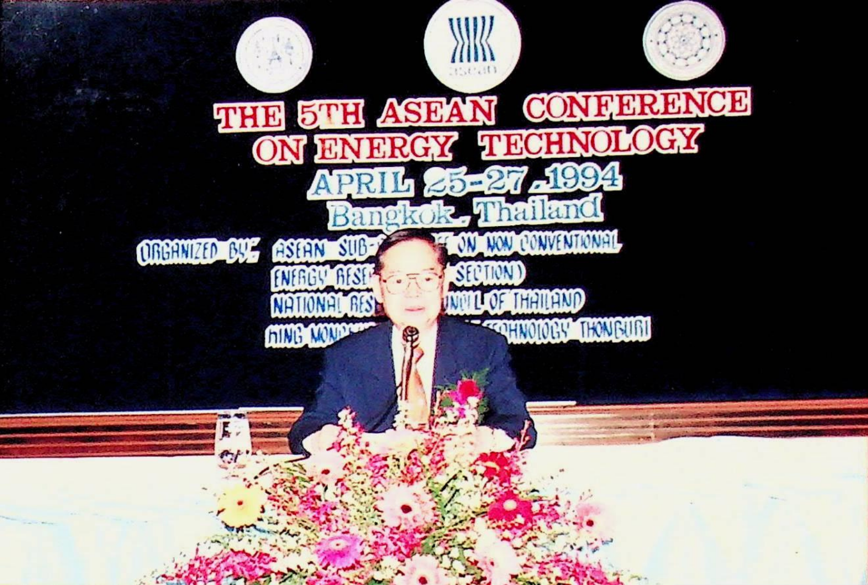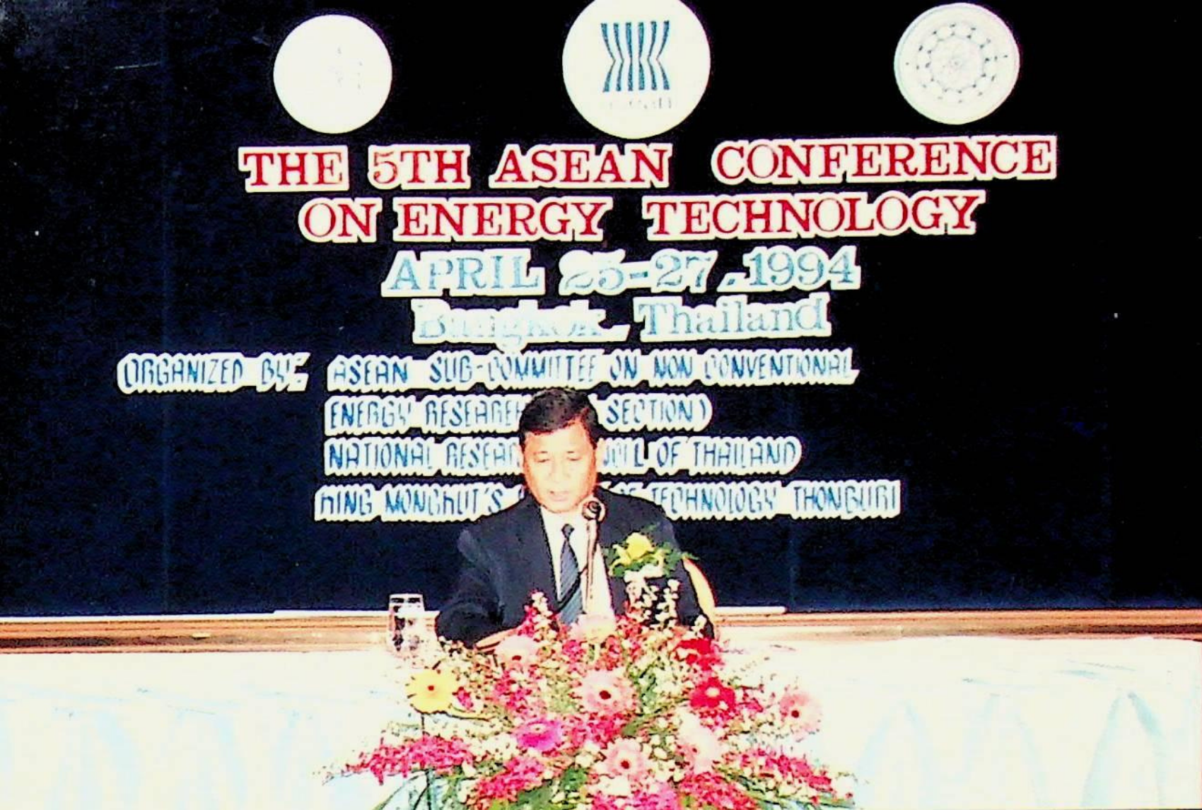 รศ.ดร.หริส สูตะบุตร อธิการบดี เป็นประธานเปิดการประชุมนานาชาติ The 5th ASEAN Conference on Energy Technology จัดโดยสถาบันเทคโนโลยีพระจอมเกล้าธนบุรี ร่วมกับคณะกรรมการวิจัยพลังงานนอกแบบแห่งอาเซียน และสำนักงานคณะกรรมการวิจัยแห่งชาติ ระหว่างวันที่ 25-27 เมษายน 2537 ณ ห้องธาราทิพย์ โรงแรมธารา จากภาพถ่ายอัลบั้มที่ 3729