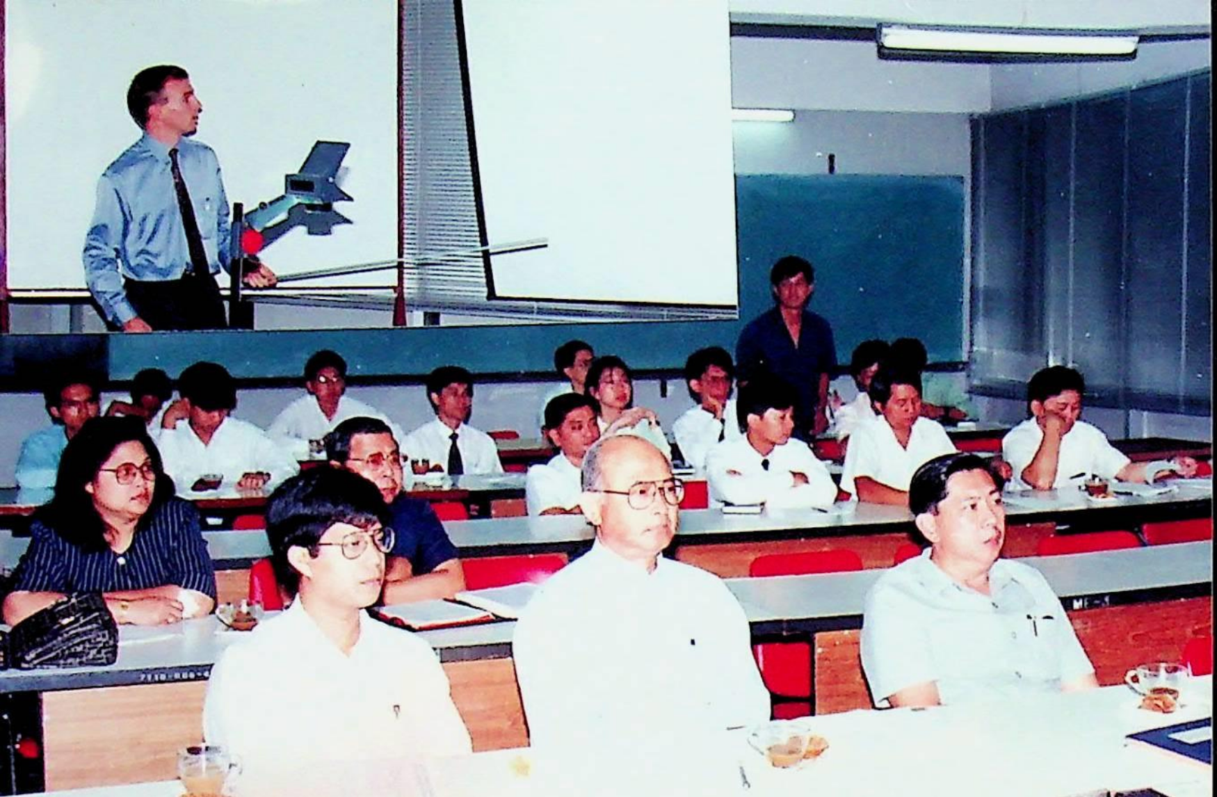 ภาควิชาวิศวกรรมเครื่องกล จัดให้มีบรรยายพิเศษเรื่อง Orbital SEFIS Technology for Reducing Motorcycle Emissions โดย Mr. Ken Johnson จาก Orbital Engine Corporation ณ ภาควิชาวิศวกรรมเครืองกล ในวันพุธที่ 25 พฤษภาคม 2537 จากภาพถ่ายอัลบั้มที่ 3737