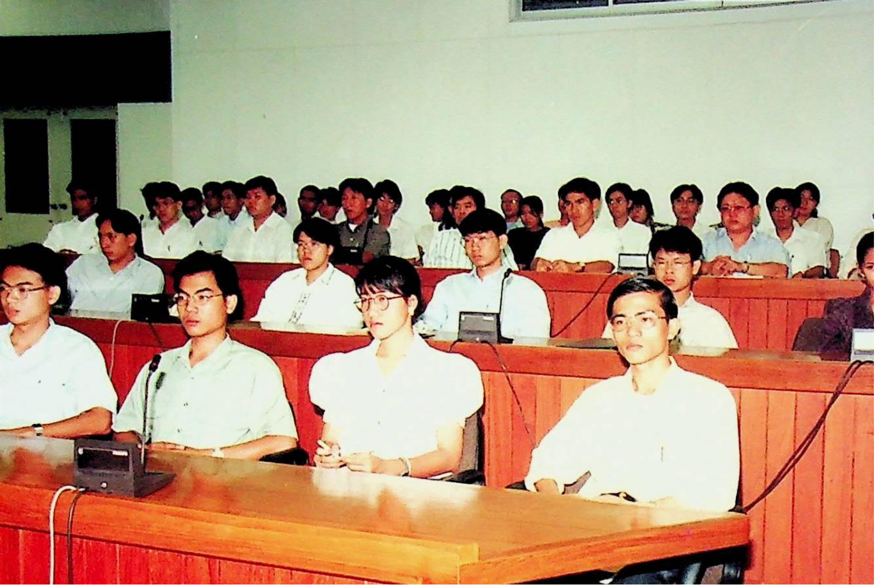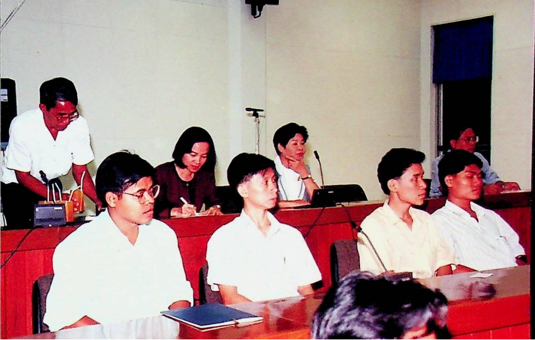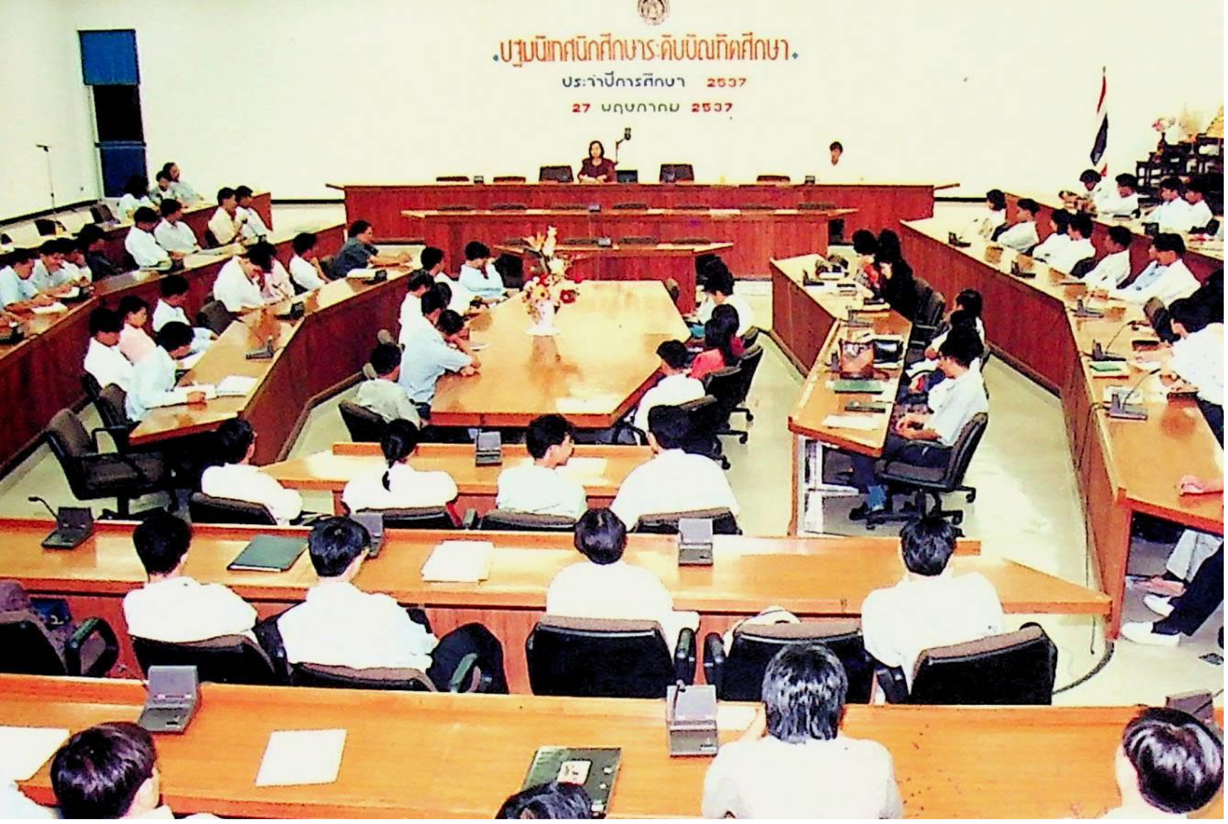 รศ.ดร.ไกรวุฒิ เกียรติโกมล รองอธิการบดีฝ่ายวิชาการ ปฐมนิเทศนักศึกษาระดับบัณฑิตศึกษา ปีการศึกษา 2537 ณ ห้องประชุมจํารัส ฉายะพงศ์ ในวันศุกร์ที่ 27 พฤษภาคม 2537 จากภาพถ่ายอัลบั้มที่ 3738