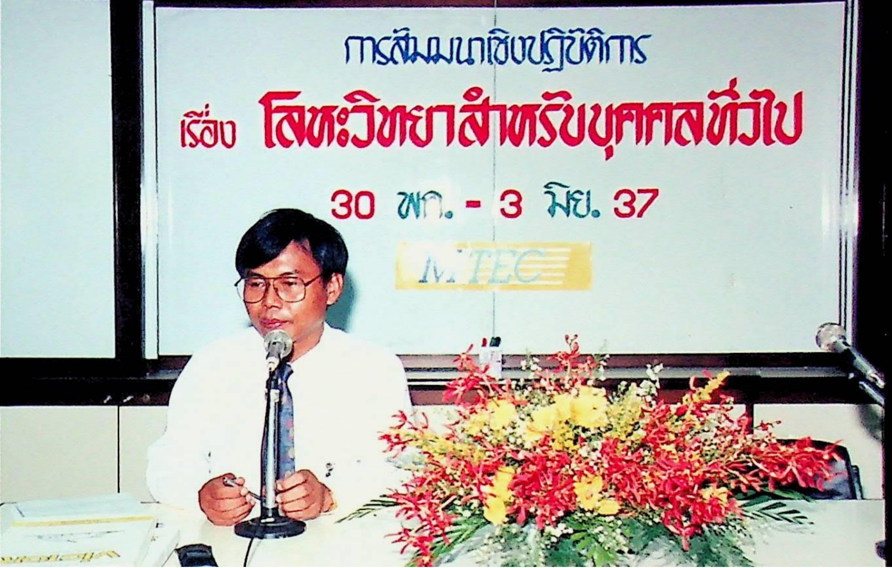 คณะพลังงานและวัสดุ ร่วมกับศูนย์เทคโนโลยีโลหะและวัสดุแห่งชาติ จัดสัมมนาเชิงปฏิบัติการเรื่อง โลหะวิทยาสำหรับบุคคลทั่วไป ระหว่างวันที่ 30 พ.ค. - 1 มิ.ย. 2537 ณ คณะพลังงานและวัสดุ จากภาพถ่ายอัลบั้มที่ 3738