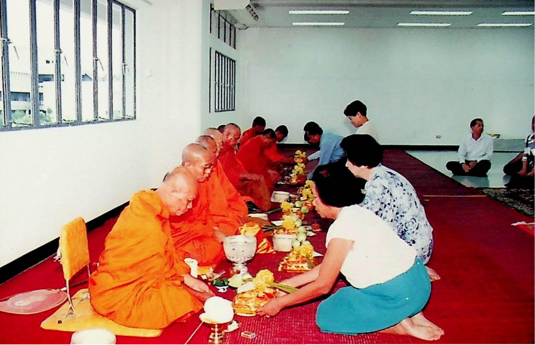 ภาควิชาภาษาและสังคม จัดพิธีทางศาสนา เนื่องในโอกาสย้ายที่ทำการของภาควิชา ไปอยู่อาคารหลังใหม่ ณ ภาควิชาภาษาและสังคม ในวันพฤหัสบดีที่ 2 มิถุนายน 2537 จากภาพถ่ายอัลบั้มที่ 3740