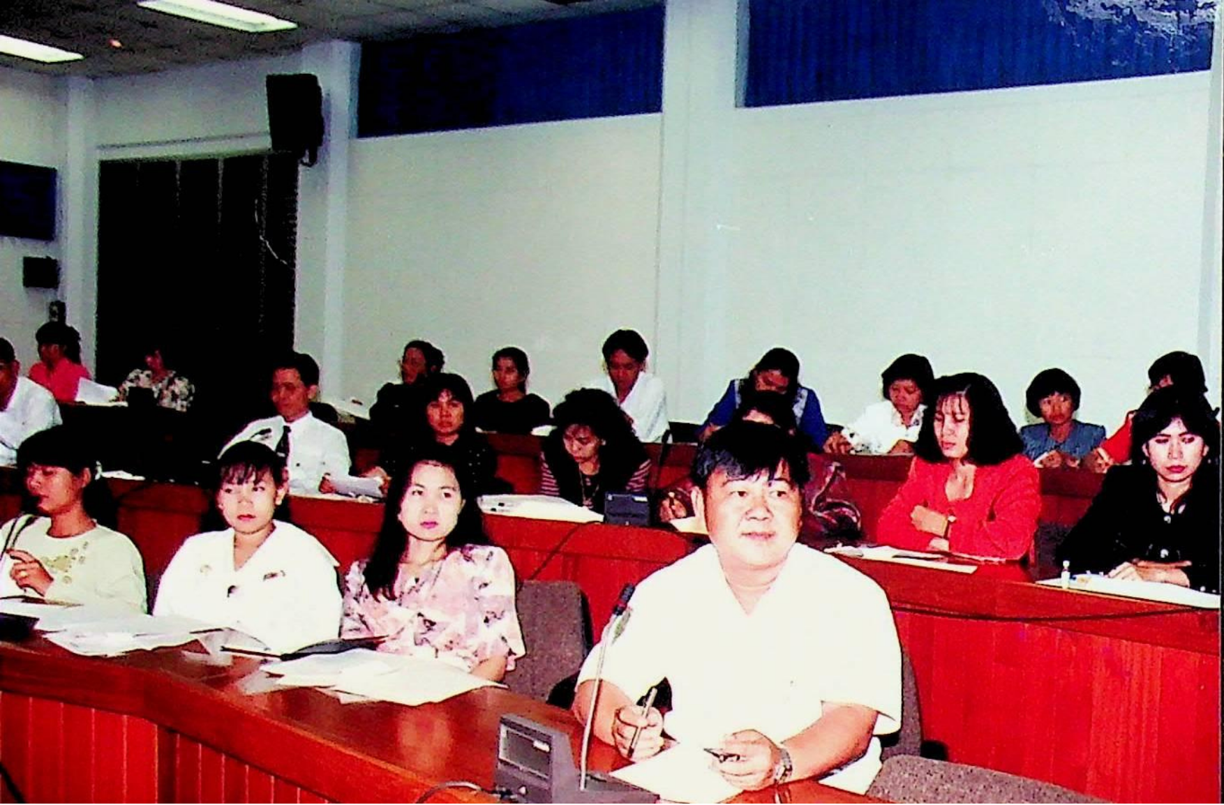 สภาคณาจารย์ สถาบันเทคโนโลยีพระจอมเกล้าธนบุรี จัดเสวนาเรื่อง การเปลี่ยนสภาพเป็นพนักงานมหาวิทยาลัยในกำกับรัฐบาล ณ ห้องประชุมจํารัส ฉายะพงศ์ ในวันพฤหัสบดีที่ 30 มิถุนายน 2537 จากภาพถ่ายอัลบั้มที่ 3746