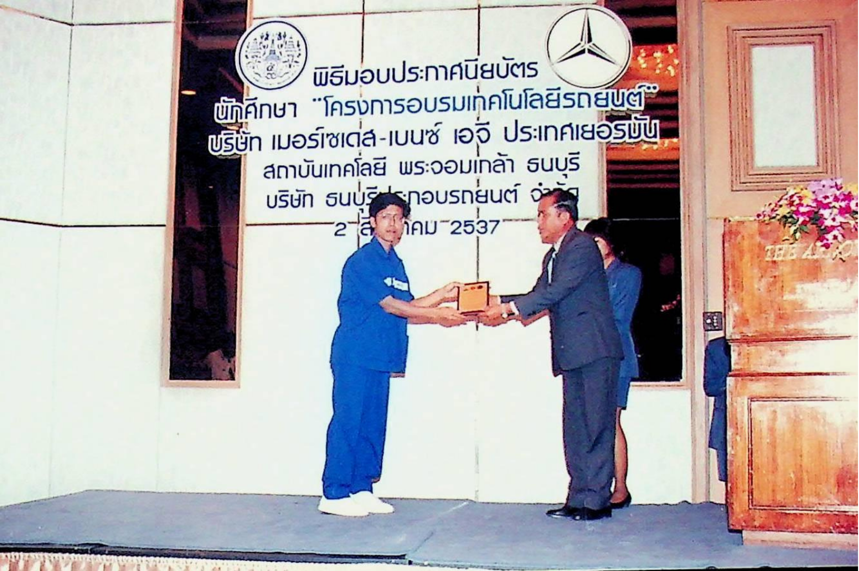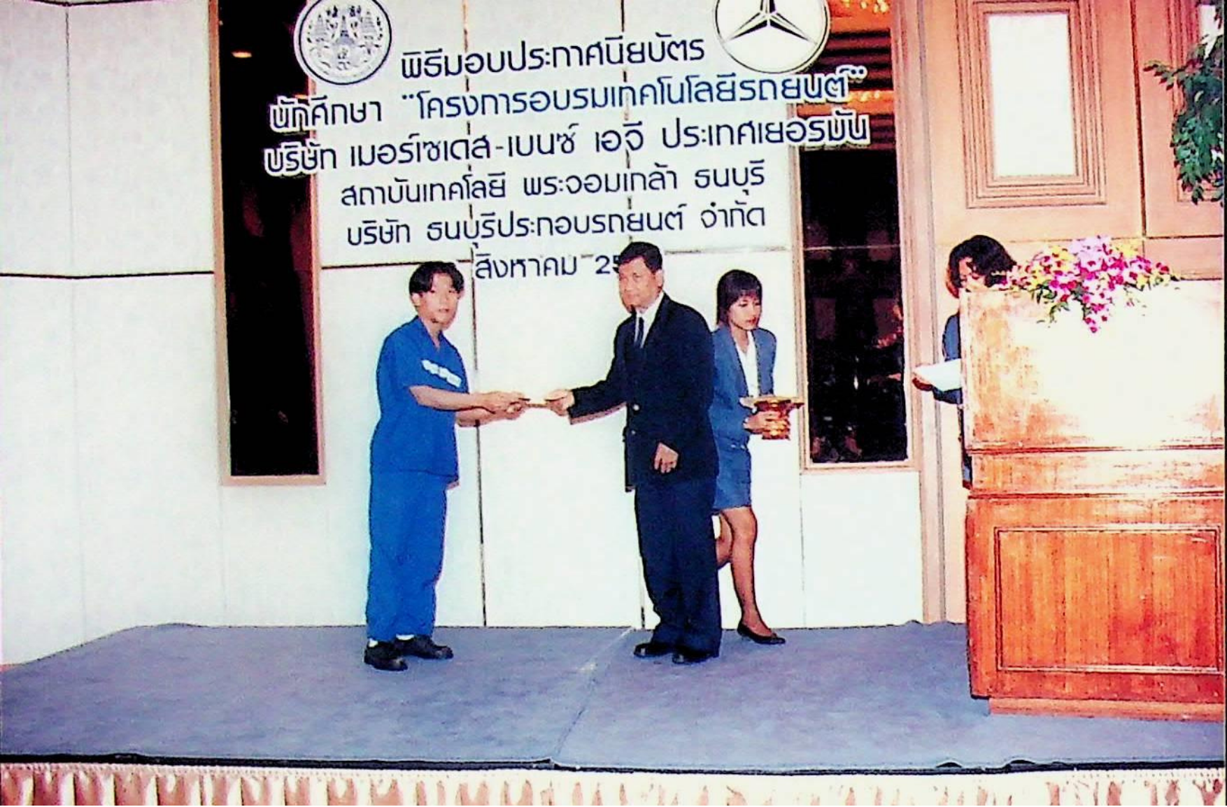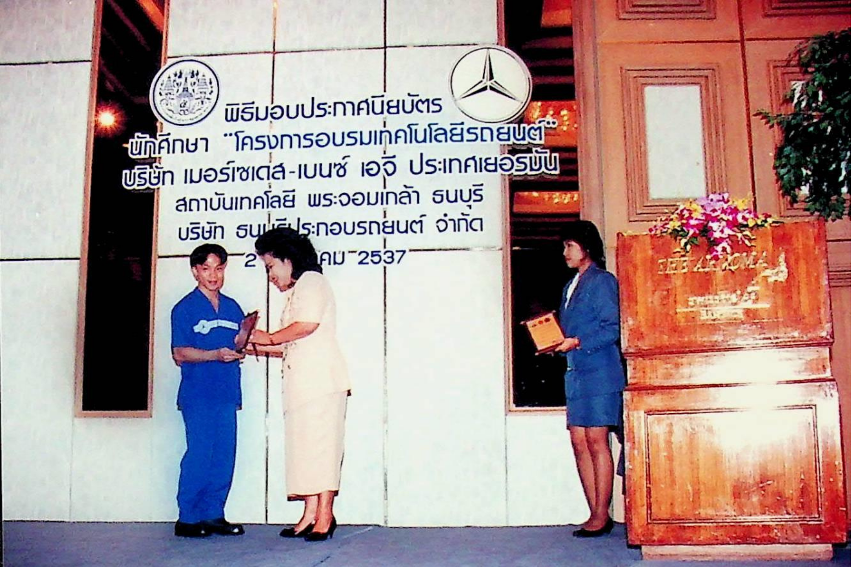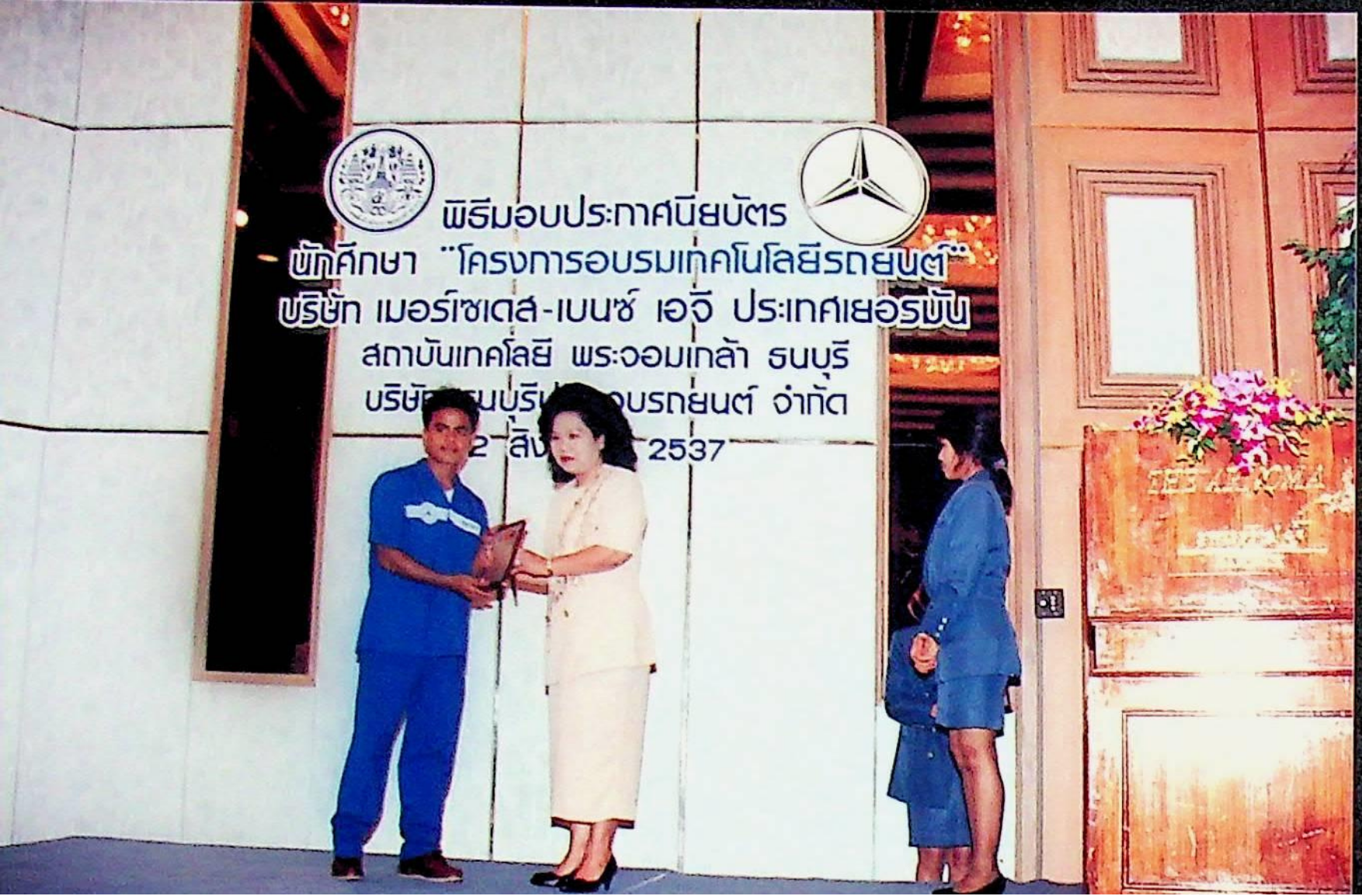 รศ.ดร.หริส สูตะบุตร อธิการบดี เป็นประธานแจกประกาศนียบัตร นักศึกษาหลักสูตรโครงการอบรมเทคโนโลยีรถยนต์ (ศูนย์เบนซ์)