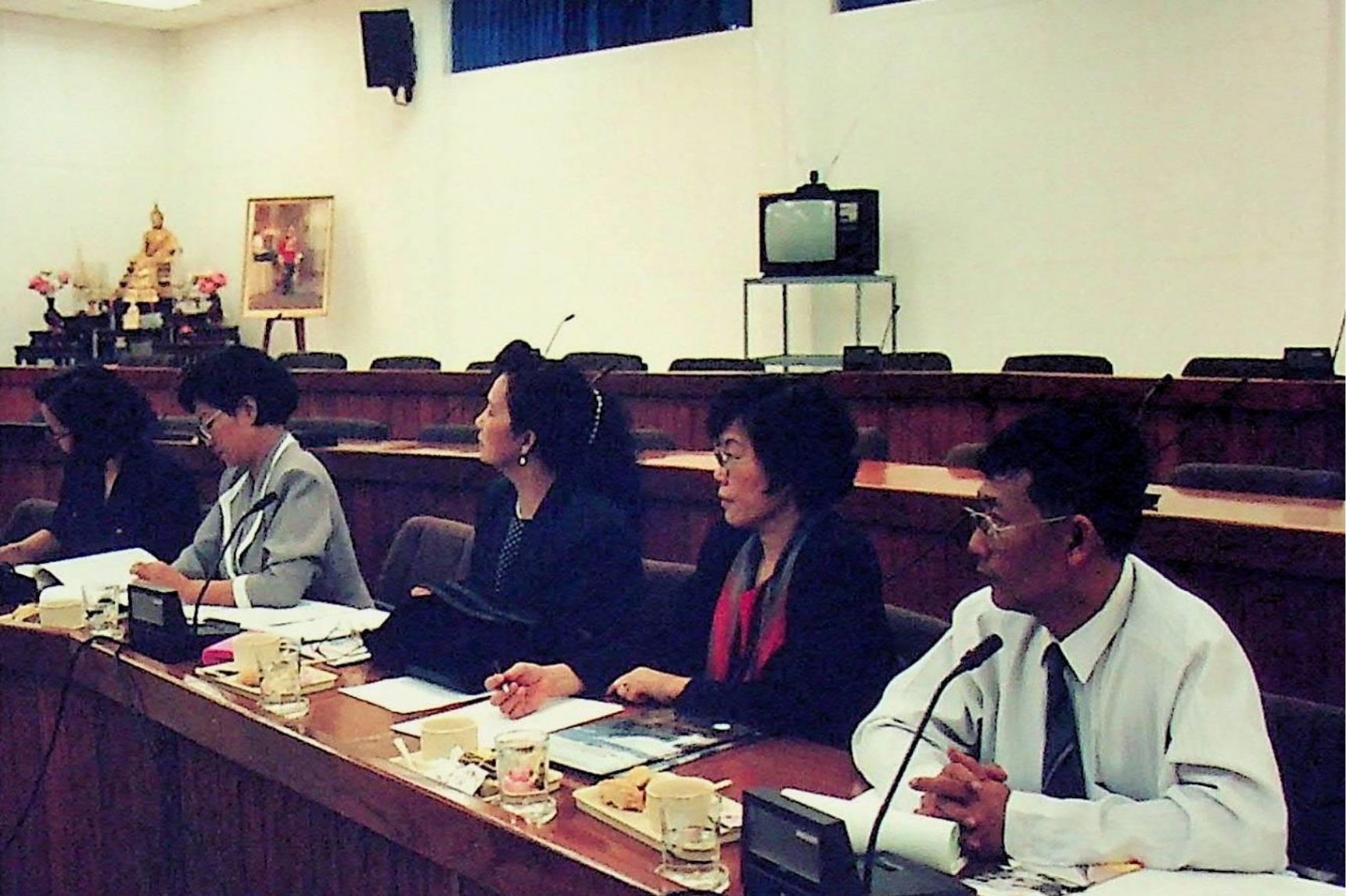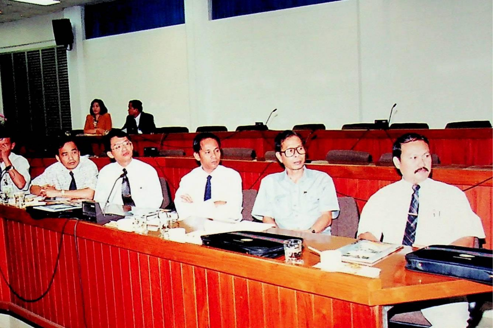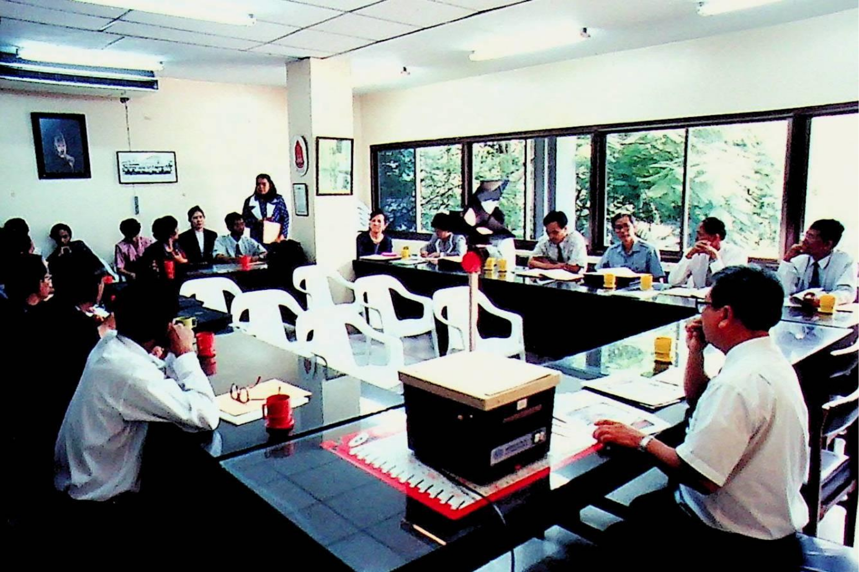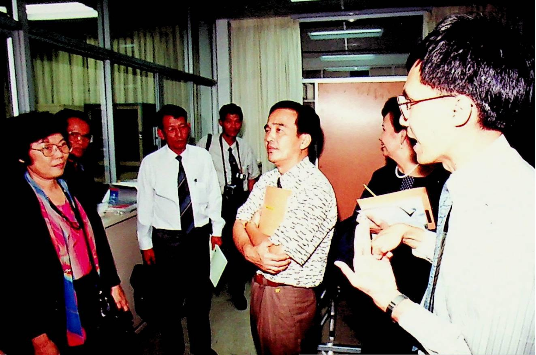 รศ.ดร.หริส สูตะบุตร อธิการบดี และคณะให้การต้อนรับคณะผู้บริหารจากสถาบันราชภัฏ เข้าเยี่ยมชมสถาบัน ณ ห้องประชุมจํารัส, สํานักห้องสมุด, สํานักคอมพิวเตอร์ ในวันอังคารที่ 16 สิงหาคม 2537 จากภาพถ่ายอัลบั้มที่ 3753
