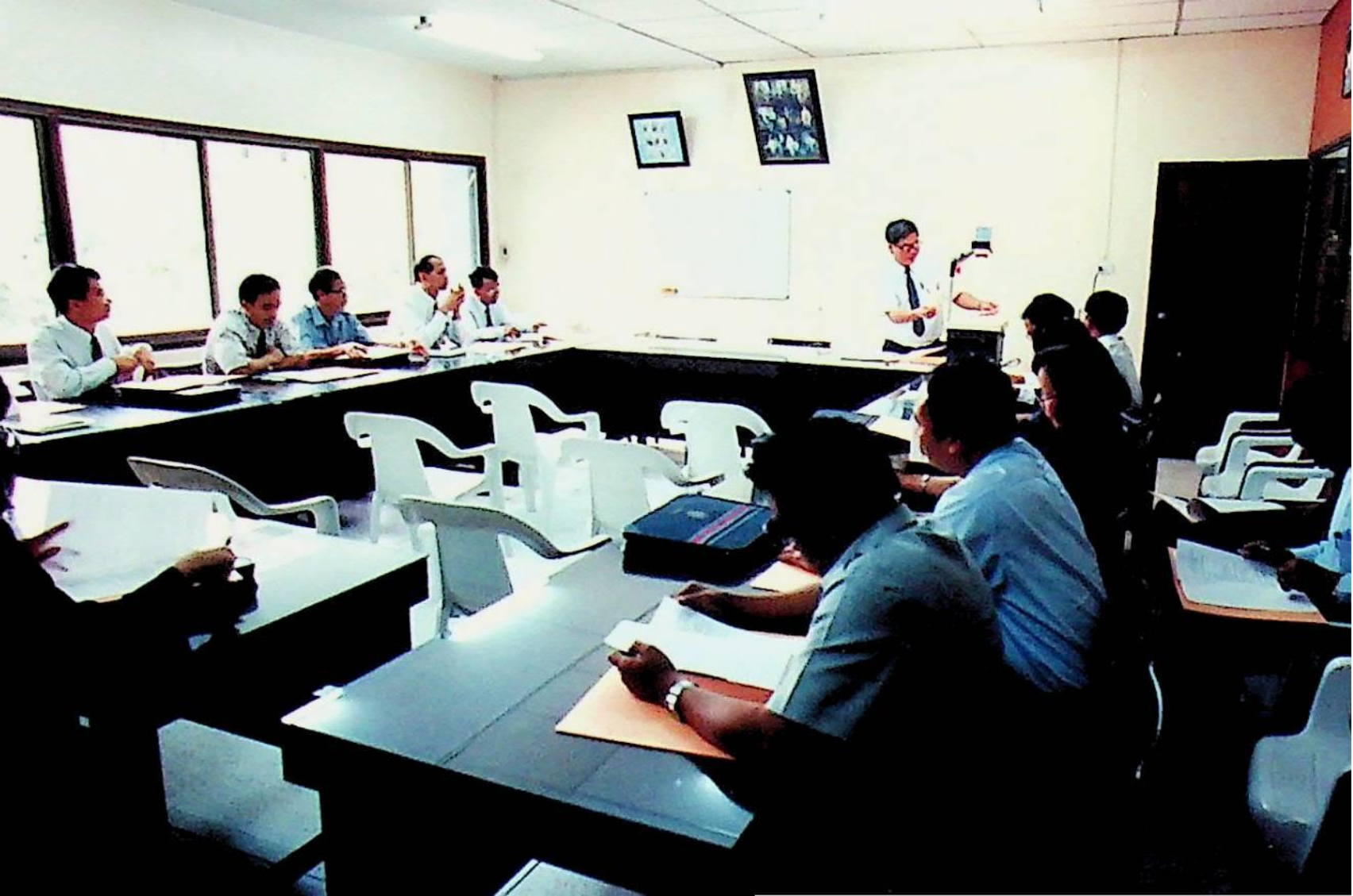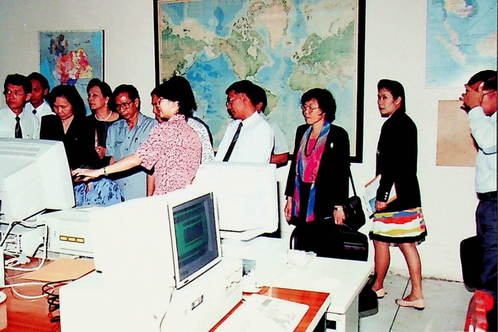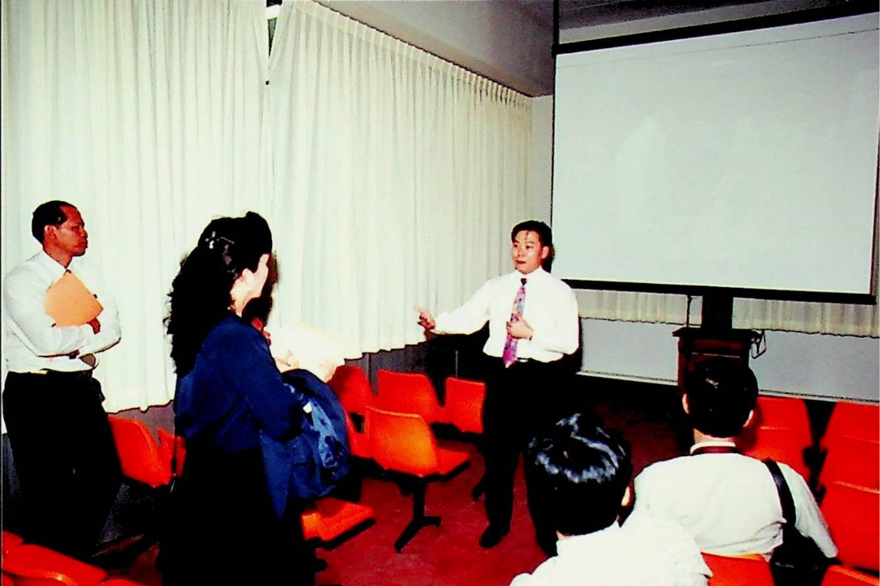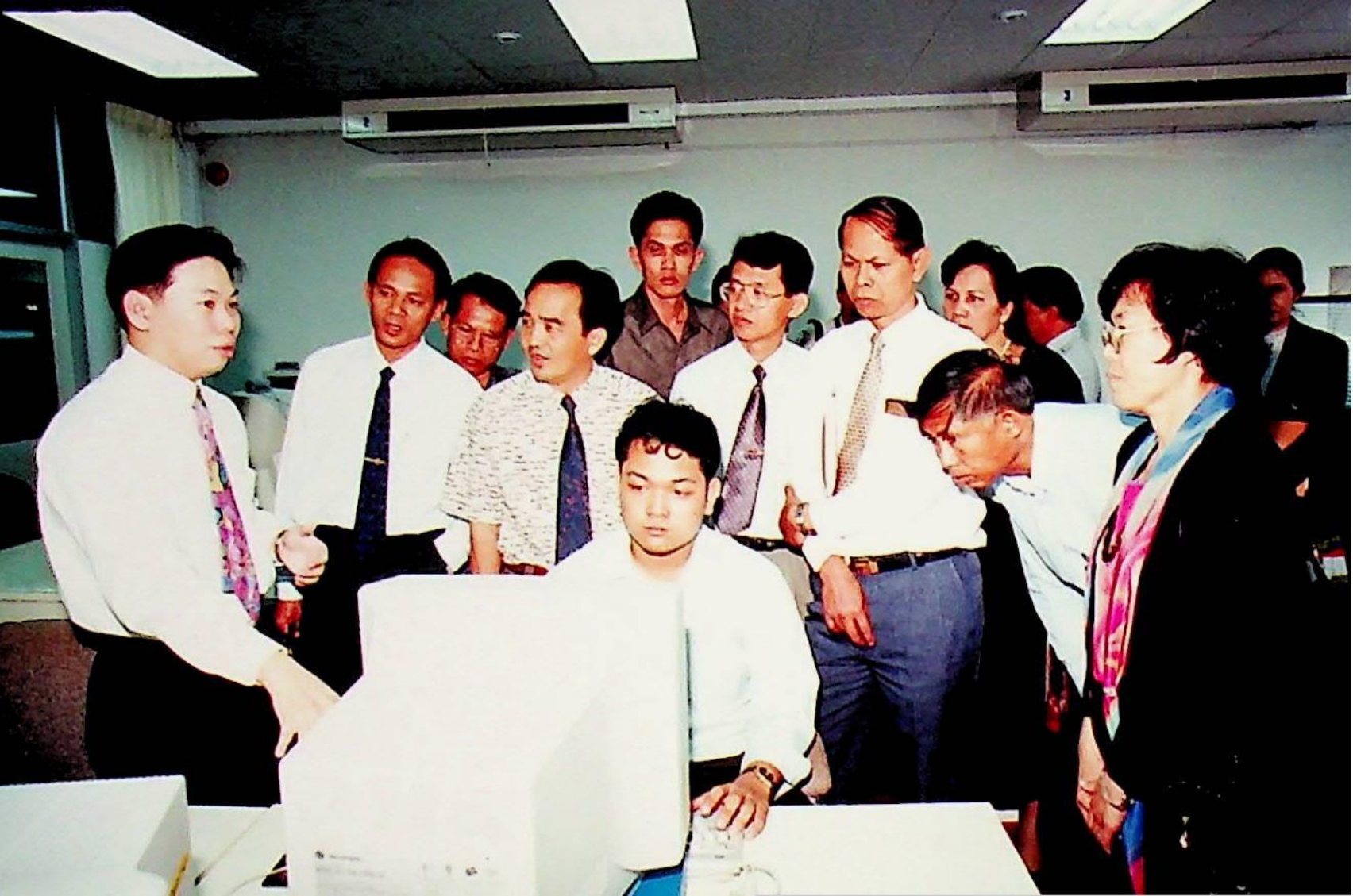 รศ.ดร.หริส สูตะบุตร อธิการบดี และคณะให้การต้อนรับคณะผู้บริหารจากสถาบันราชภัฏ เข้าเยี่ยมชมสถาบัน ณ ห้องประชุมจํารัส, สํานักห้องสมุด, สํานักคอมพิวเตอร์ ในวันอังคารที่ 16 สิงหาคม 2537 จากภาพถ่ายอัลบั้มที่ 3753