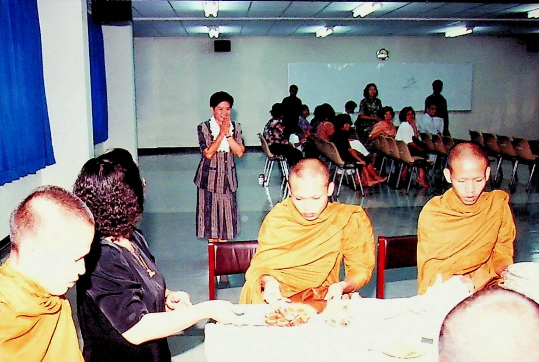 อาจารย์สุชาติ เพริดพริ้ง รองอธิการบดีฝ่ายบริหาร เป็นประธานพิธีวางพวงมาลาถวายราชสักการะ และทำพิธีทักษิณานุปทาน เนื่องในวันคล้ายวันสวรรคตพระจอมเกล้าเจ้าอยู่หัว ณ ลานพระรูป ร.4 , อาคารสัมมนา ชั้น 3 ในวันเสาร์ที่ 1 ตุลาคม 2537 จากภาพถ่ายอัลบั้มที่ 3763 และ 3764