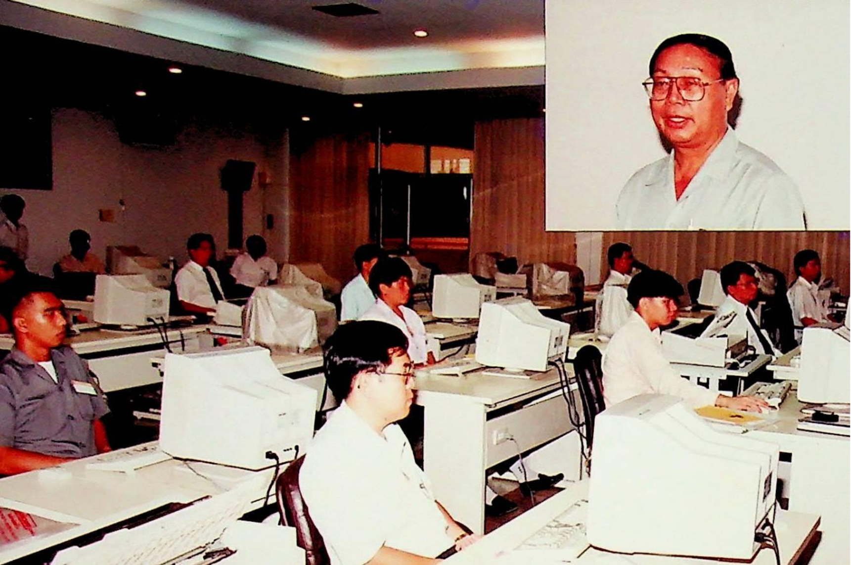 รศ.ดร.เดช พุทธเจริญทอง คณบดีคณะวิศวกรรมศาสตร์ เป็นประธานเปิดการอบรมการเขียนแบบด้วยคอมพิวเตอร์ จัดโดยศูนย์การศึกษาต่อเนื่อง ร่วมกับภาควิชาวิศวกรรมเครื่องกล ระหว่างวันที่ 3-7 ตุลาคม 2537 ณ ห้อง CB.1209 จากภาพถ่ายอัลบั้มที่ 3764