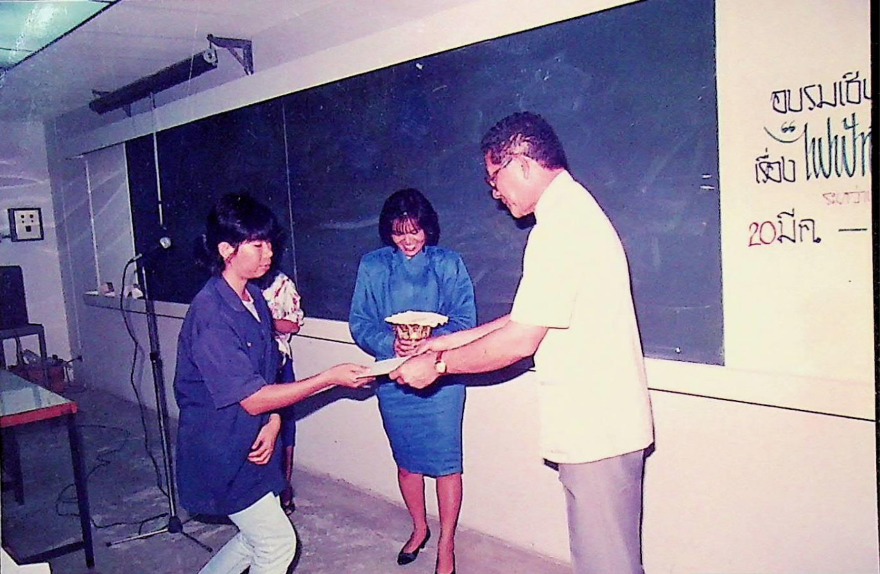 อธิการบดีเป็นประธานปิดการอบรม และมอบวุฒิบัตรแก่ผู้ผ่านการอบรม ไฟฟ้าพื้นฐาน 2 จัดโดยศูนย์การศึกษาต่อเนื่อง และภาควิชาวิศวกรรมไฟฟ้า ระหว่างวันที่ 20 มีนาคม – เมษายน 2532 ณ ห้องสัมมนา ภาควิชาวิศวกรรมเคมี จากภาพถ่ายอัลบั้มที่ 3214