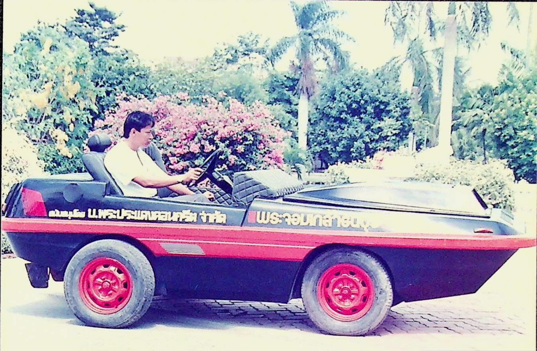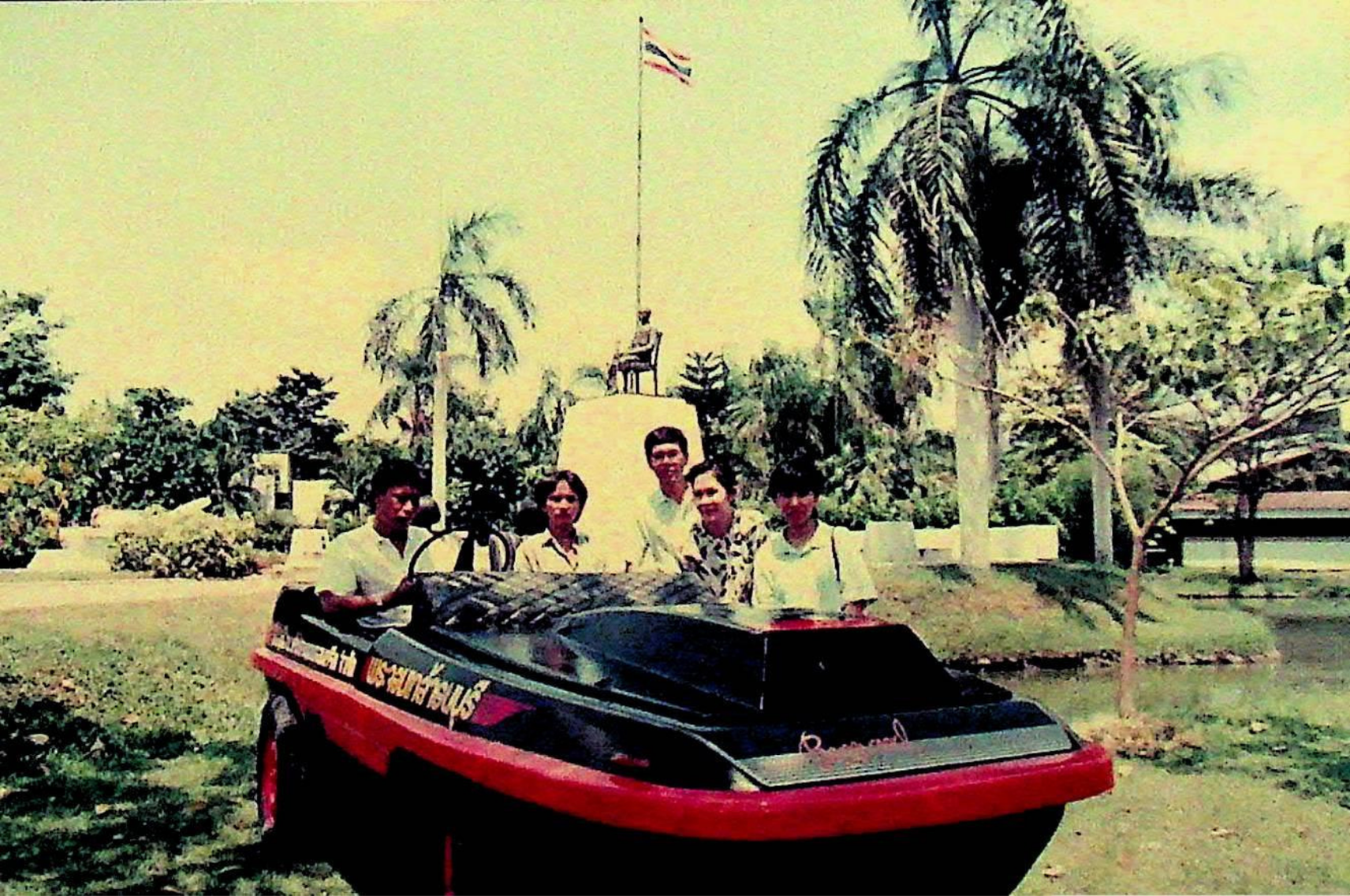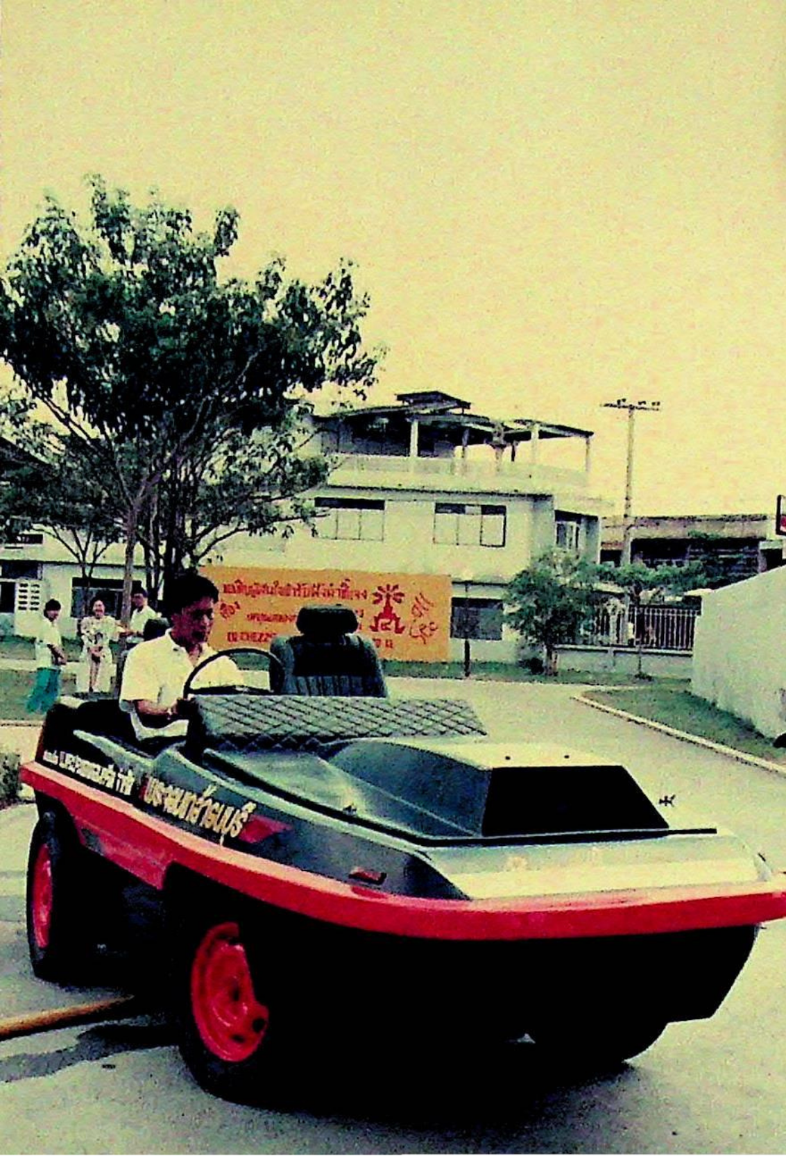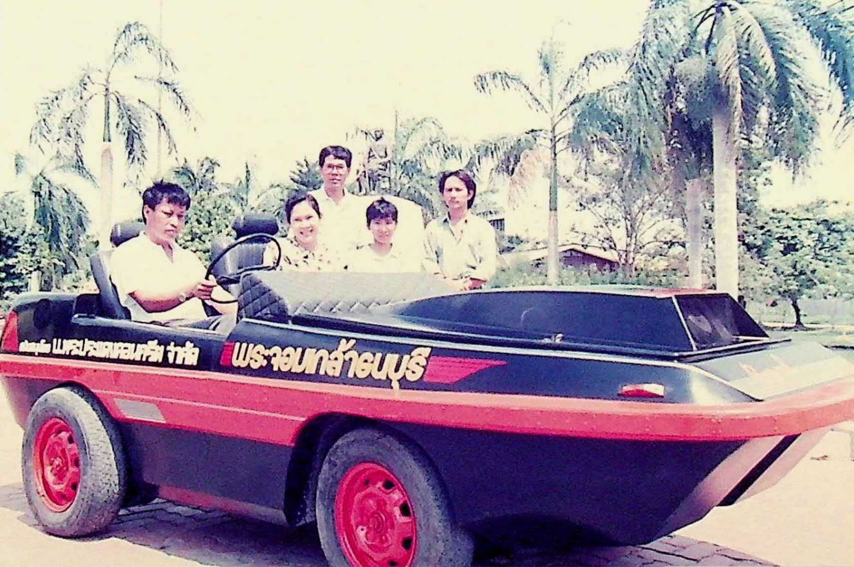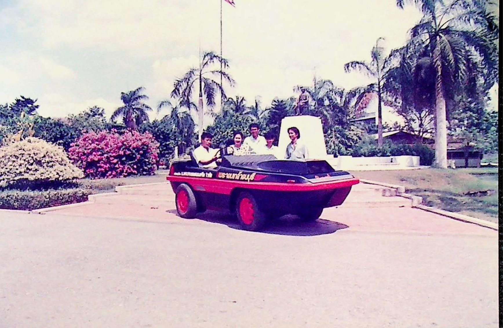 คุณศรีลัดดา และคุณมนัส จากนิตยสารวัฏจักรรถ ทำข่าวรถสะเทินน้ำสะเทินบก โดยมีอาจารย์ปรีชา แก้วทอง และหัวหน้างานประชาสัมพันธ์ให้รายละเอียดและให้การต้อนรับ ณ หน้าพระรูป ร.4 ในวันที่ 12 เมษายน 2532 จากภาพถ่ายอัลบั้มที่ 3214 และ 3215