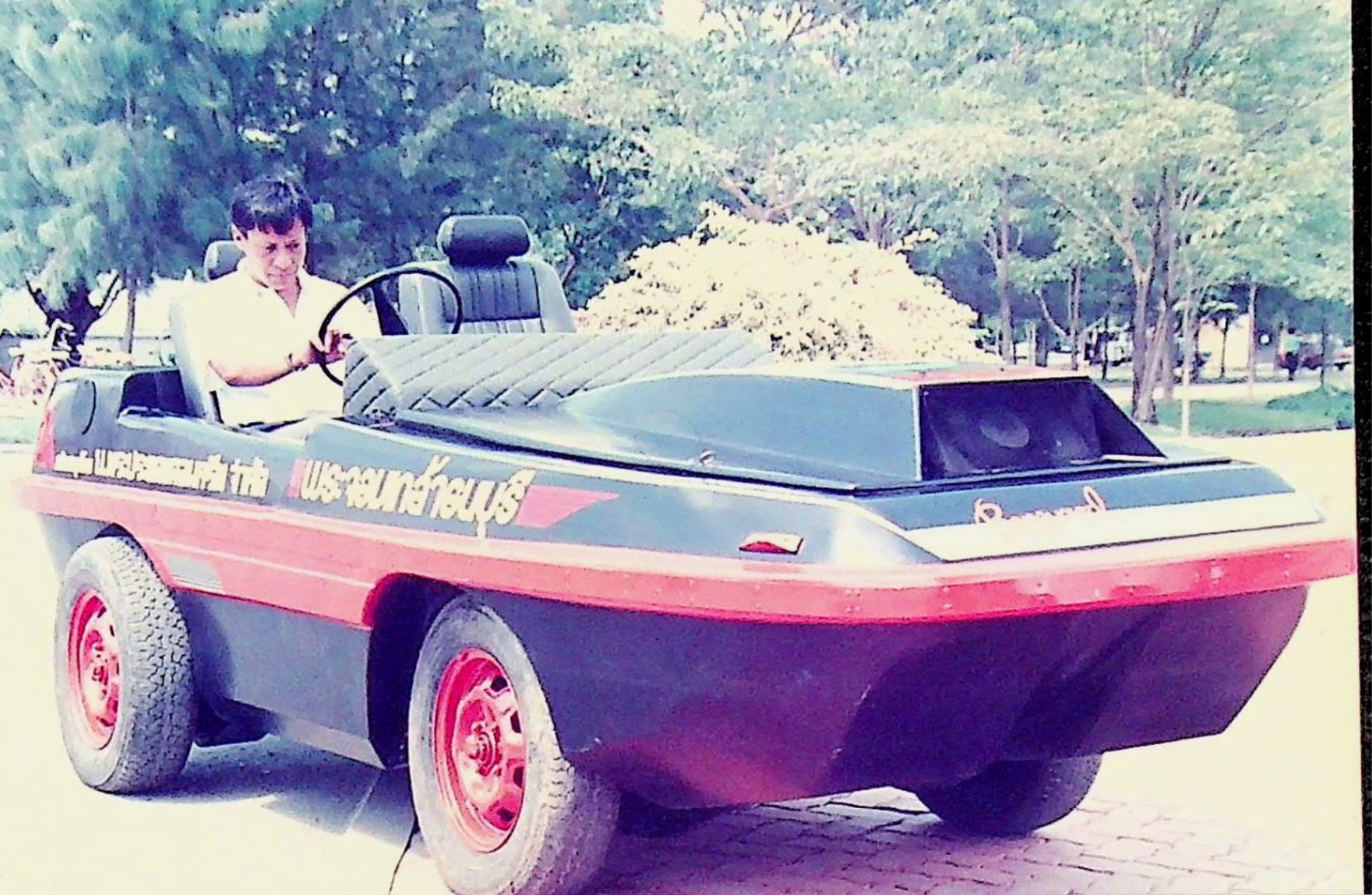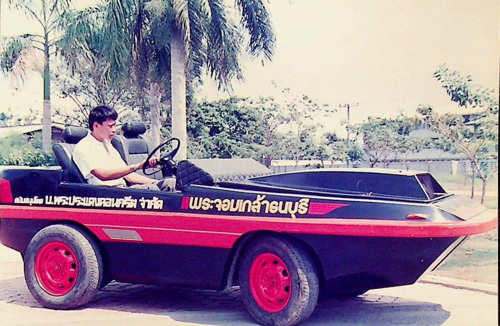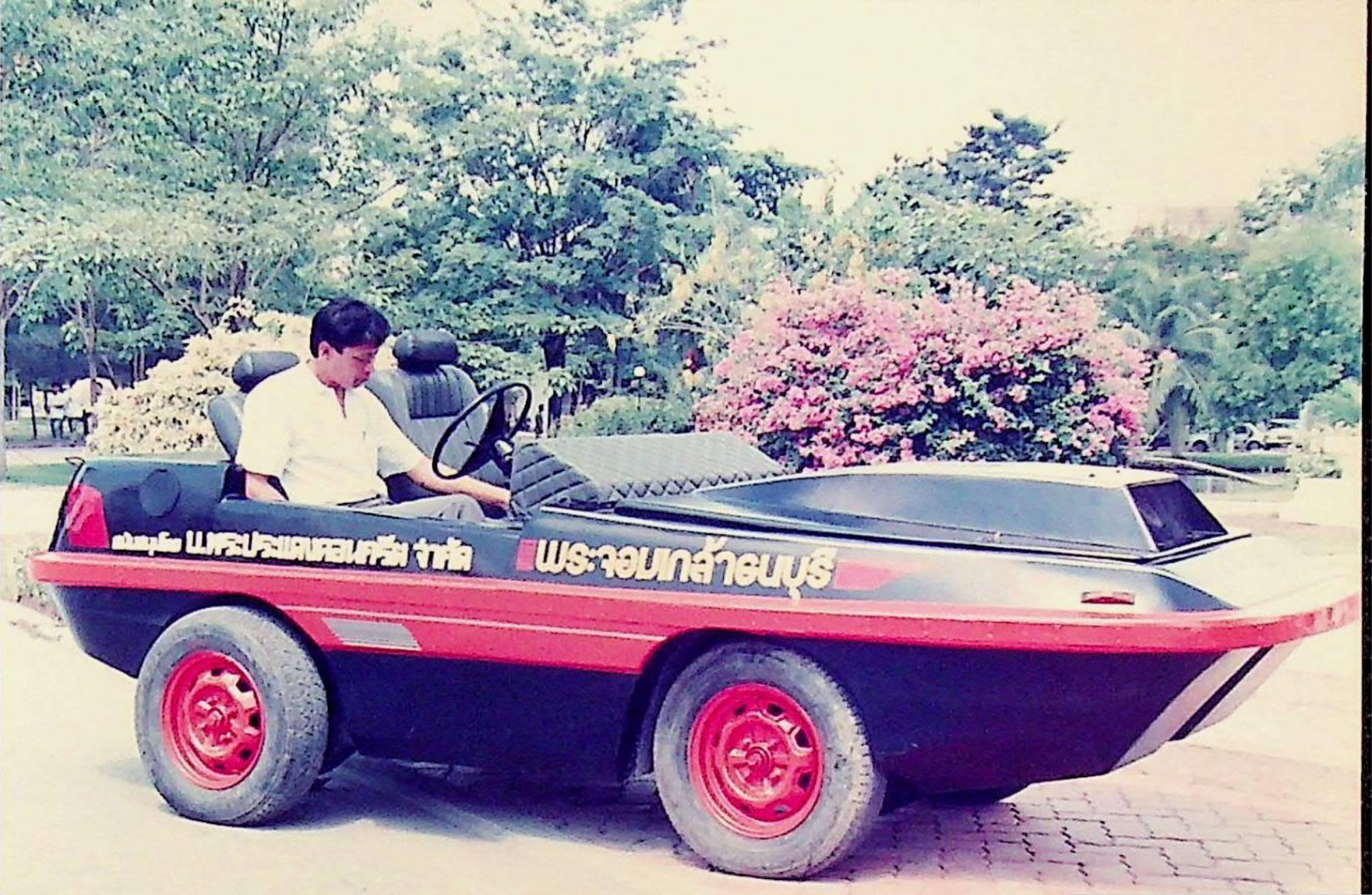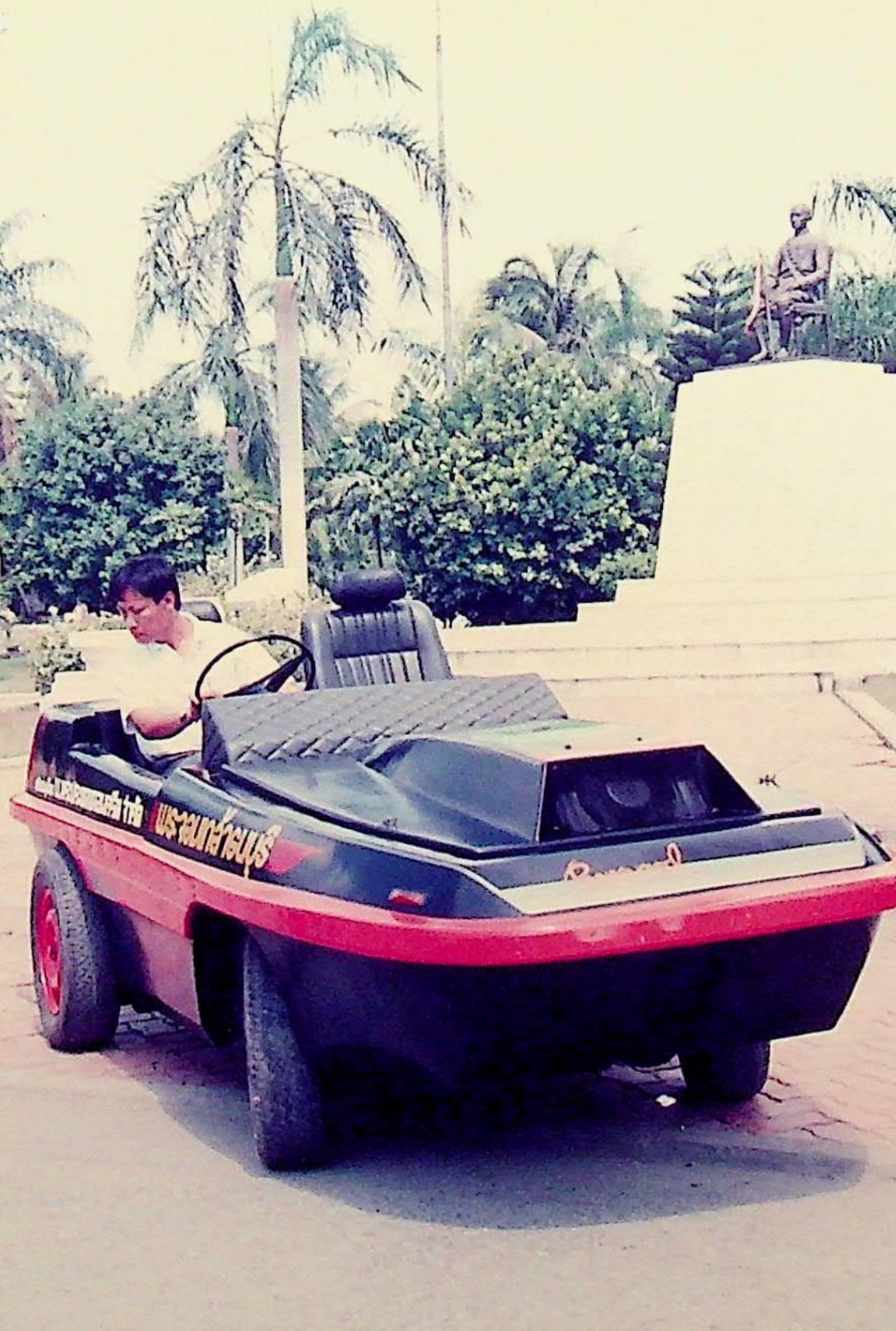 คุณศรีลัดดา และคุณมนัส จากนิตยสารวัฏจักรรถ ทำข่าวรถสะเทินน้ำสะเทินบก โดยมีอาจารย์ปรีชา แก้วทอง และหัวหน้างานประชาสัมพันธ์ให้รายละเอียดและให้การต้อนรับ ณ หน้าพระรูป ร.4 ในวันที่ 12 เมษายน 2532 จากภาพถ่ายอัลบั้มที่ 3214 และ 3215