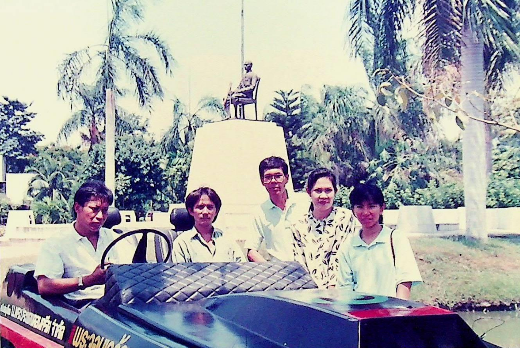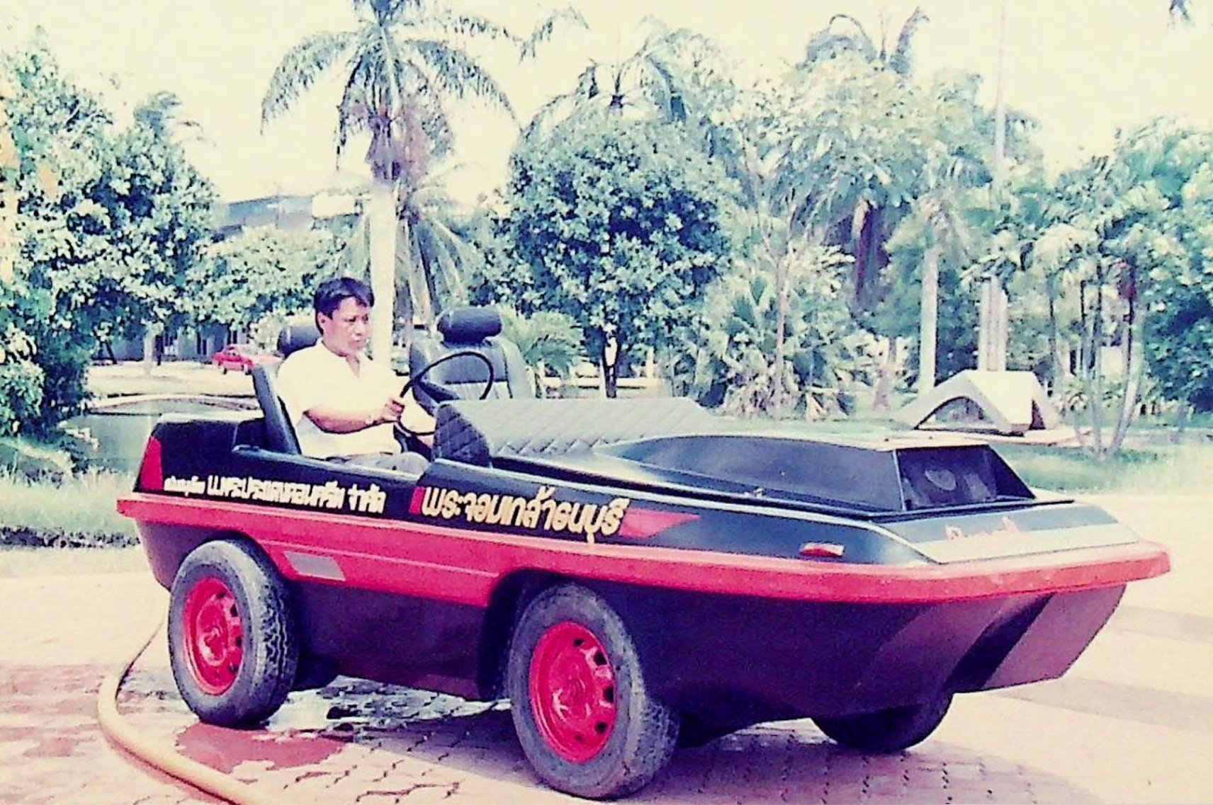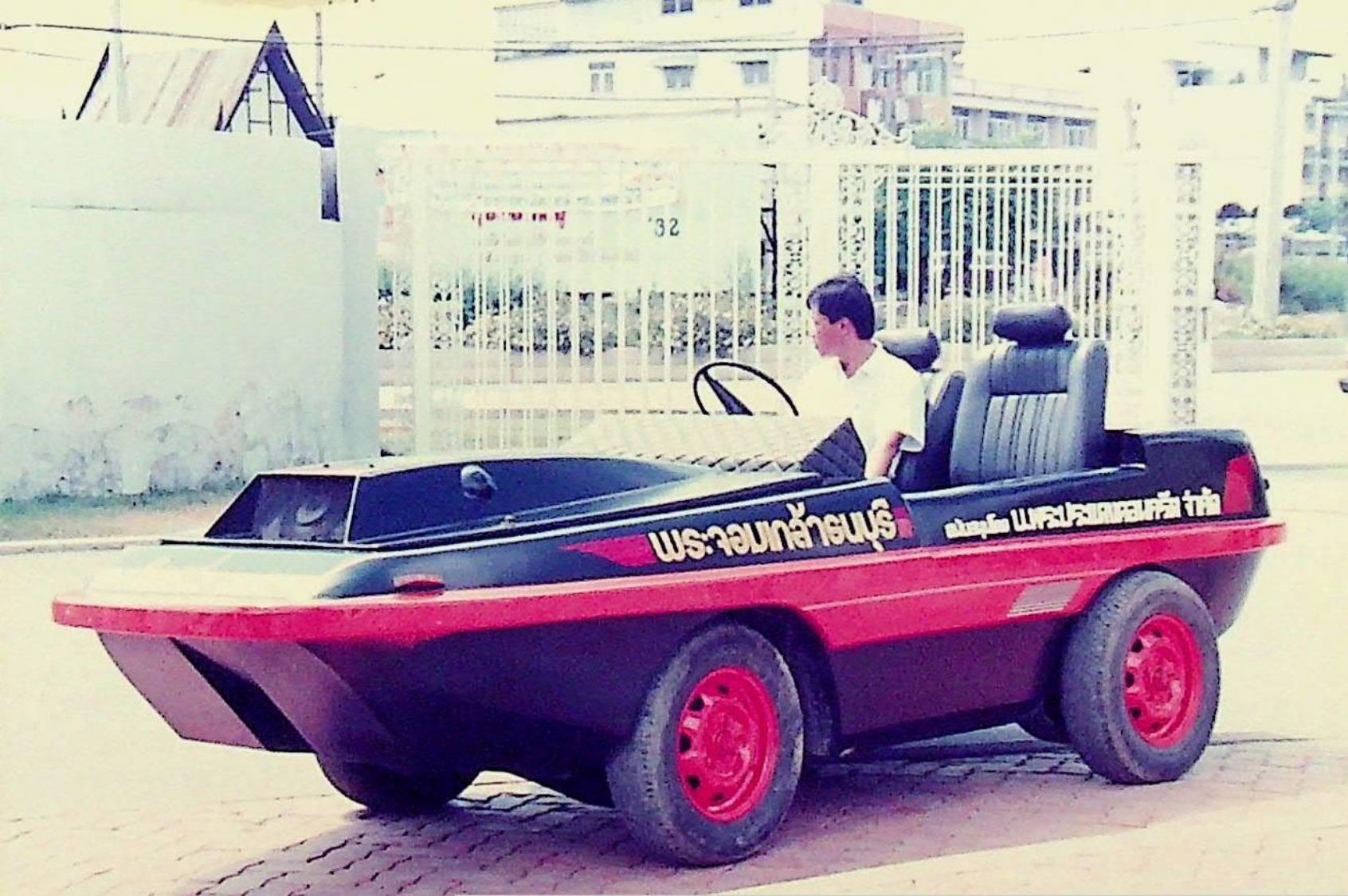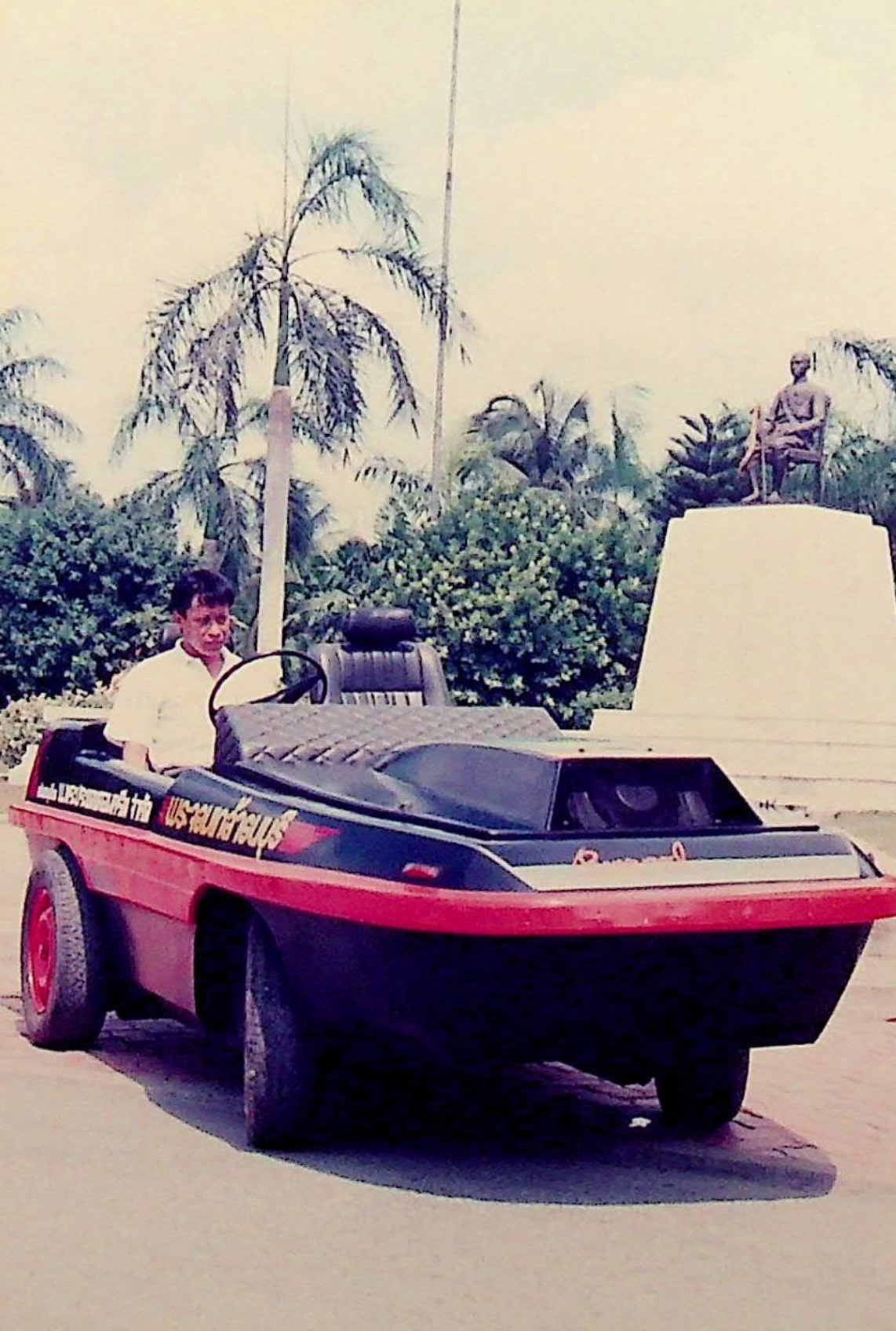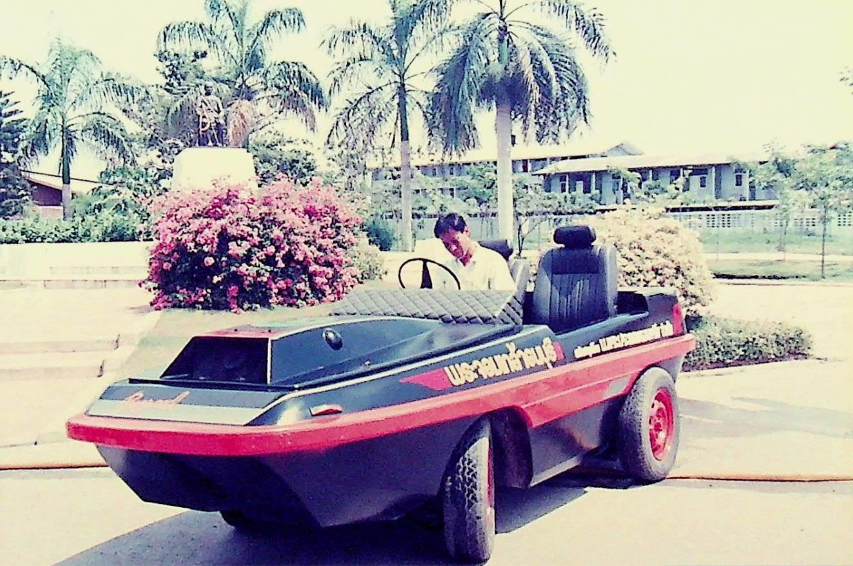คุณศรีลัดดา และคุณมนัส จากนิตยสารวัฏจักรรถ ทำข่าวรถสะเทินน้ำสะเทินบก โดยมีอาจารย์ปรีชา แก้วทอง และหัวหน้างานประชาสัมพันธ์ให้รายละเอียดและให้การต้อนรับ ณ หน้าพระรูป ร.4 ในวันที่ 12 เมษายน 2532 จากภาพถ่ายอัลบั้มที่ 3214 และ 3215